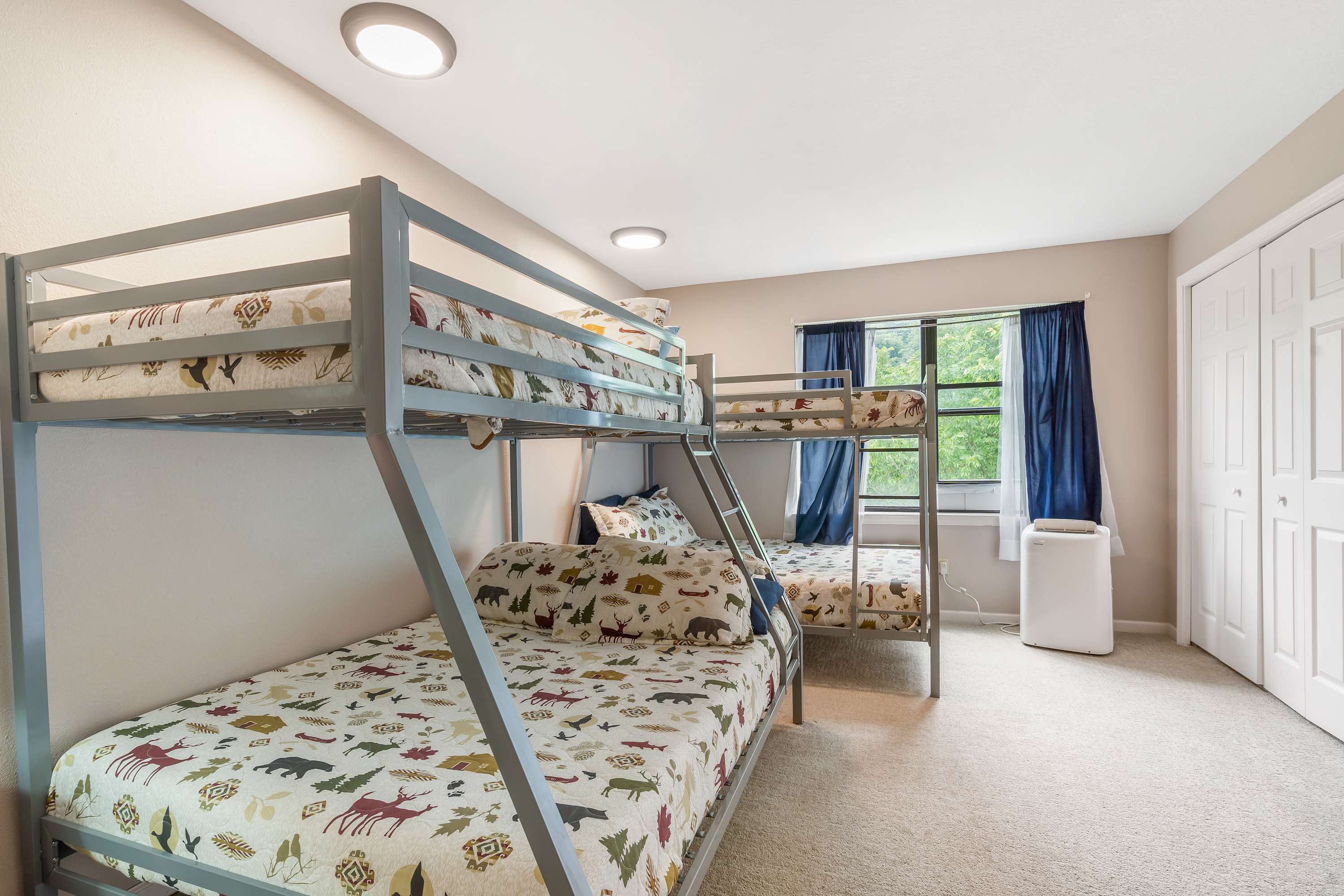 Bedroom #4 is the kids’ room on the 2nd floor. It has two twin-over-full bunk beds and a smart TV.