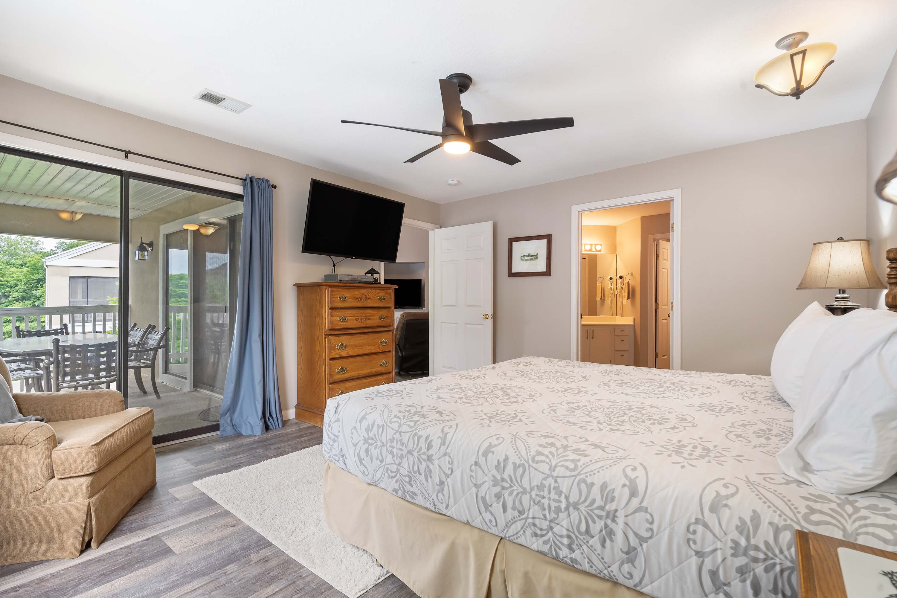 Bedroom #1 is located on the main floor and features a king-size bed along with a smart TV.