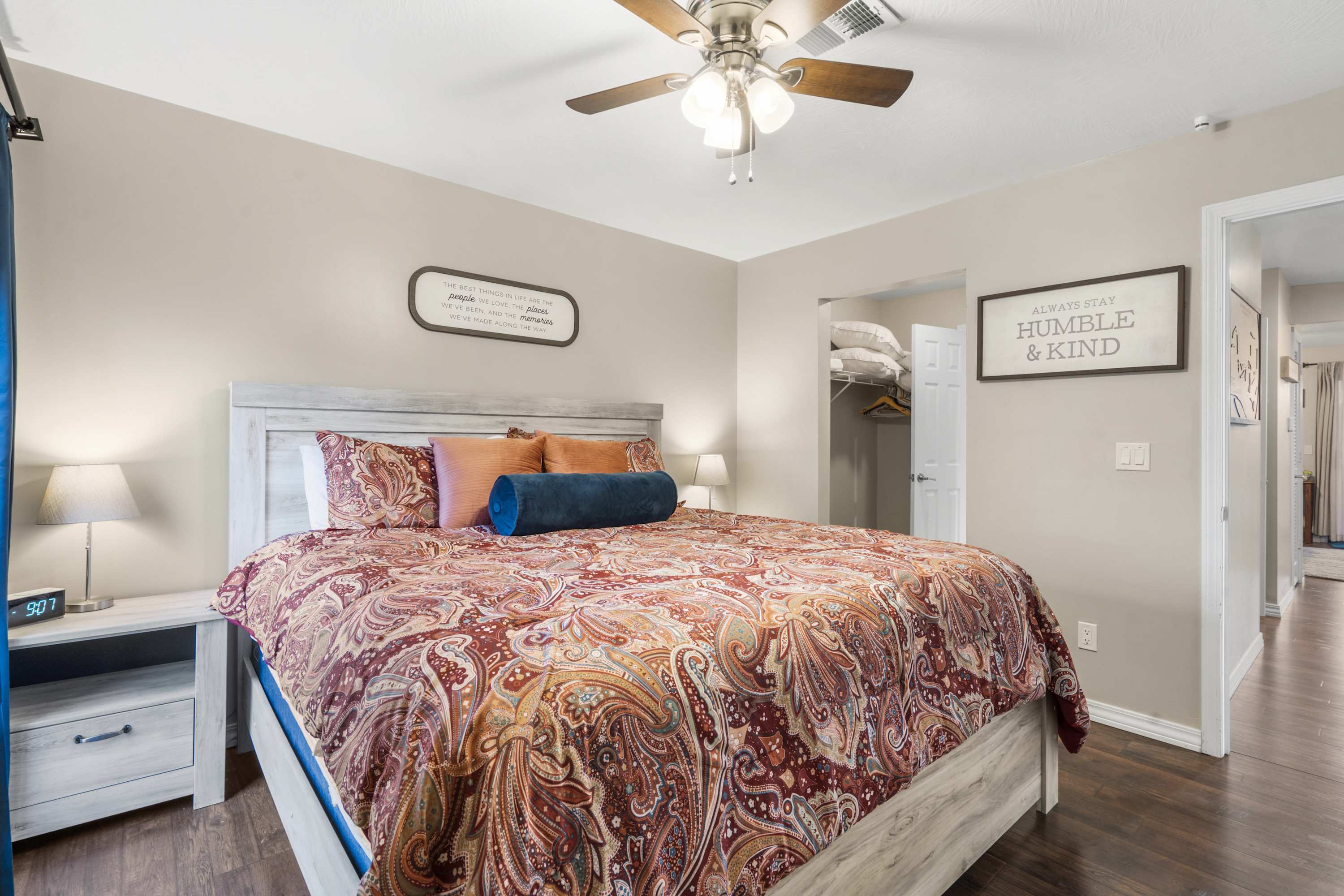 The home sleeps up to 4 guests comfortably between 1 private bedroom and a sofa sleeper in the living room. The bedroom is furnished with luxe linens to ensure a restful stay.