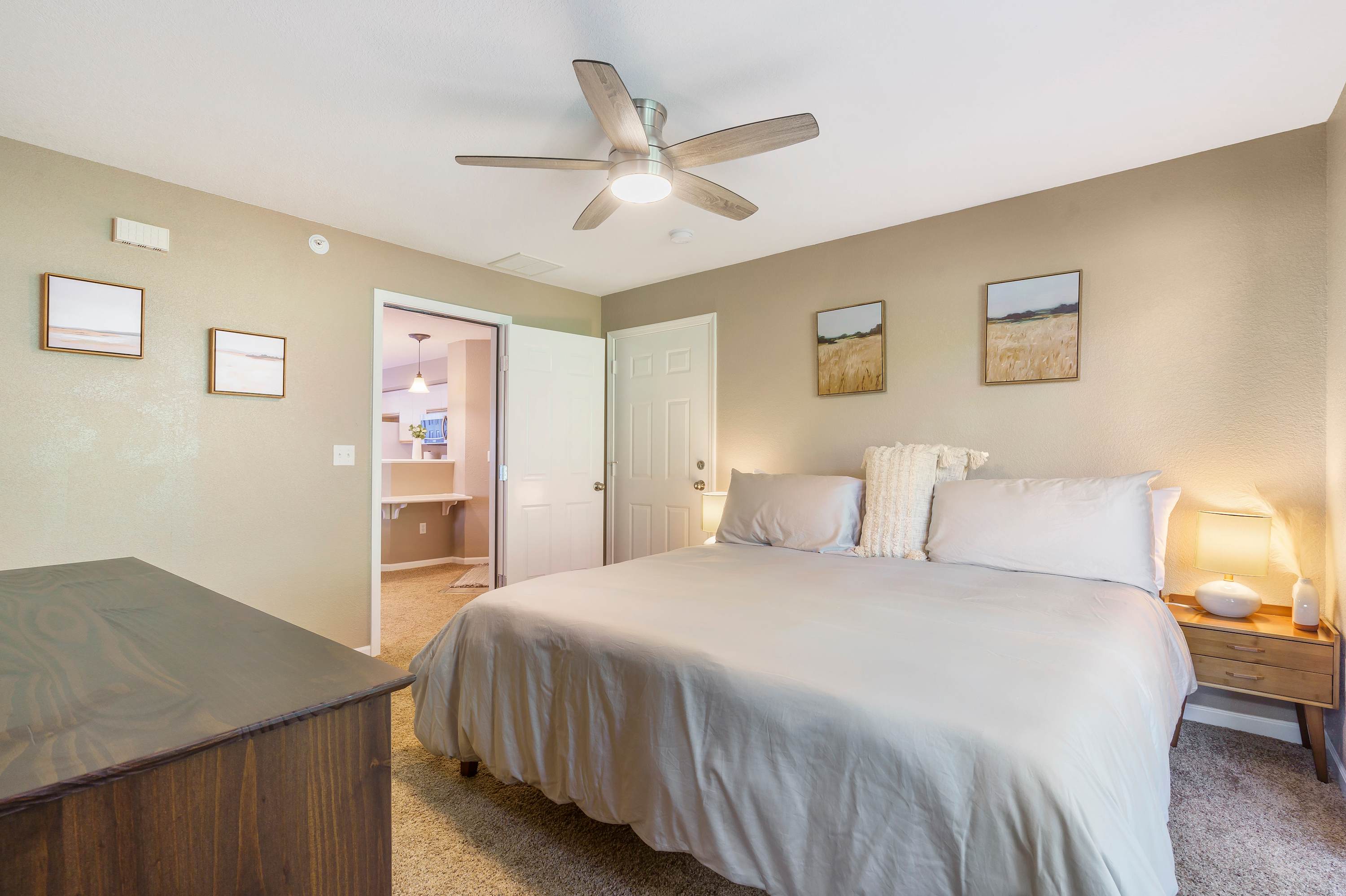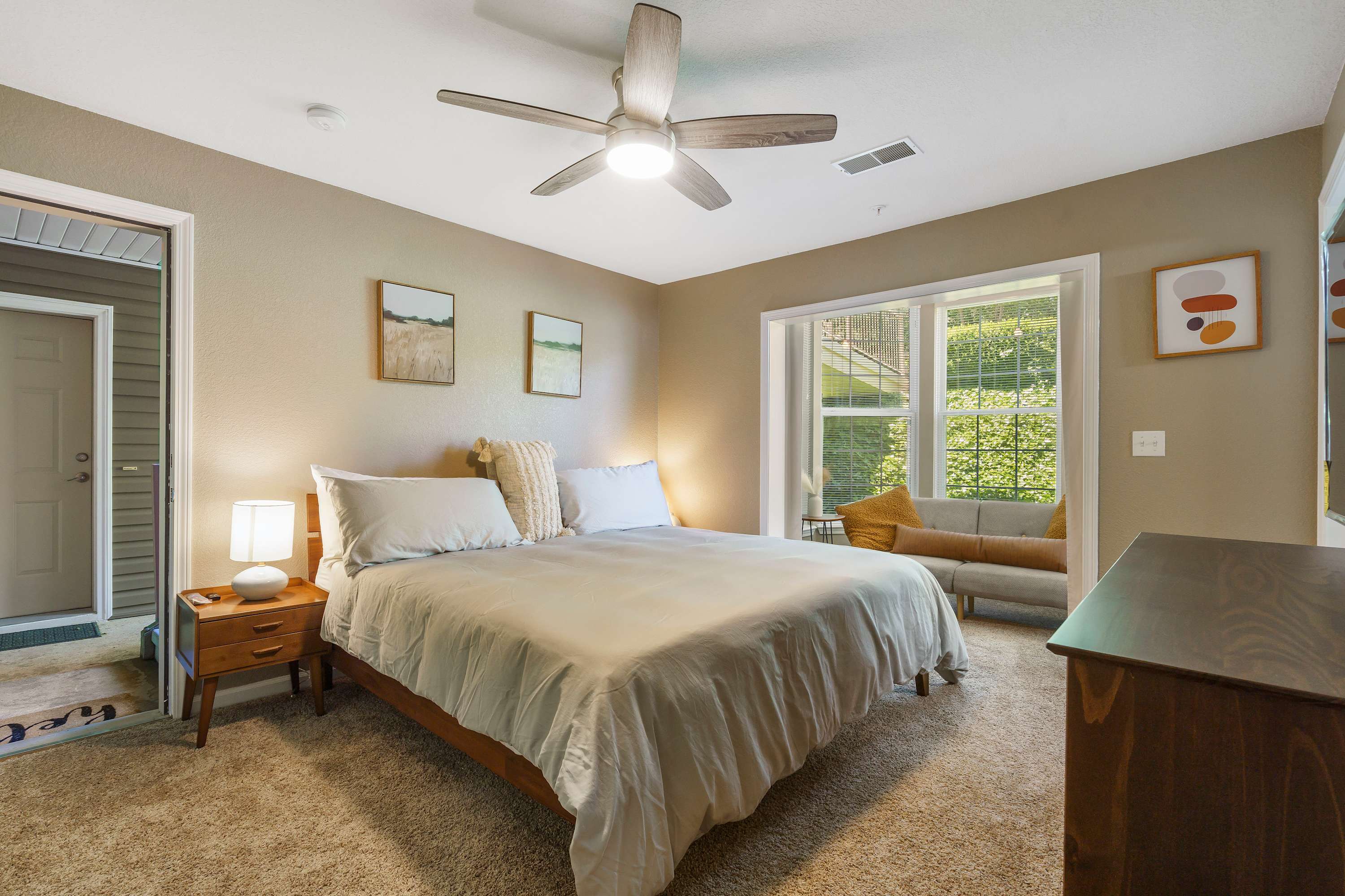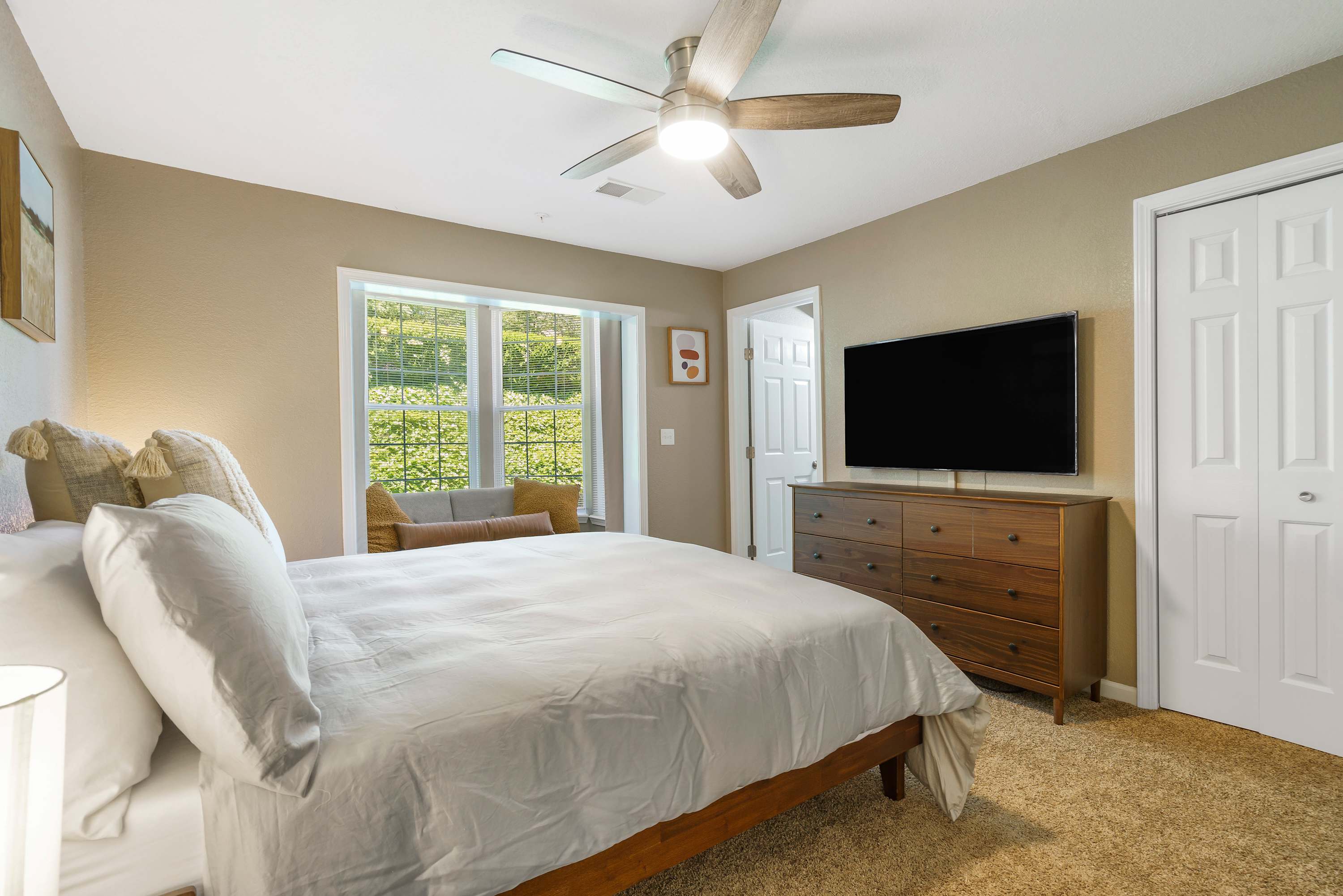 #Bedroom 1 comes with a King bed, Smart TV, reading nook, and exterior access door. This room also has access to bathroom 1 with shower/tub combo.