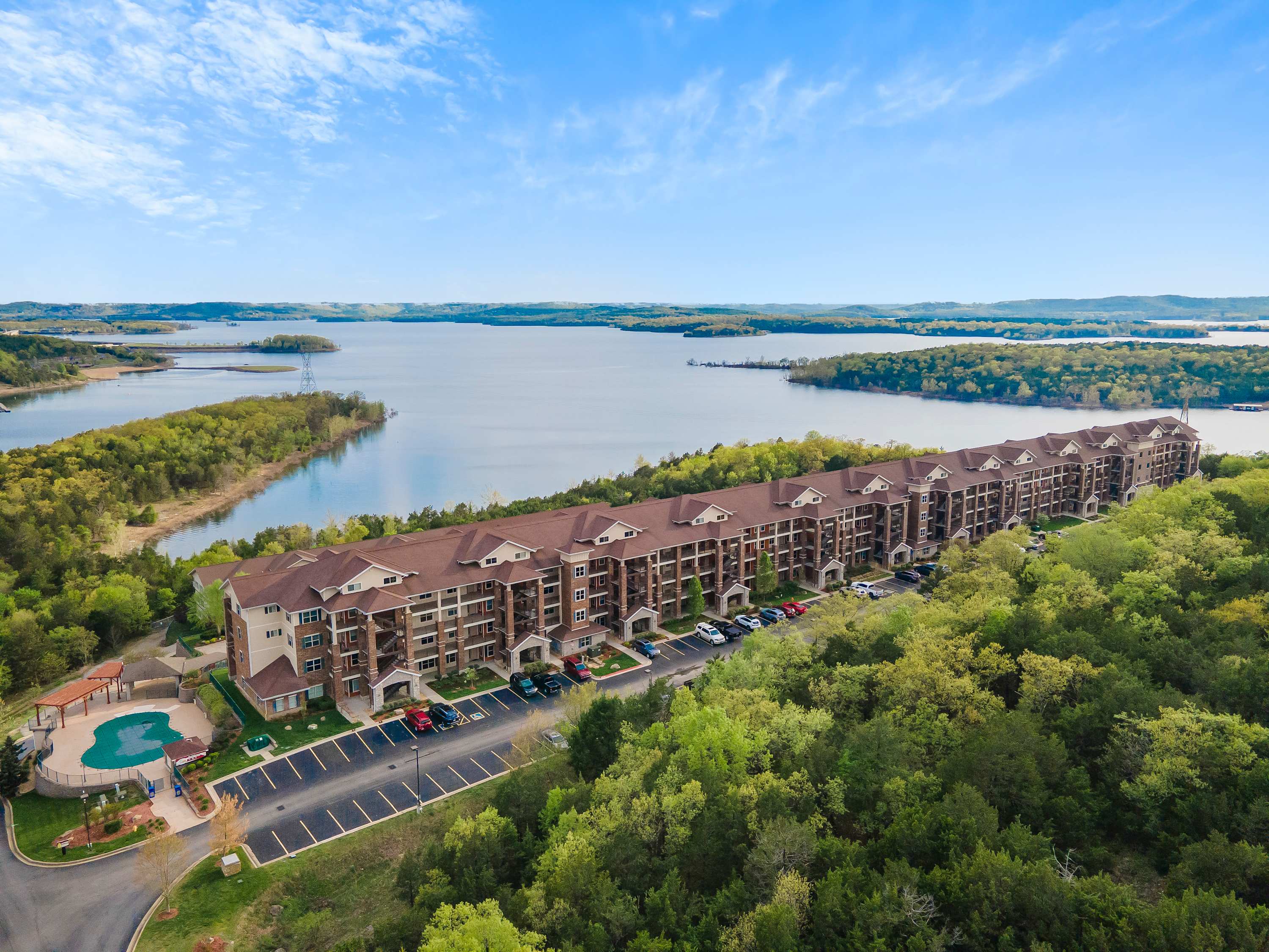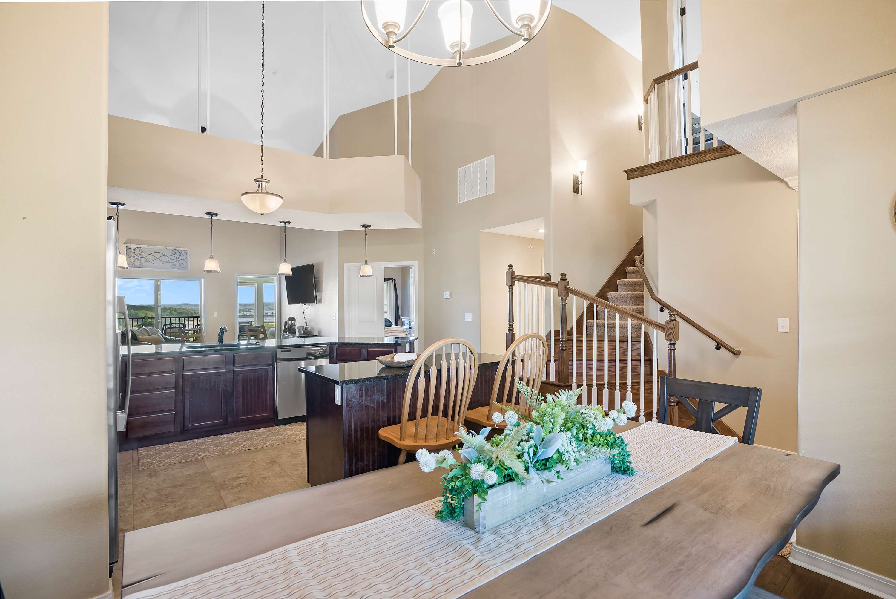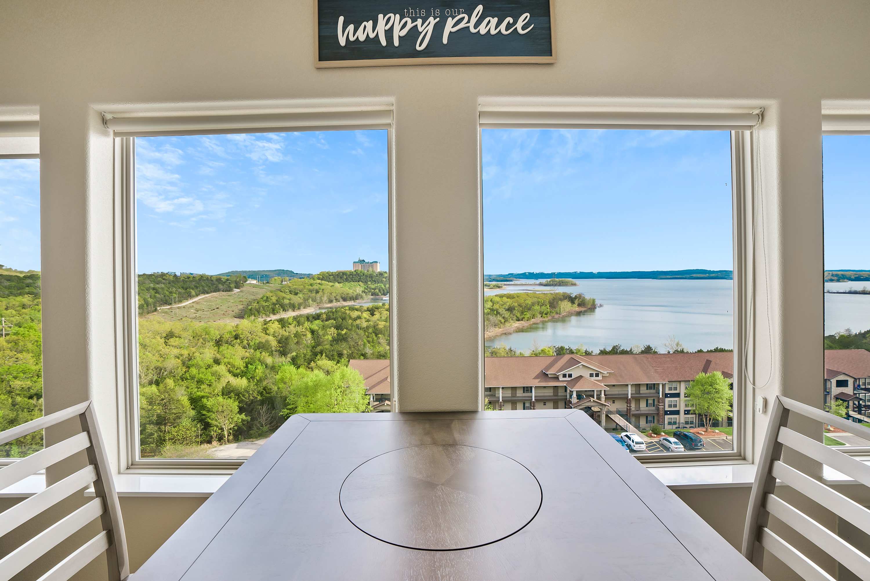 The top floor luxury Condo has a majestic view of Table Rock Lake complete with vaulted ceilings.