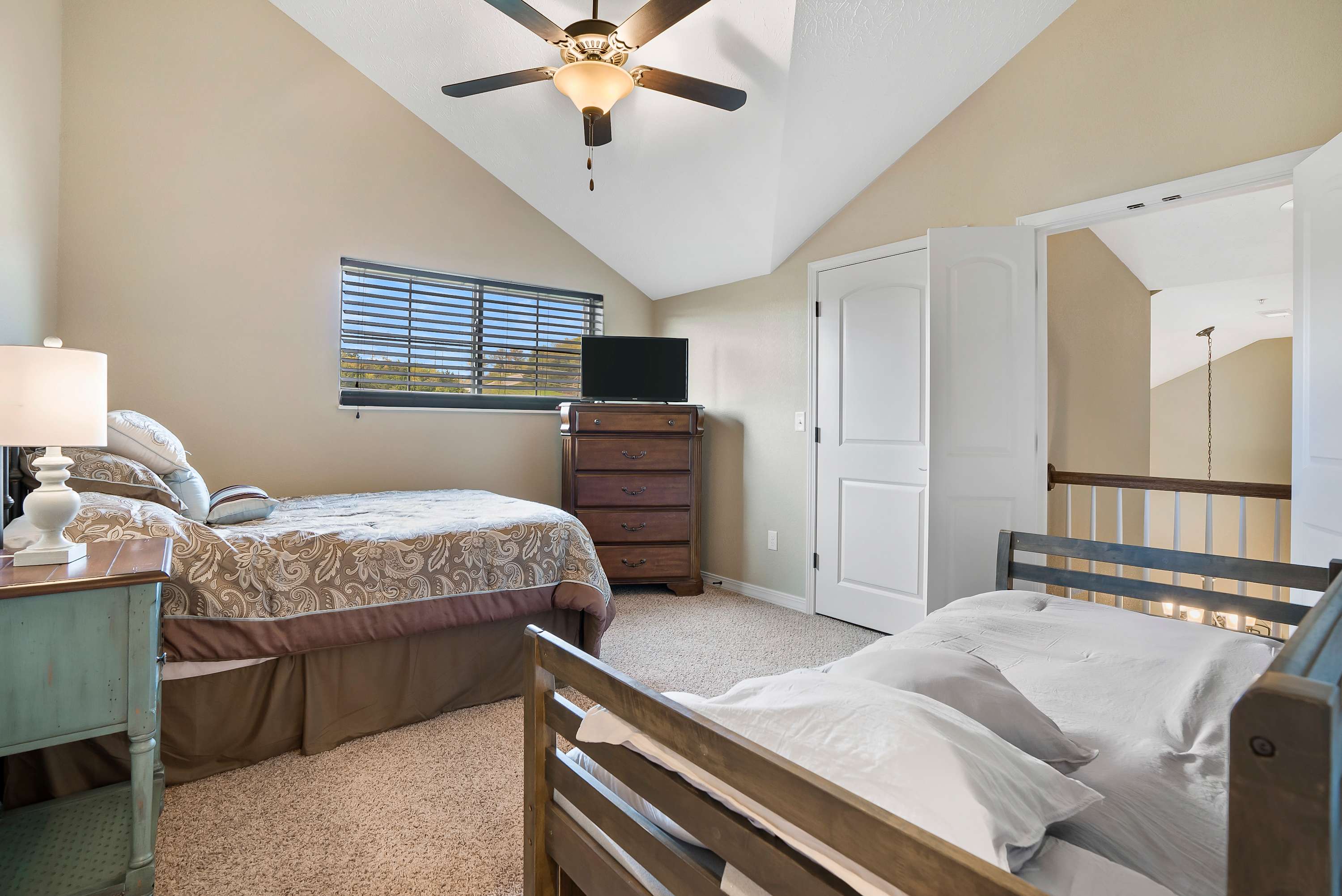 Bedroom #3 offers a Full bed plus Twin Day bed and Smart TV. There is an additional shared bathroom with tub/shower combo.