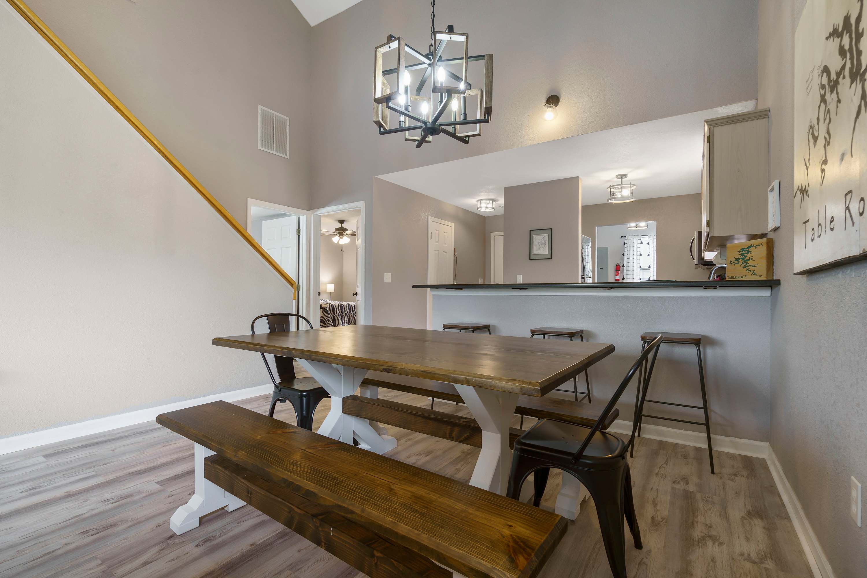 The property is located in the highly sought-after Pointe Royale, a community offering a list of noteworthy amenities including; an outdoor pool, indoor pool, outdoor dining area, life-size chess board, tennis court, and playground. The property also backs up to nature trails and a golf course that hugs lake Taney Como. With the close proximity to the lake, the property is also mere minutes from marinas, boat ramps, and local man-made beach. This means that there’s an endless list of coastal activities to enjoy on and off the water! When you’ve had your fill of fun in the sun, the home is close to an array of attractions including Branson Mountain Adventure (2.4 miles), Titanic Museum (3.8 miles), Aquarium at the Boardwalk (4.3 miles), Silver Dollar City (9.3 miles), and more! Historic Downtown Branson is less than 9 miles away and is dotted with restaurants and specialty stores. It’s common to stumble upon live music, a festival, or other noteworthy events while downtown. This list is just the tip of the iceberg, the activity list in Branson is truly endless!