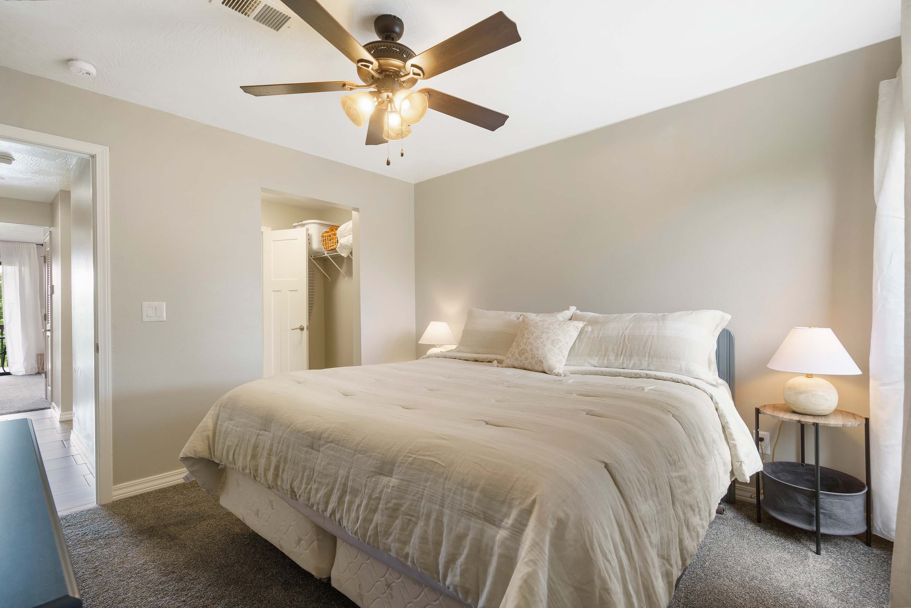 The home sleeps up to 4 guests comfortably between 1 private bedroom and a sofa sleeper in the living room. The bedroom is furnished with luxe linens to ensure a restful stay.