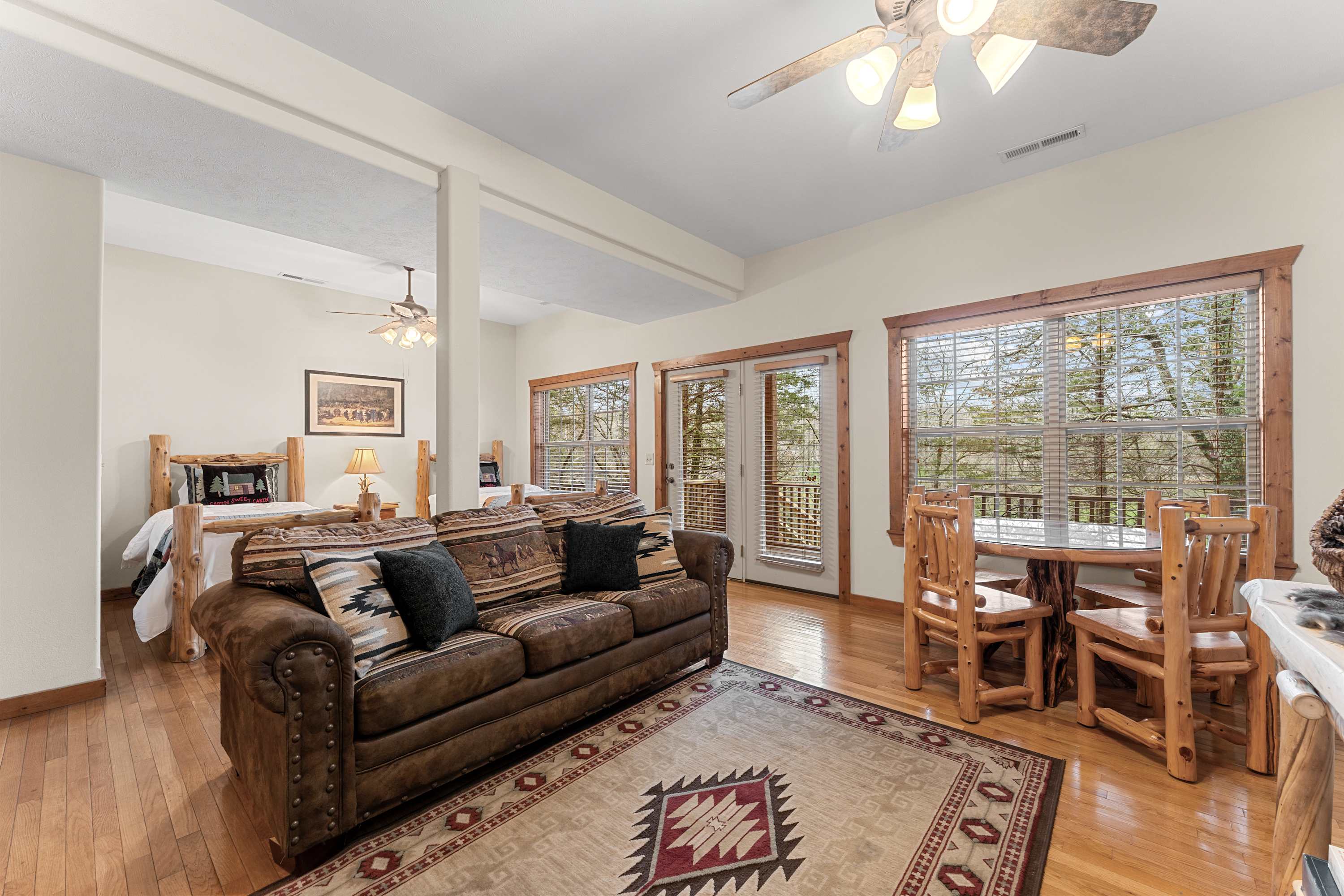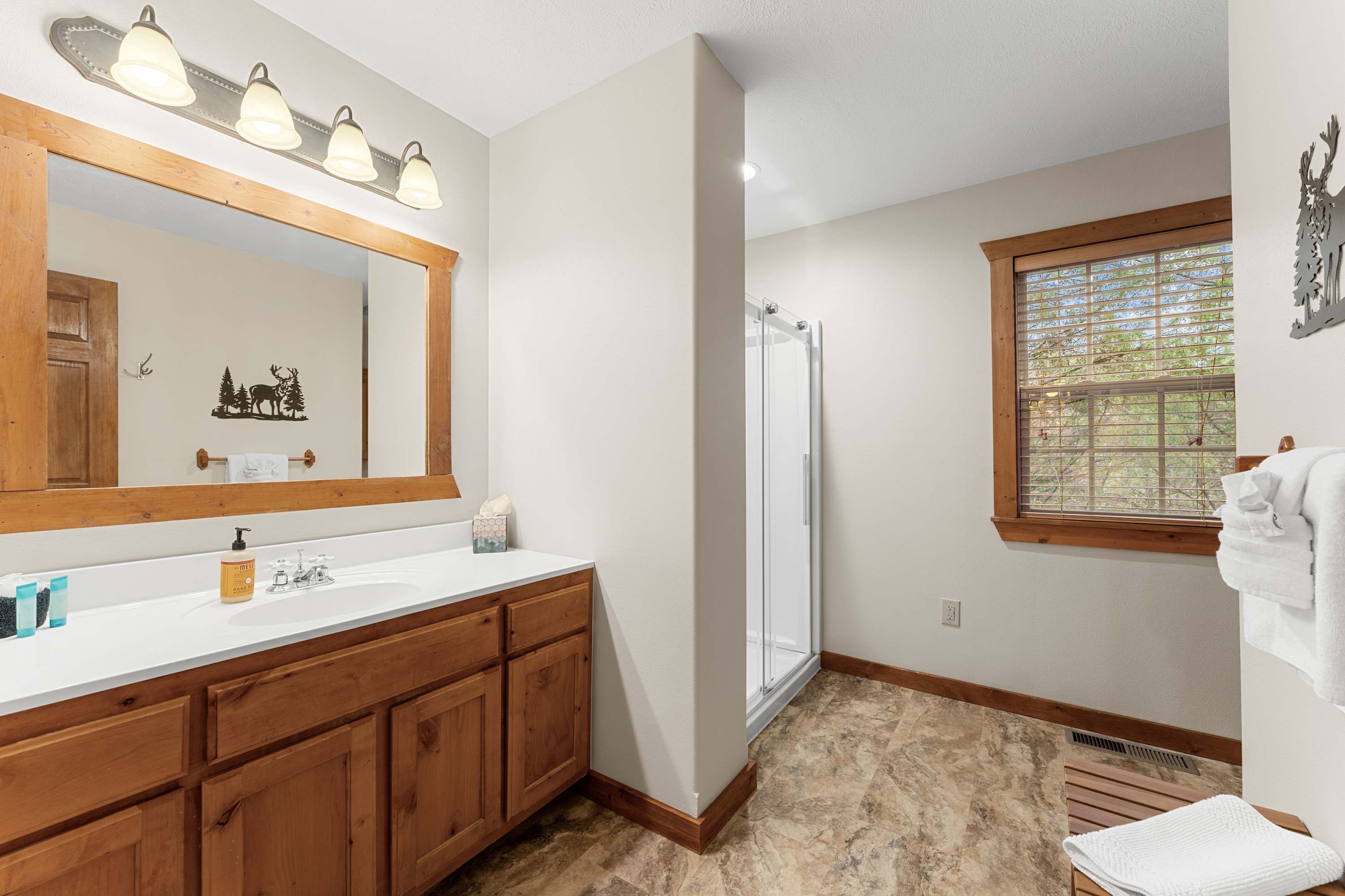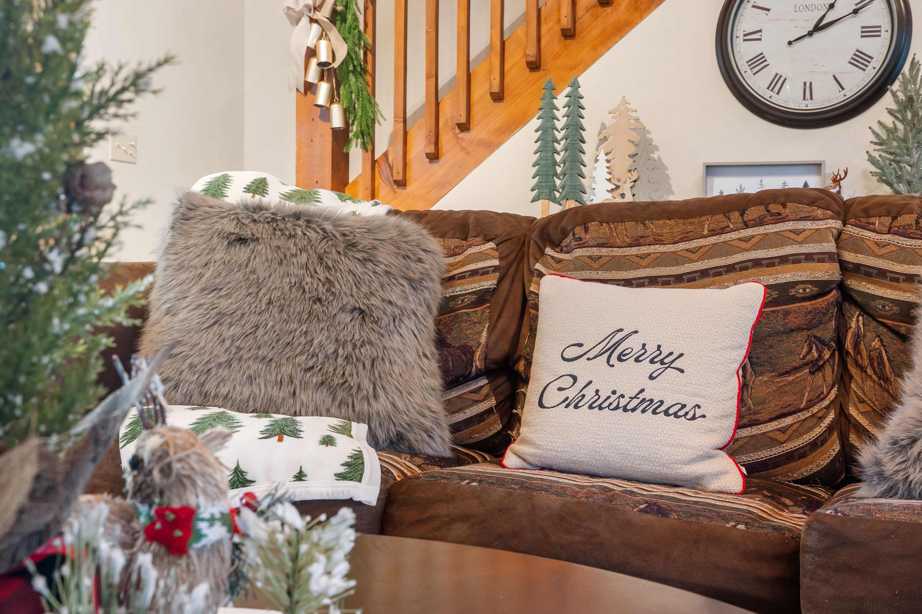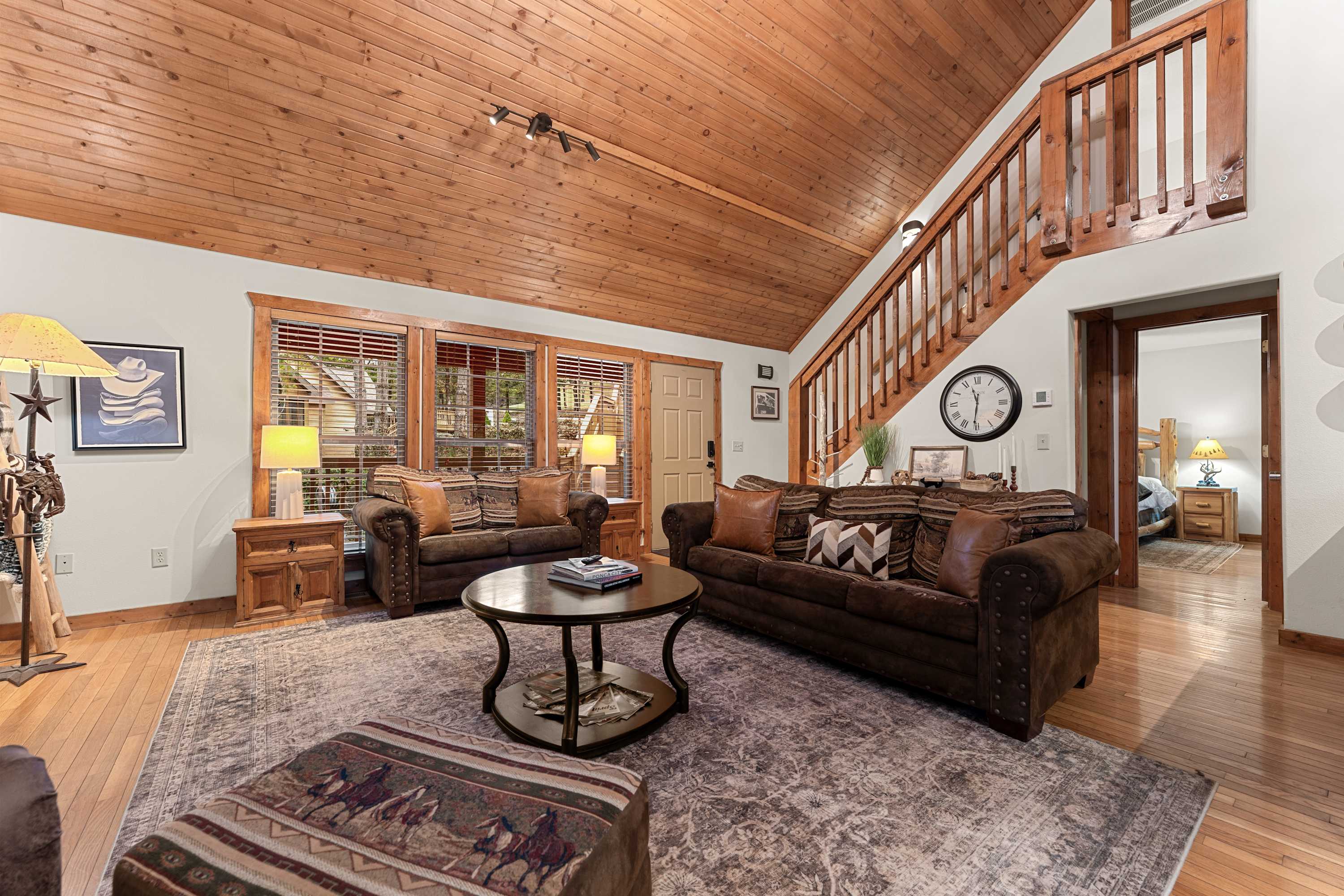 The home offers not one, but two spacious living areas. The living area on the main floor has a Smart TV, a beautiful floor-to-ceiling stone fireplace, and a sofa sleeper. The second living area is found on the lower floor and features a Smart TV, 2 Twin beds, and access to the back deck. The back deck offers a few different seating options for conversation or dining. Kitchen equipped with waffle iron and crockpot.