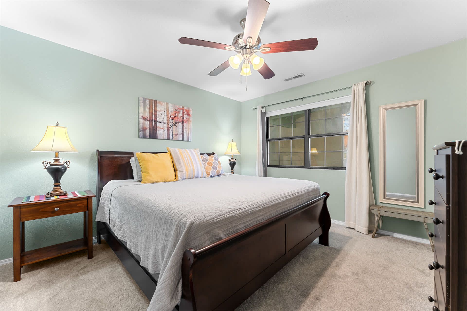 The home sleeps up to 6 guests comfortably between 2 private bedrooms and the pullout bed in the living room. Each space is well furnished with cozy linens so that every guest can sleep soundly after days of adventure.