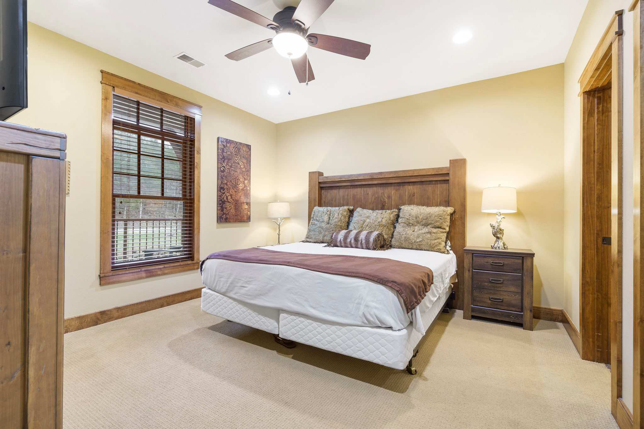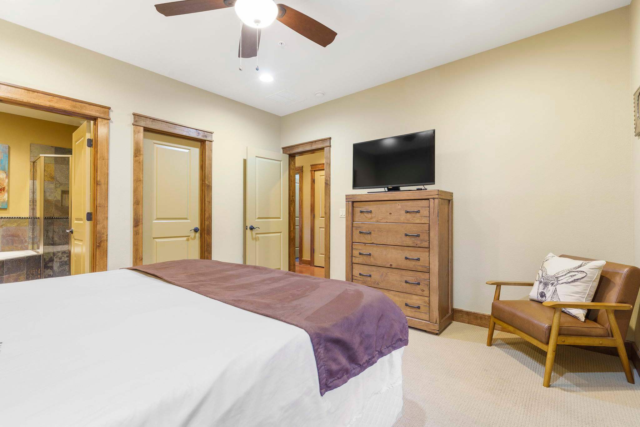 - Bedroom #2 is outfitted with a King bed, and TV. There is a 2nd hall bathroom with direct access to this bedroom as well.