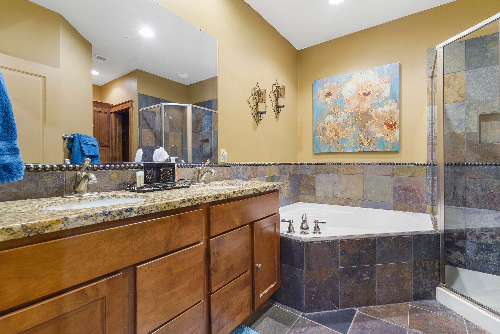 - Bedroom #1 is decked out with a King bed, TV, and en-suite. The en-suite offers a stand-up shower and features a jetted tub, perfect for a little bit of relaxation time after a fun-filled day on the lake.