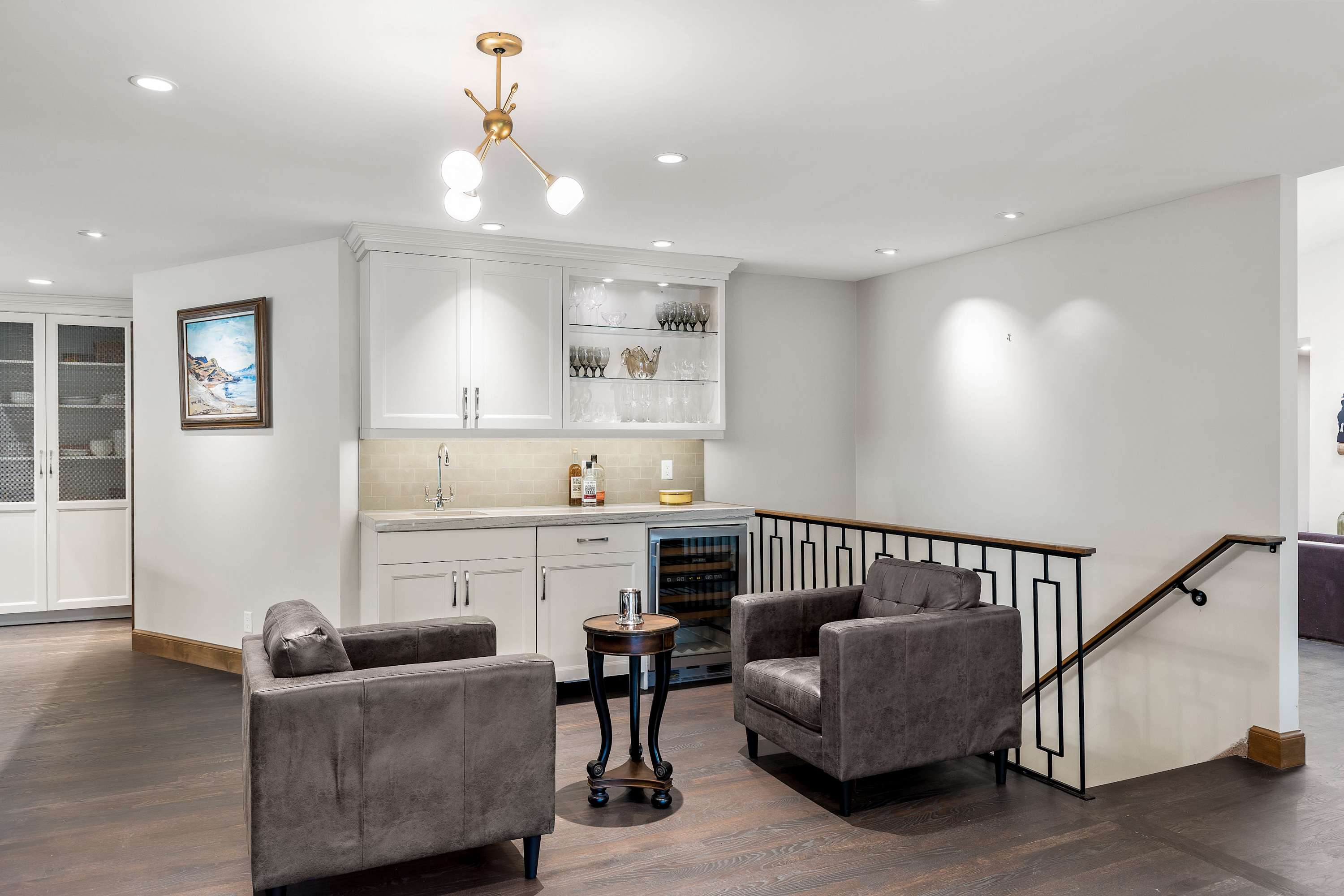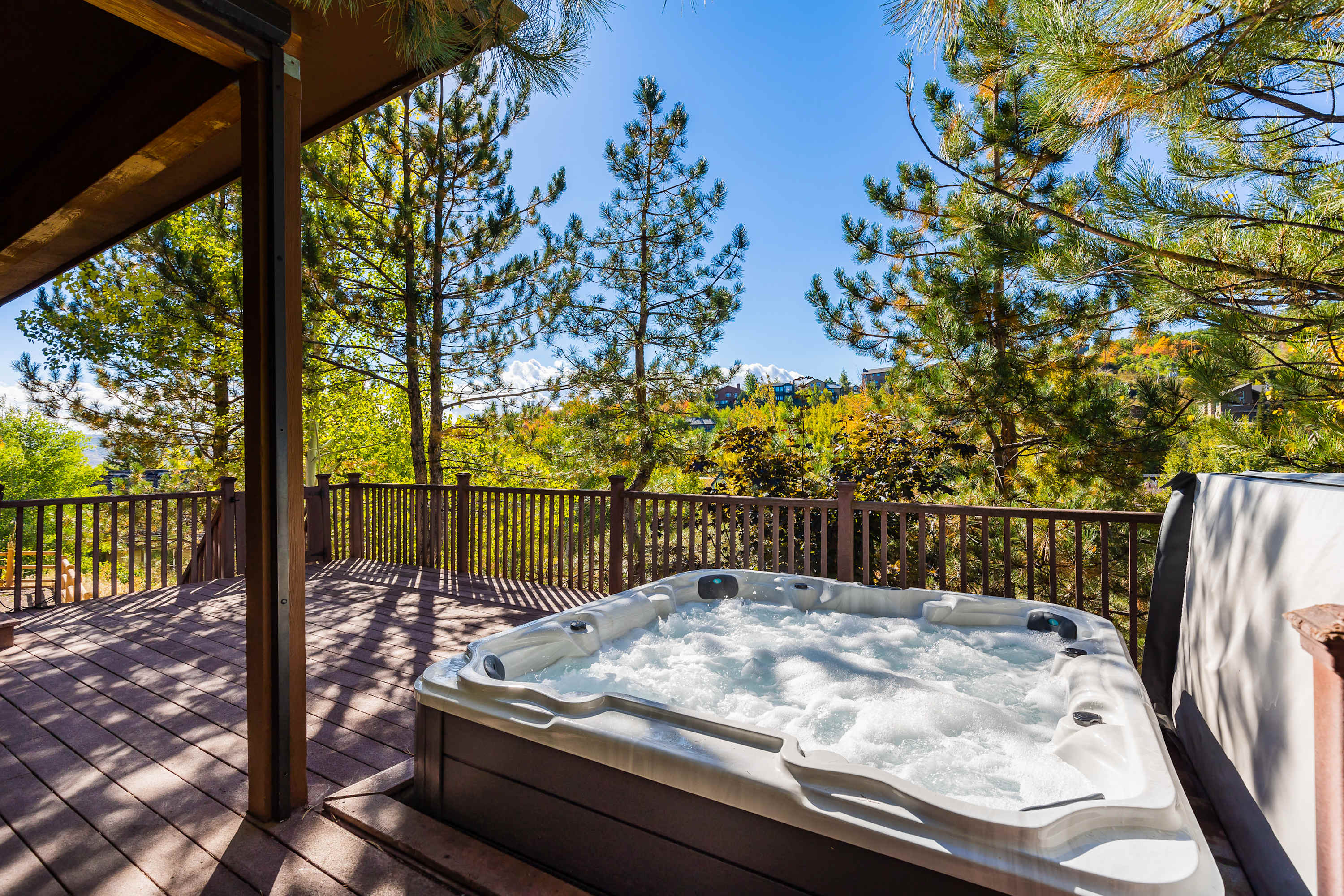 Next to the kitchen is an uber cool bar and lounge area, where you can mix it up with some cocktails and friends or family before heading out to the incredible, large, and super private deck with its private hot tub.
