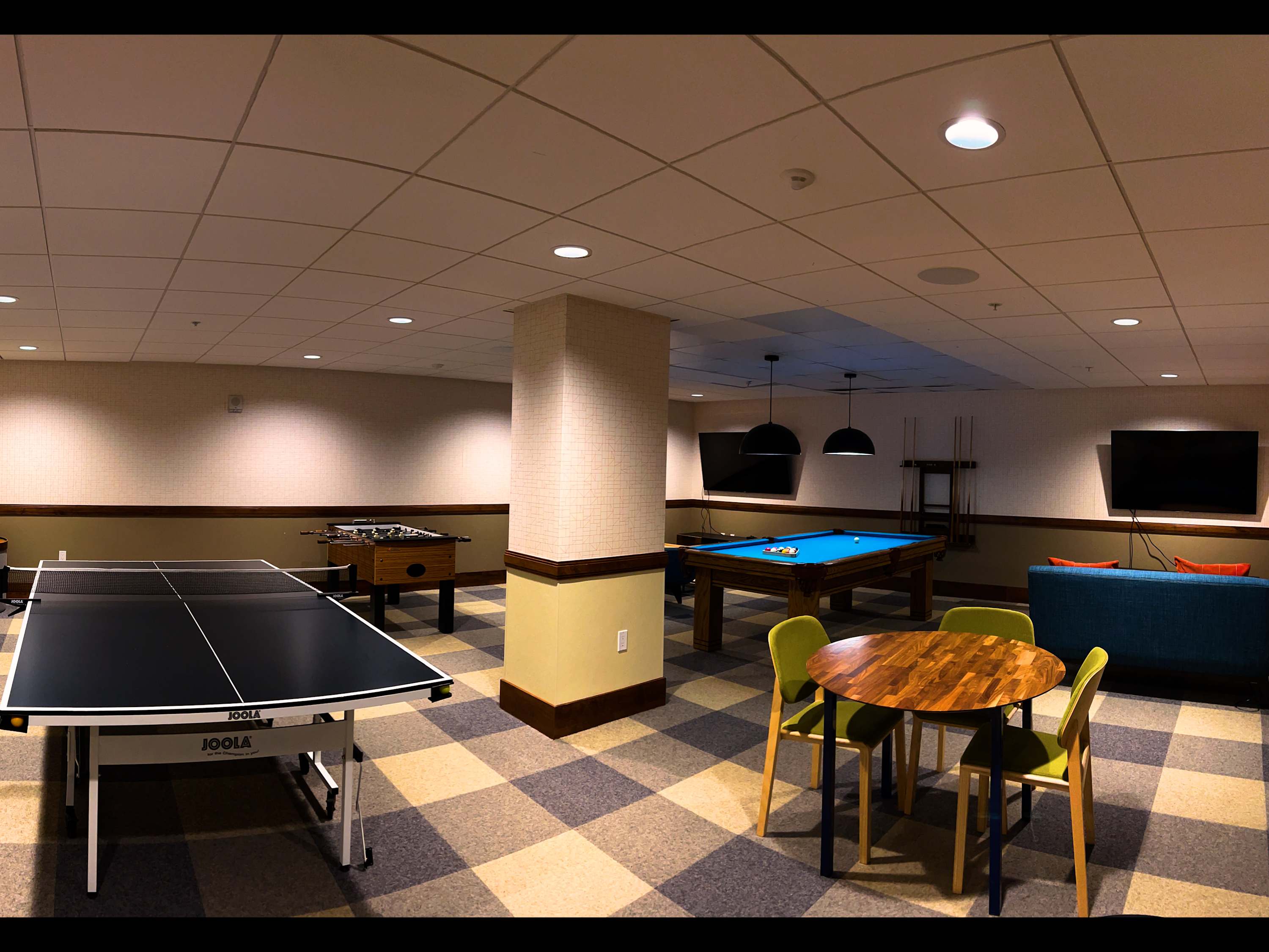 Game room with multiple game consoles, a pool table, ping-pong table and more!