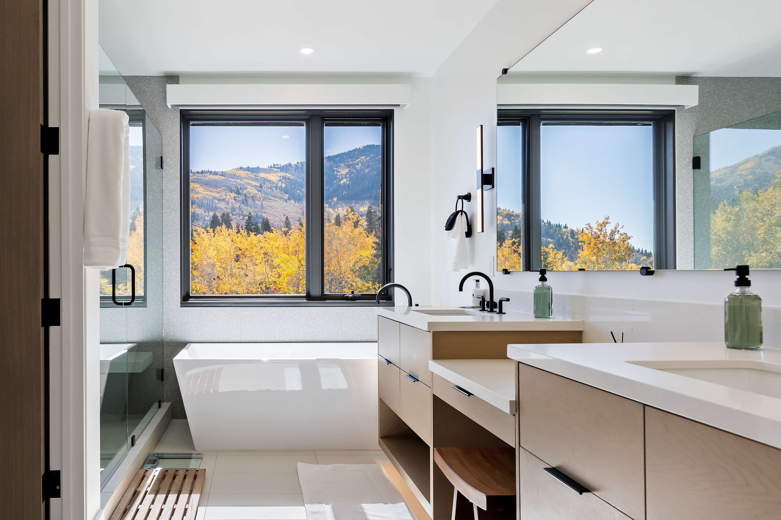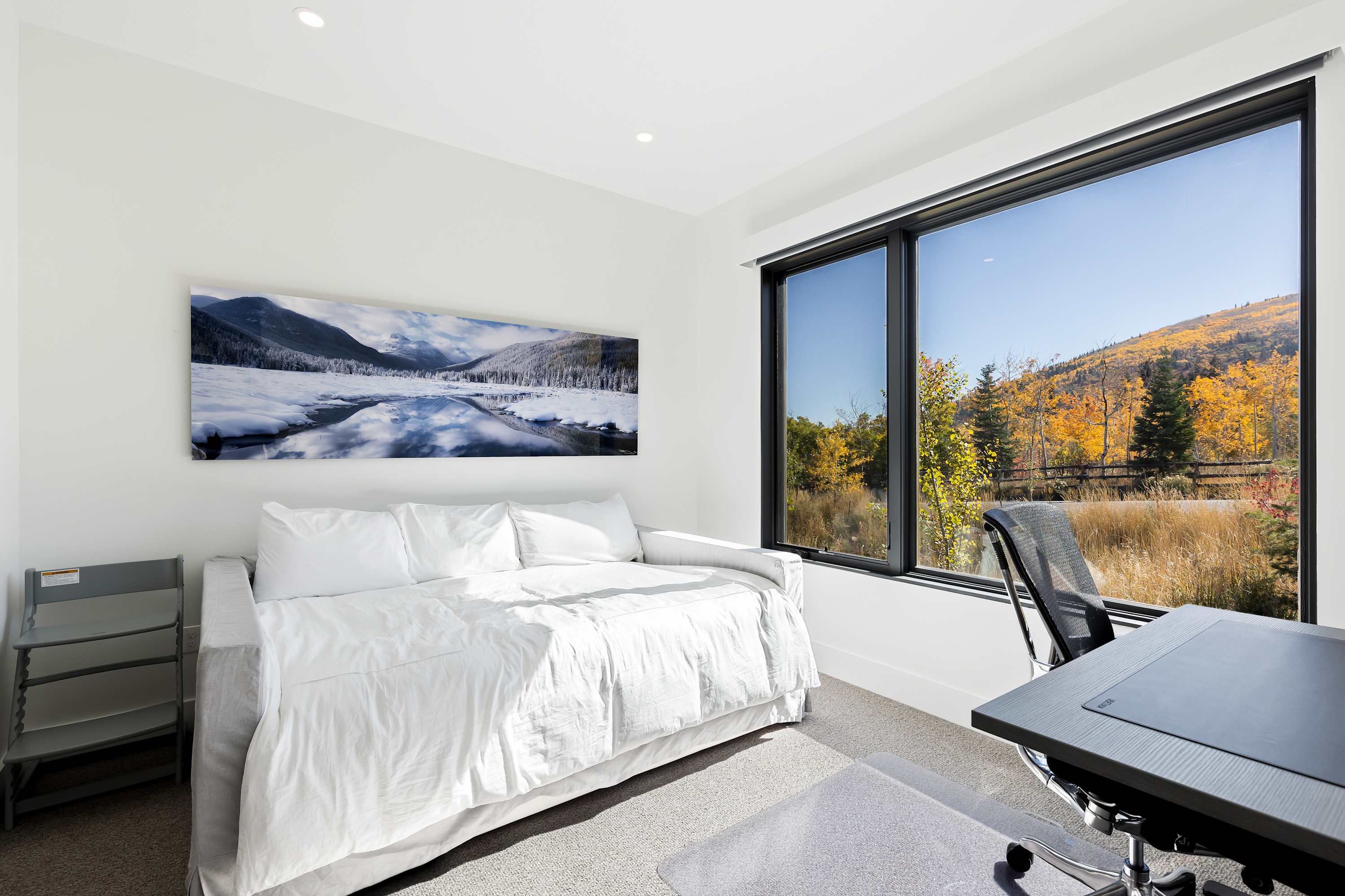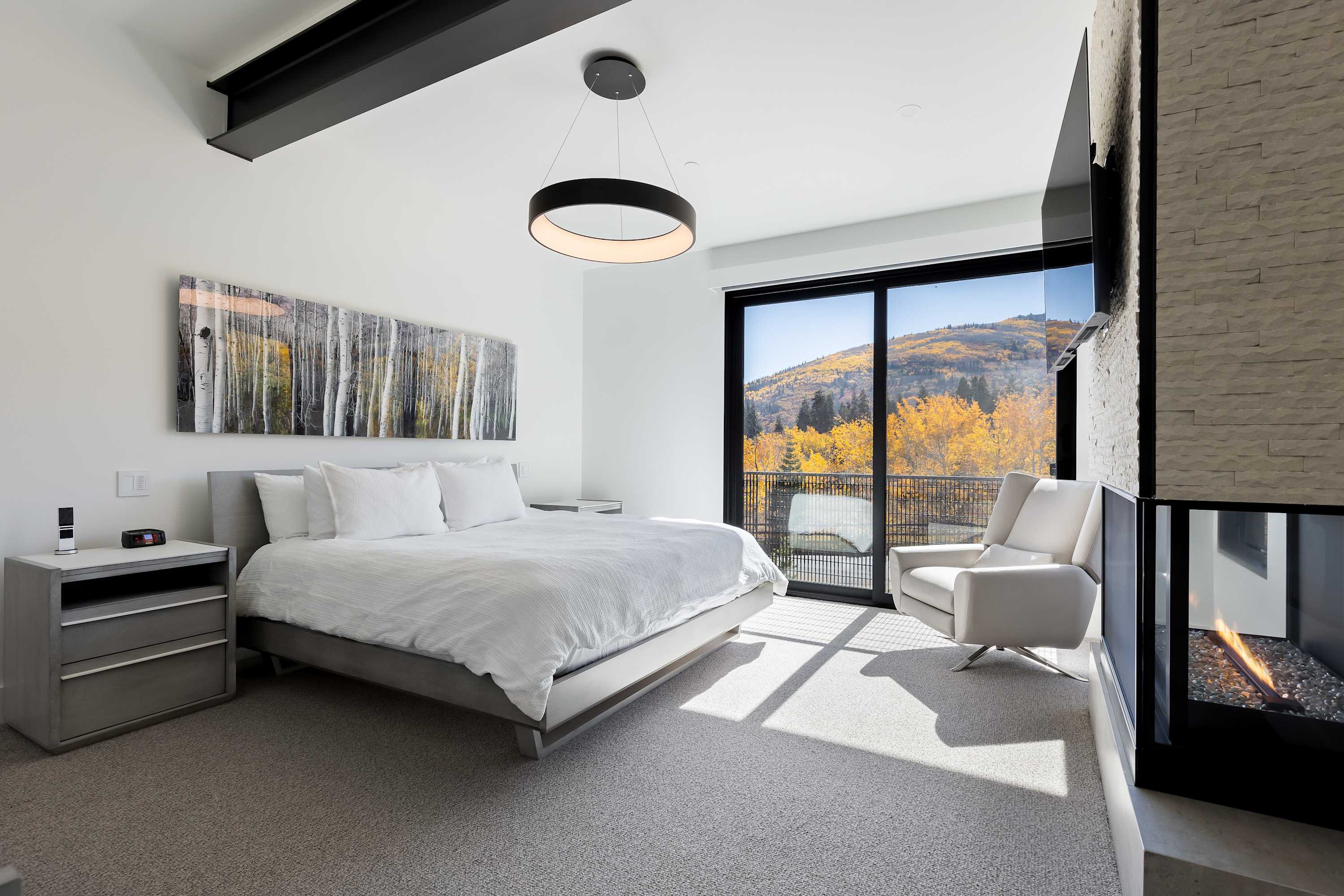After a day on the slopes, unwind in front of a cozy fireplace or take in the stunning, uninterrupted views of Iron Mountain from the deck's fire pit. This home is a true modern marvel, featuring a gourmet kitchen, a new Weber grill, and two Control4 home-theater systems. Never leave the couch or bed with remote-controlled Lutron shades, fireplaces, lights, and music on all three levels.