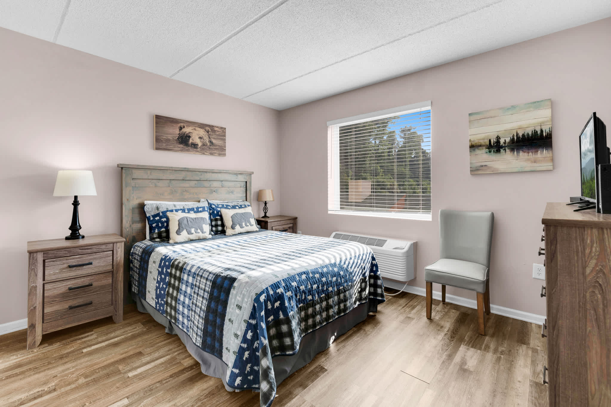 • Fireplace: The gas fireplace is seasonal and available October–March.