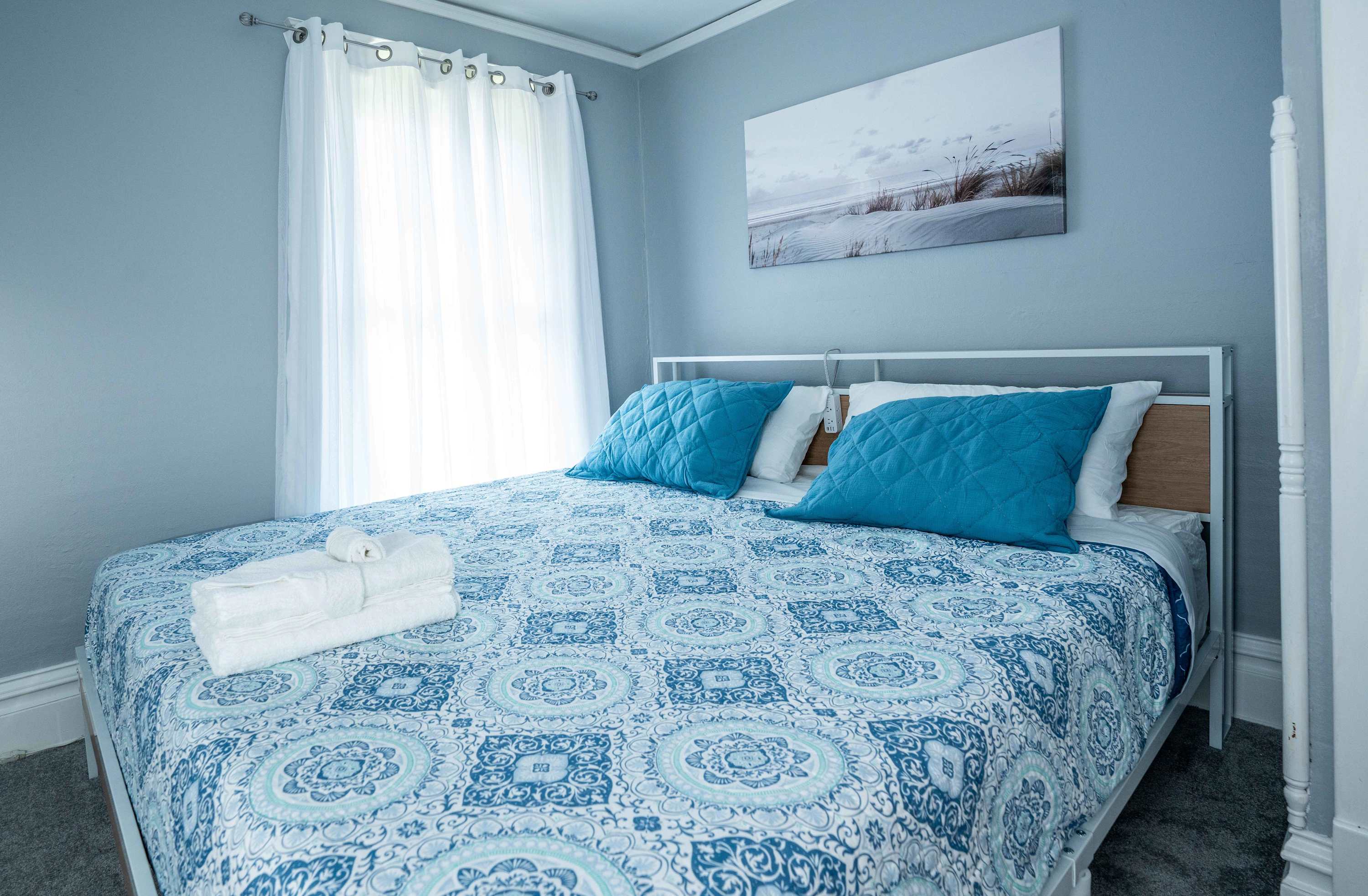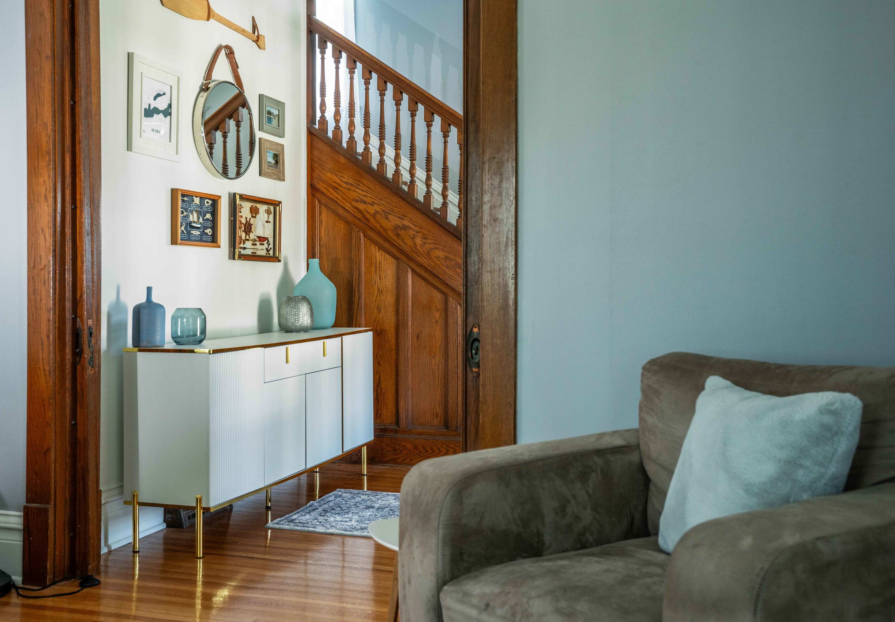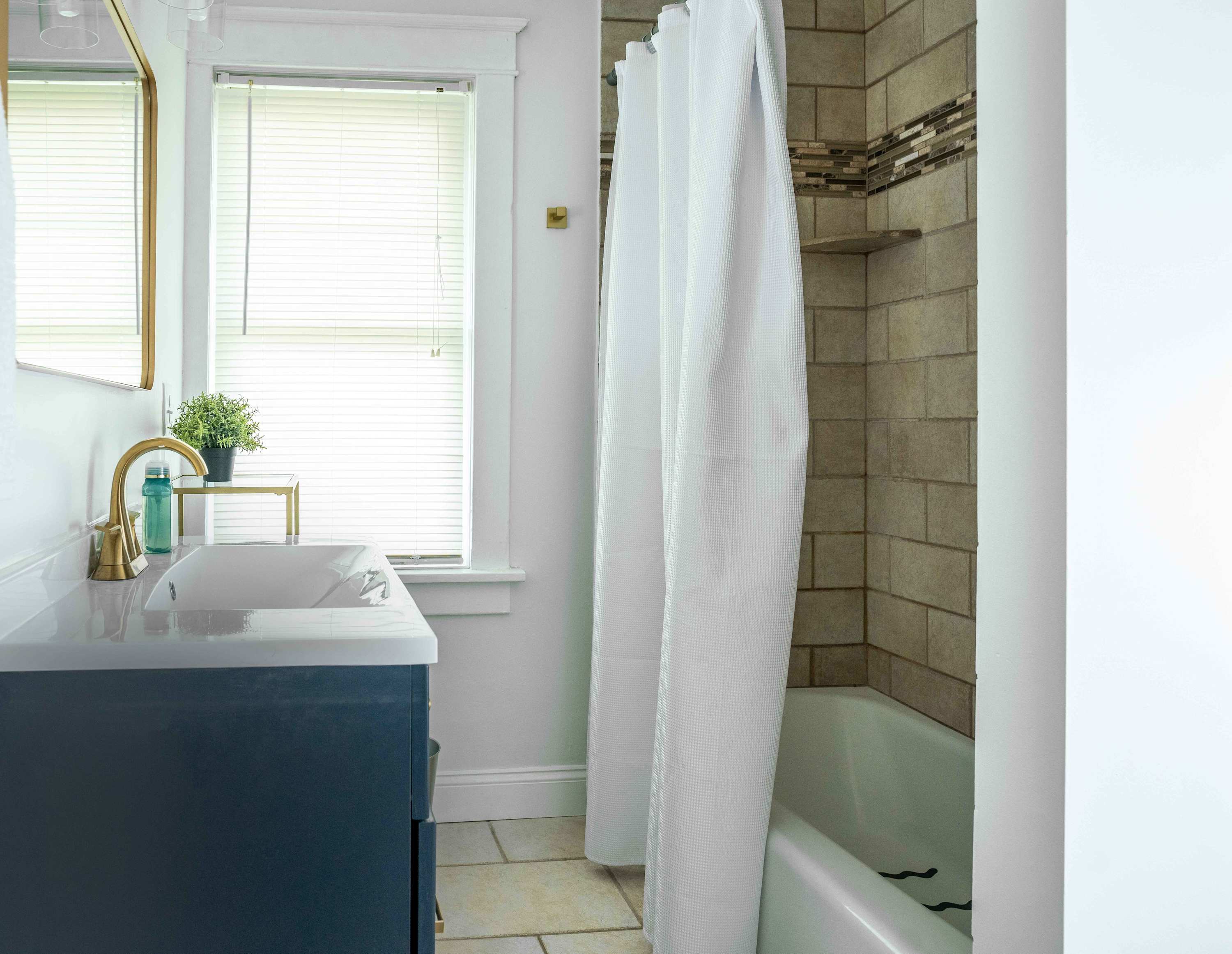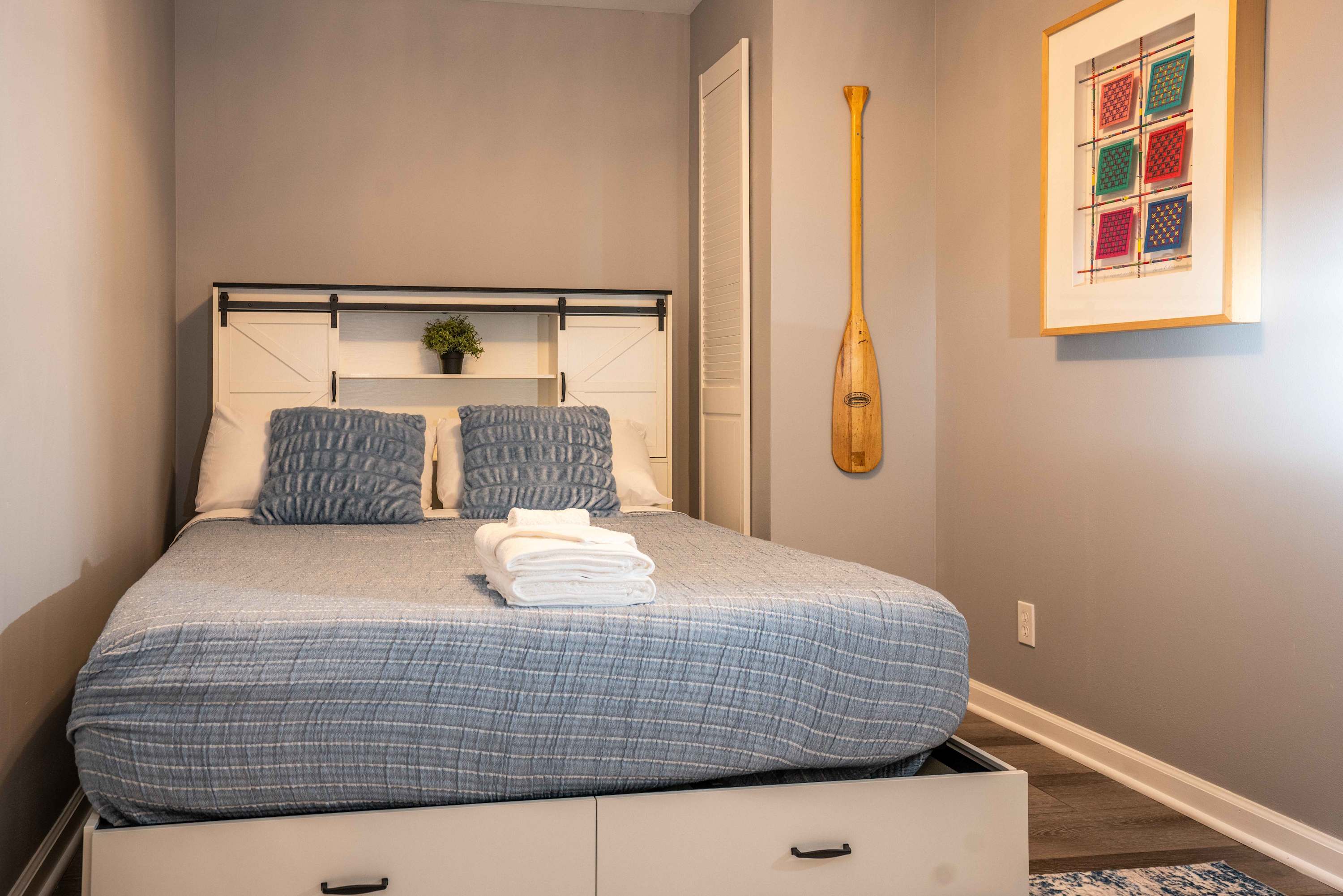 The home’s interior is a picture of sophistication, expertly curated with comfortable furnishings and trendy décor to maximize your downtime and connection with others. With several living spaces to choose from, everyone will be able to have the relaxation experience they desire. Sink into plush sofa and armchair seating in the living room to stream all your favorite entertainment on the mounted smart TV or escape to the charming front room for a quiet afternoon nap. Take your morning coffee or break out the cocktails and cards in the sunroom, soaking up the plentiful natural light. The lower-level den is all-things entertainment, with a full-sized shuffleboard table, board games, and additional sofa seating with smart TV for an immersive family movie night.
