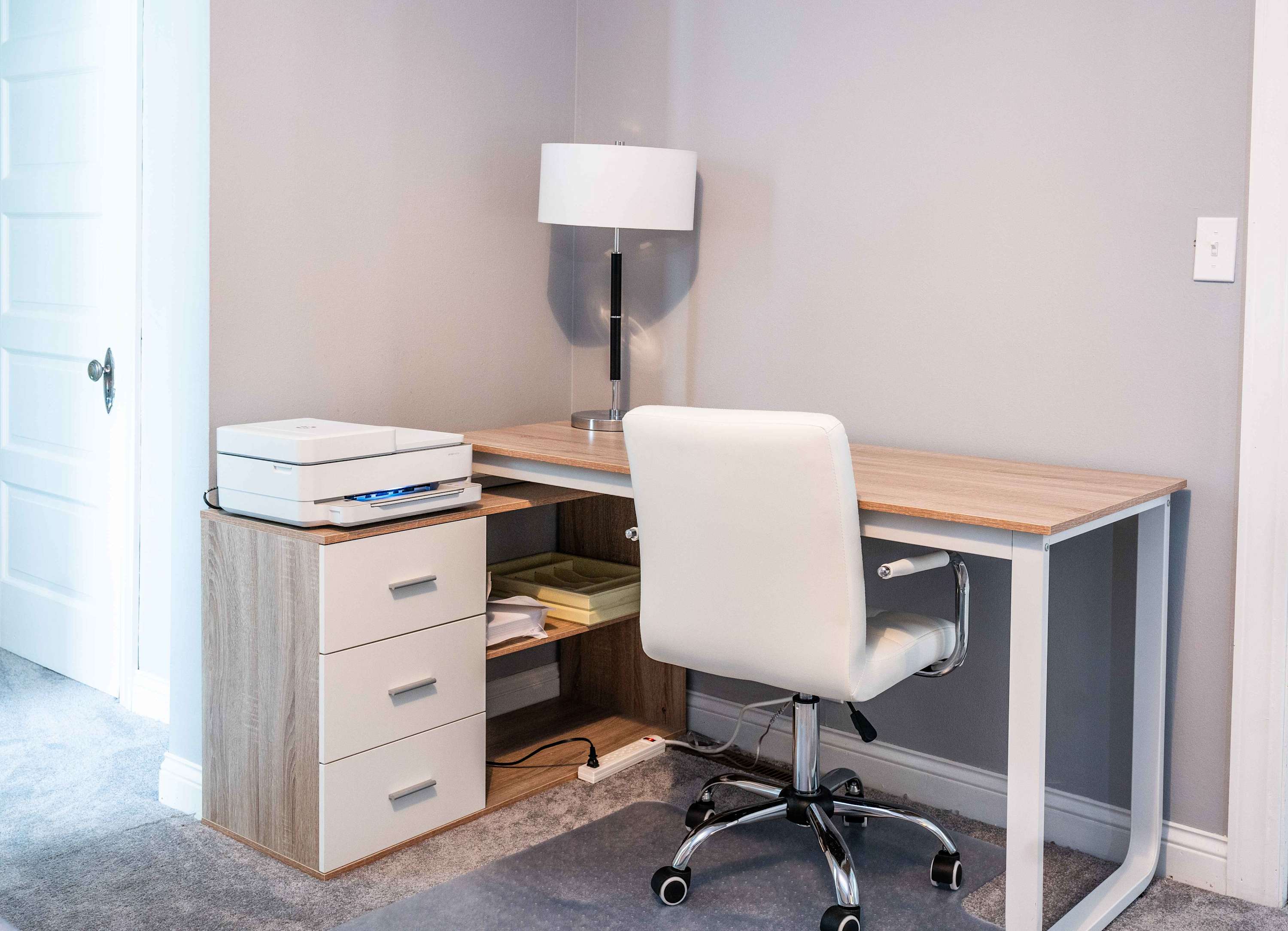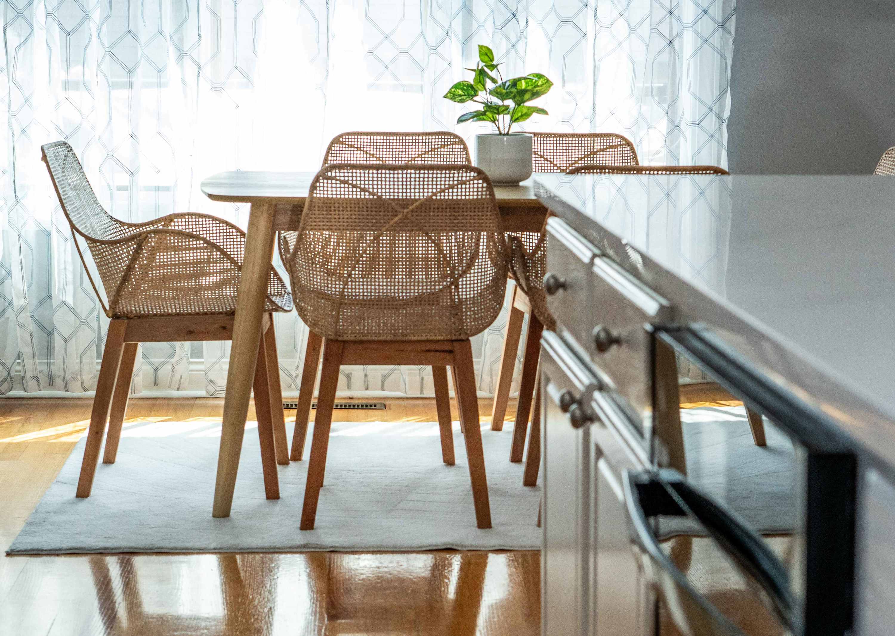 Back upstairs, the sparkling kitchen is a chef’s delight, showcasing stainless steel appliances, glossy stone counters, high-top stool seating for 6, and sleek white cabinetry stocked with cookware and dining ware for all your mealtime endeavors. Between the more formal settings of the breakfast table and dining table, you’ll always be enjoying your fare in good company.