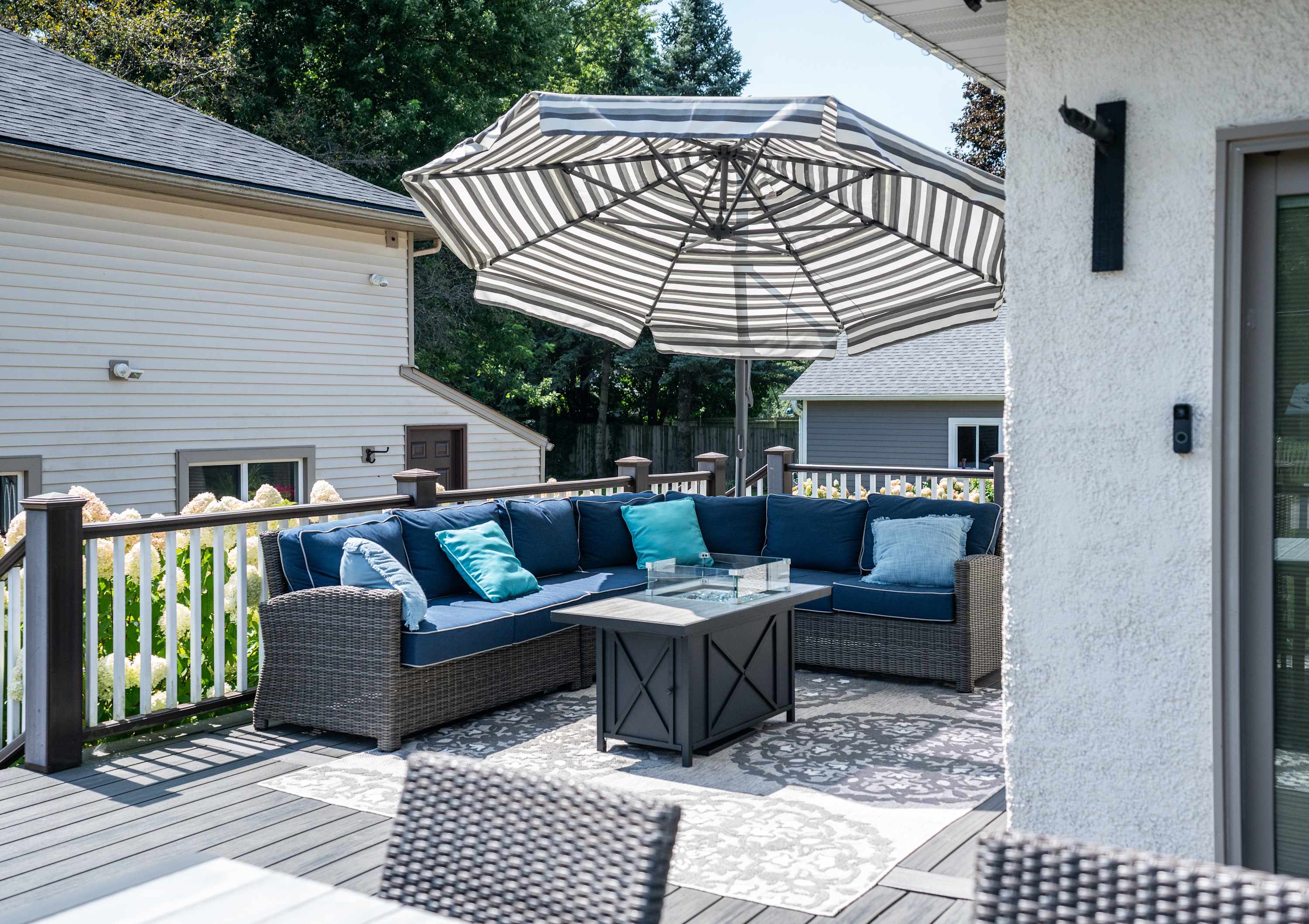 • There is a Ring doorbell on the front door, a Blink doorbell on the patio door, and a Ring camera facing the deck/garage.