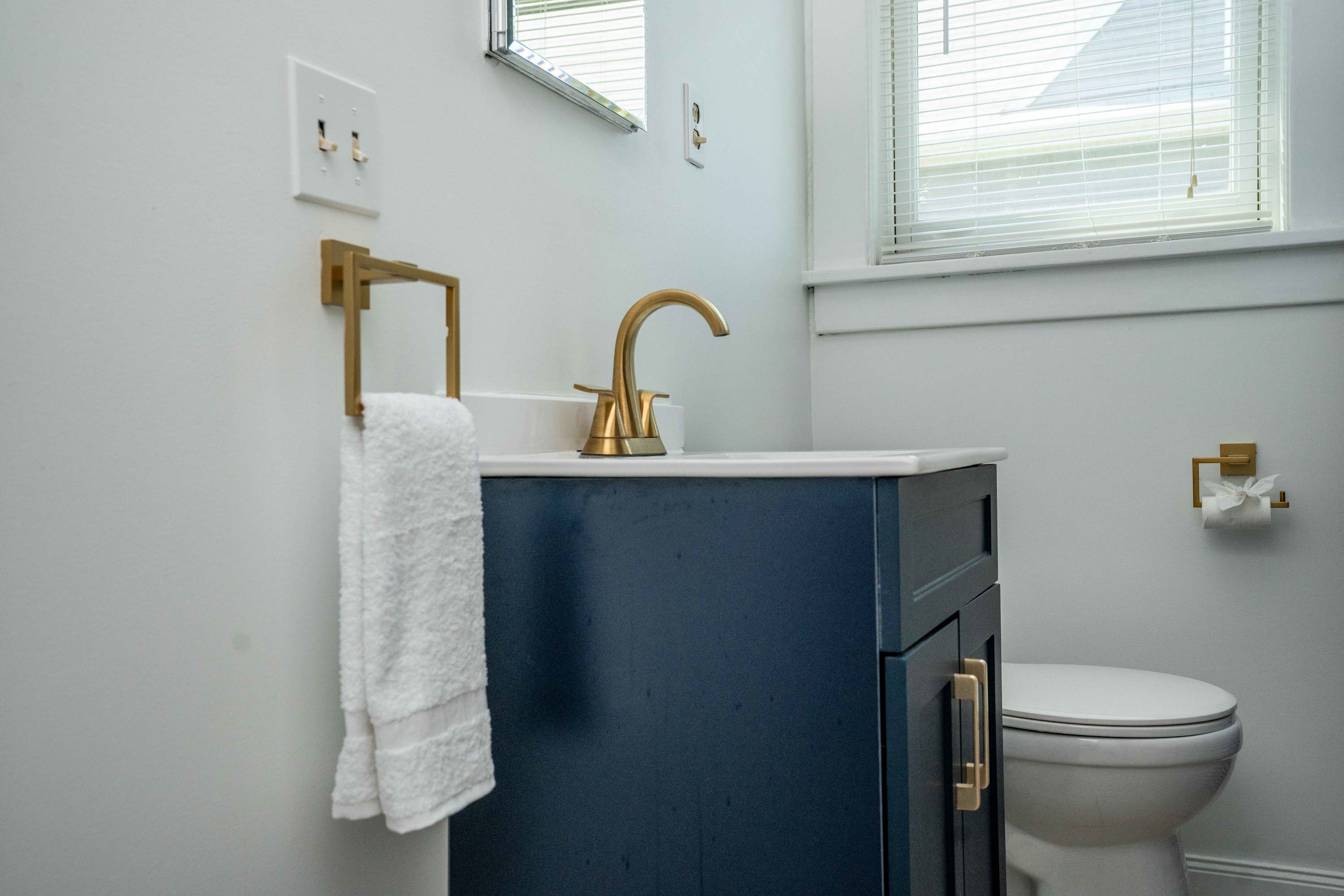 The home also includes a half bathroom, as well as 3 full guest bathrooms, two with a single vanity and shower/tub combo and one with a single vanity and walk-in shower.