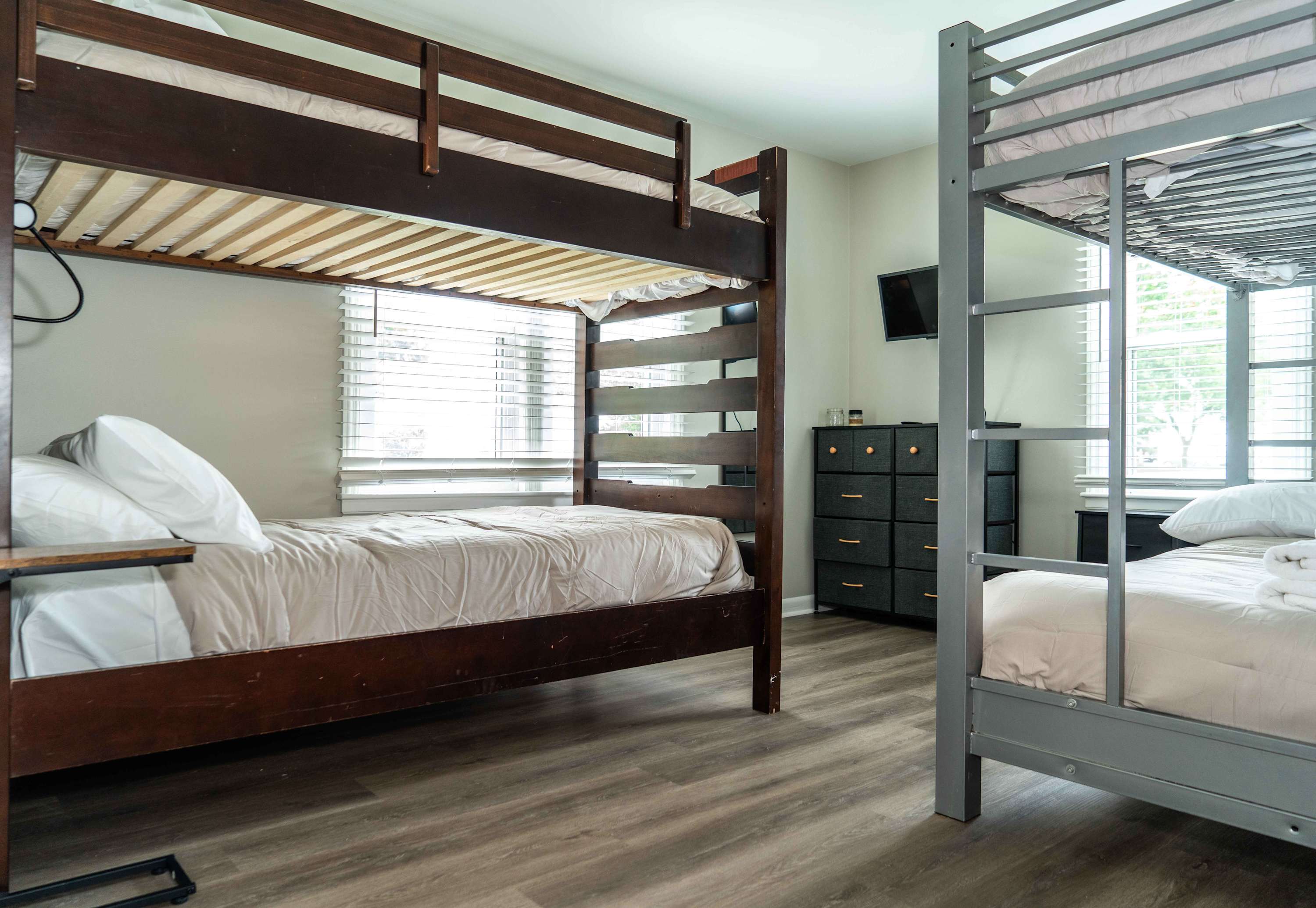 Bedroom #1 includes a full-over-full bunk bed, a twin-over-twin bunk bed, and a smart TV.
