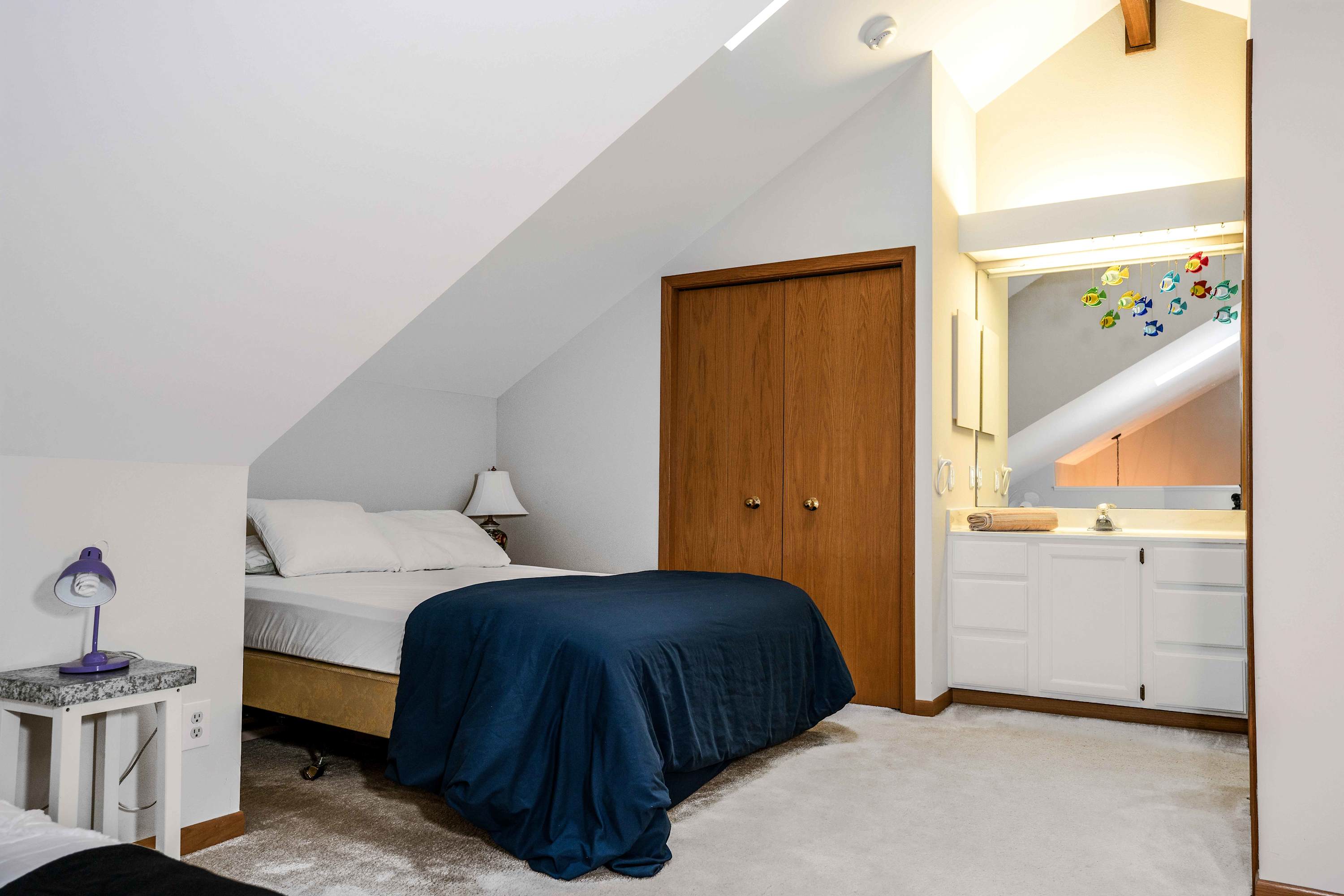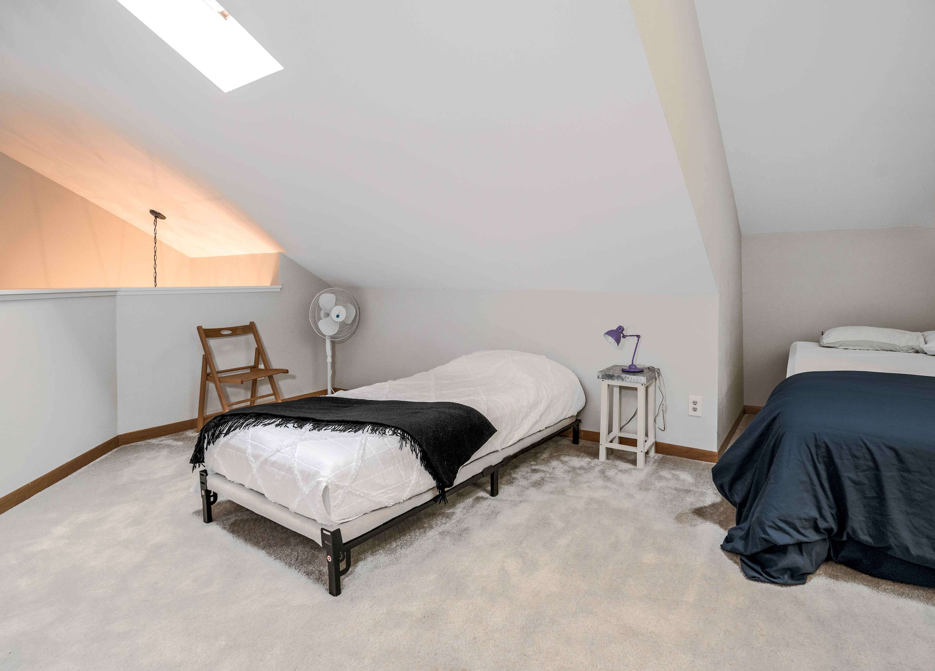 The loft includes 1 queen size bed and 1 twin size bed.