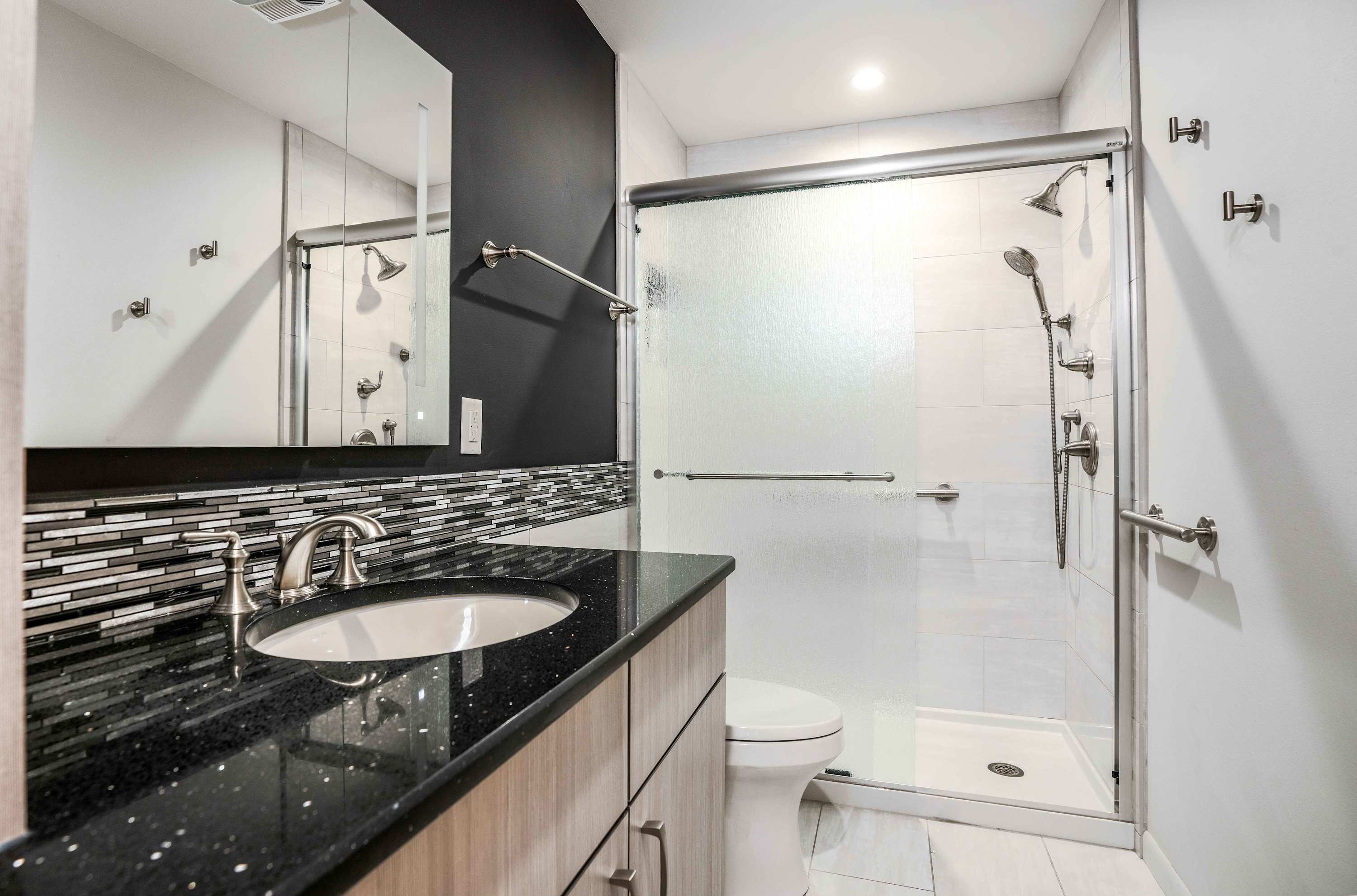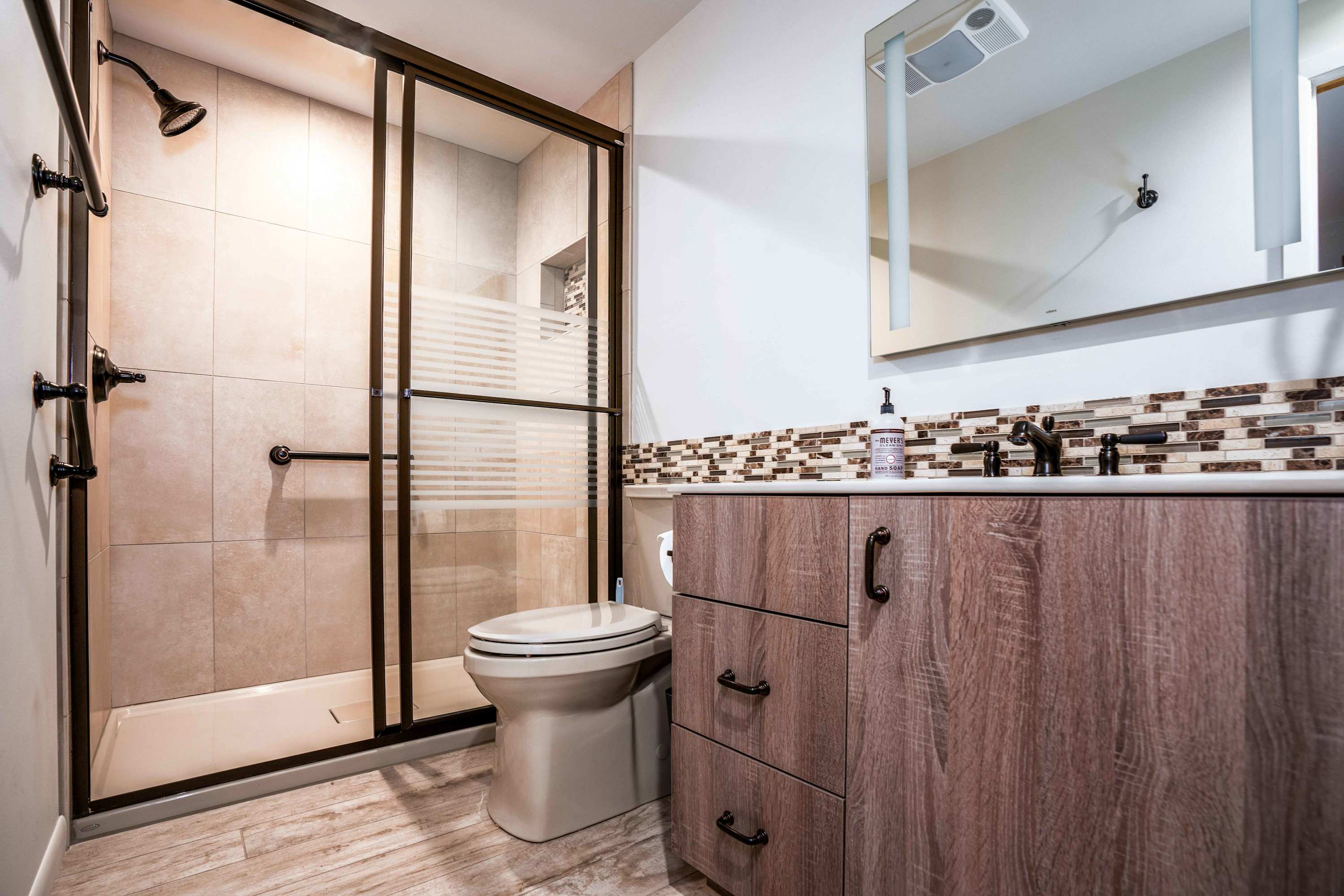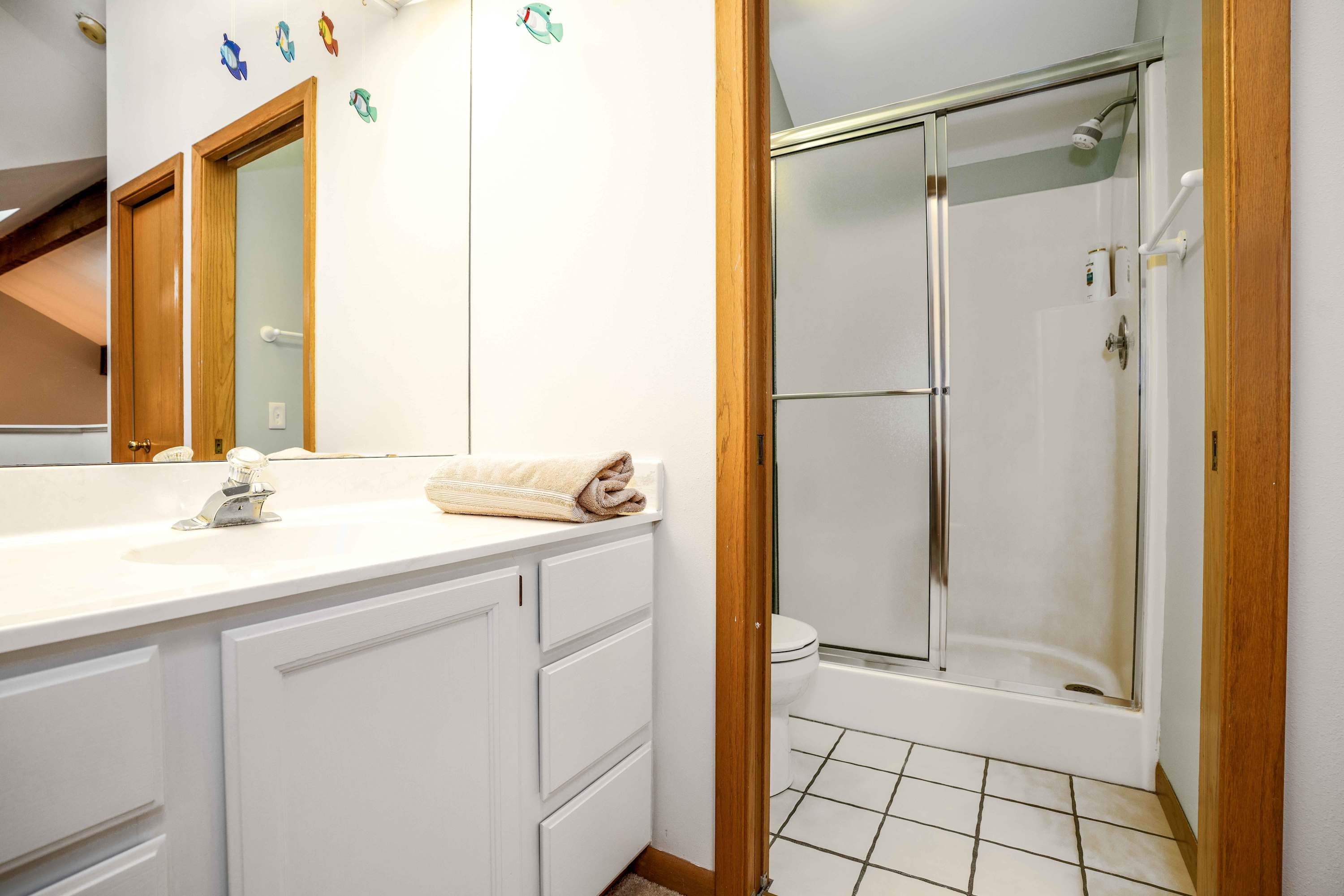 The home also includes 2 additional full guest bathrooms, both offering a single vanity and walk-in shower.