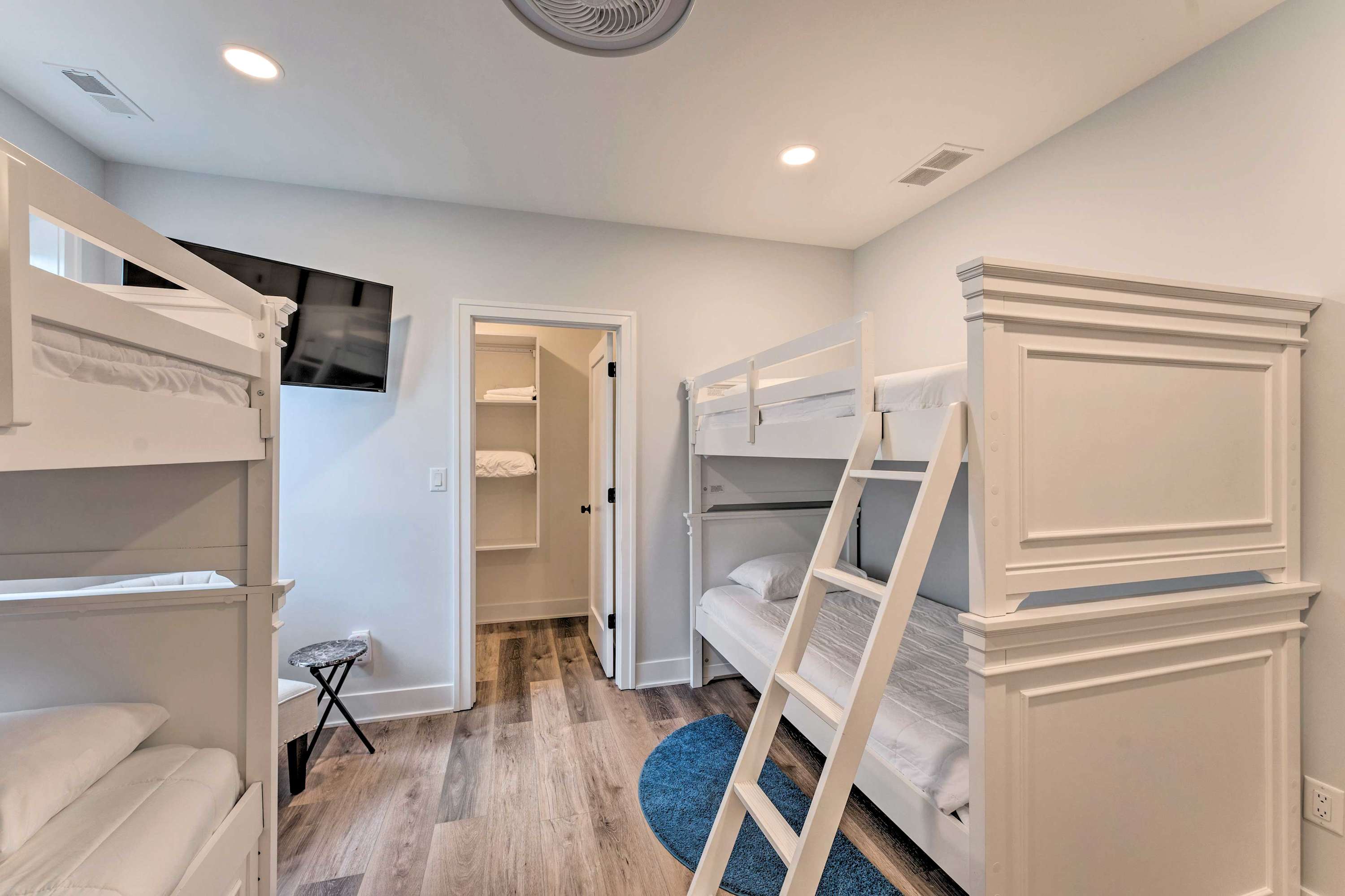 Bedroom #2 includes 2 twin-over-twin bunk beds, a twin trundle, and a smart TV.