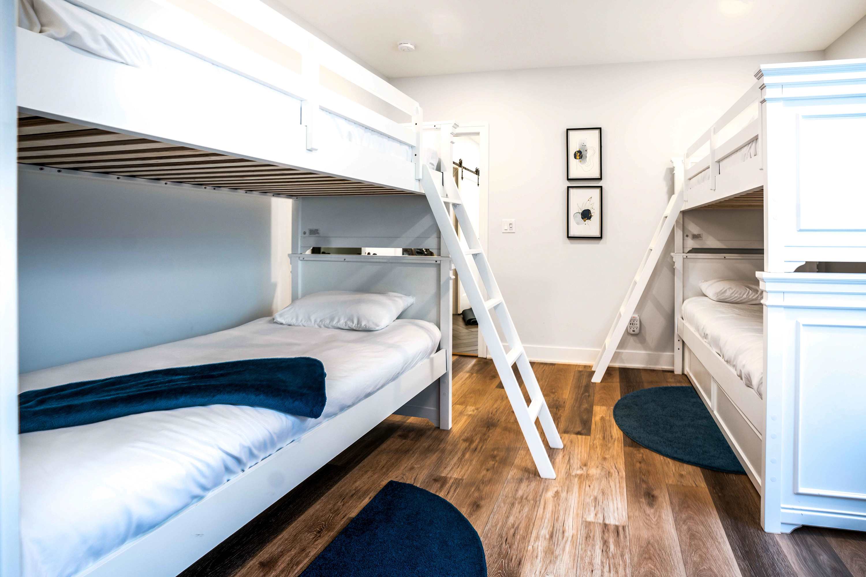 - Bedroom #2 includes 2 twin-over-twin bunk beds, a twin trundle, and a smart TV.