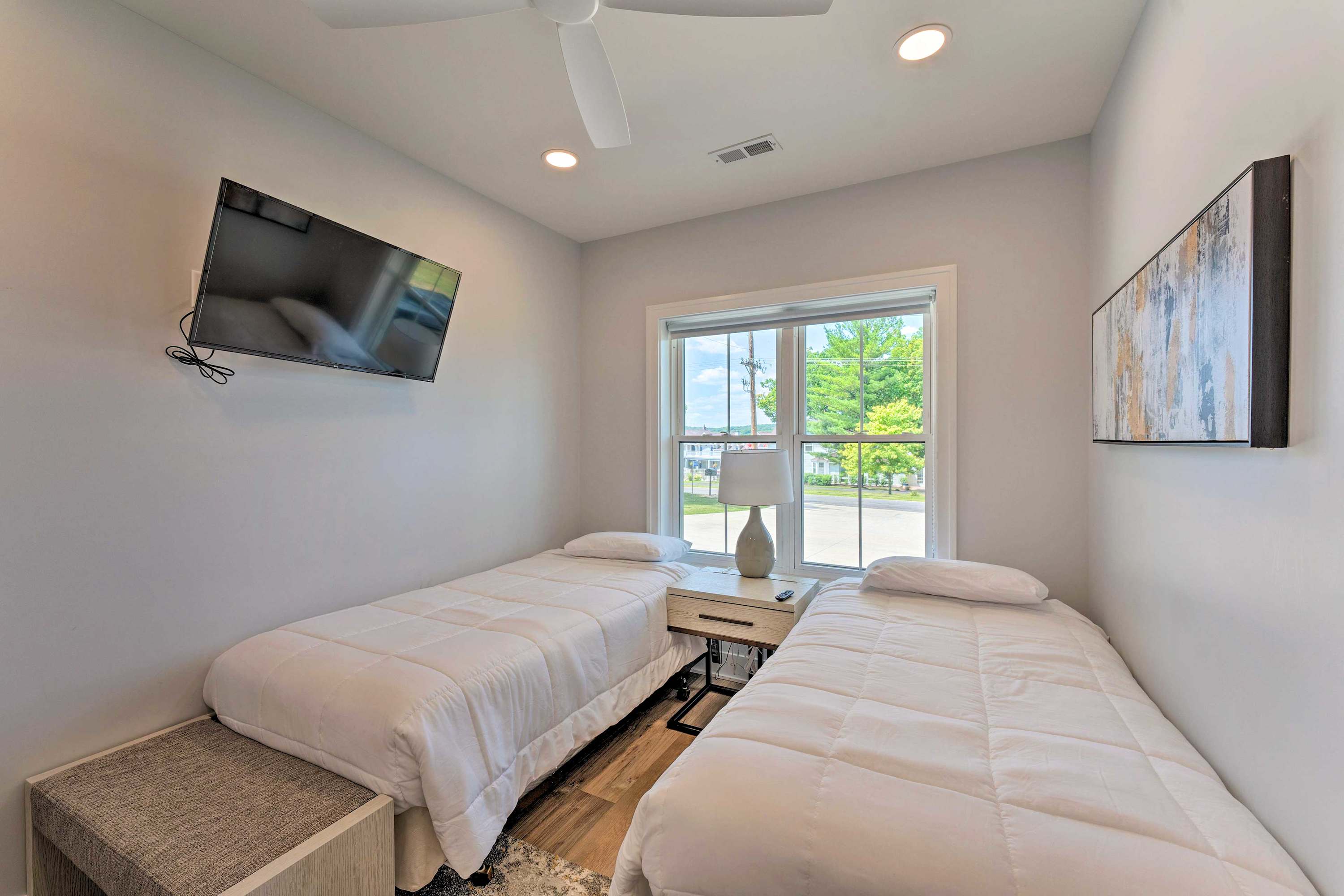 - Bedroom #1 includes 2 twin beds and a smart TV.