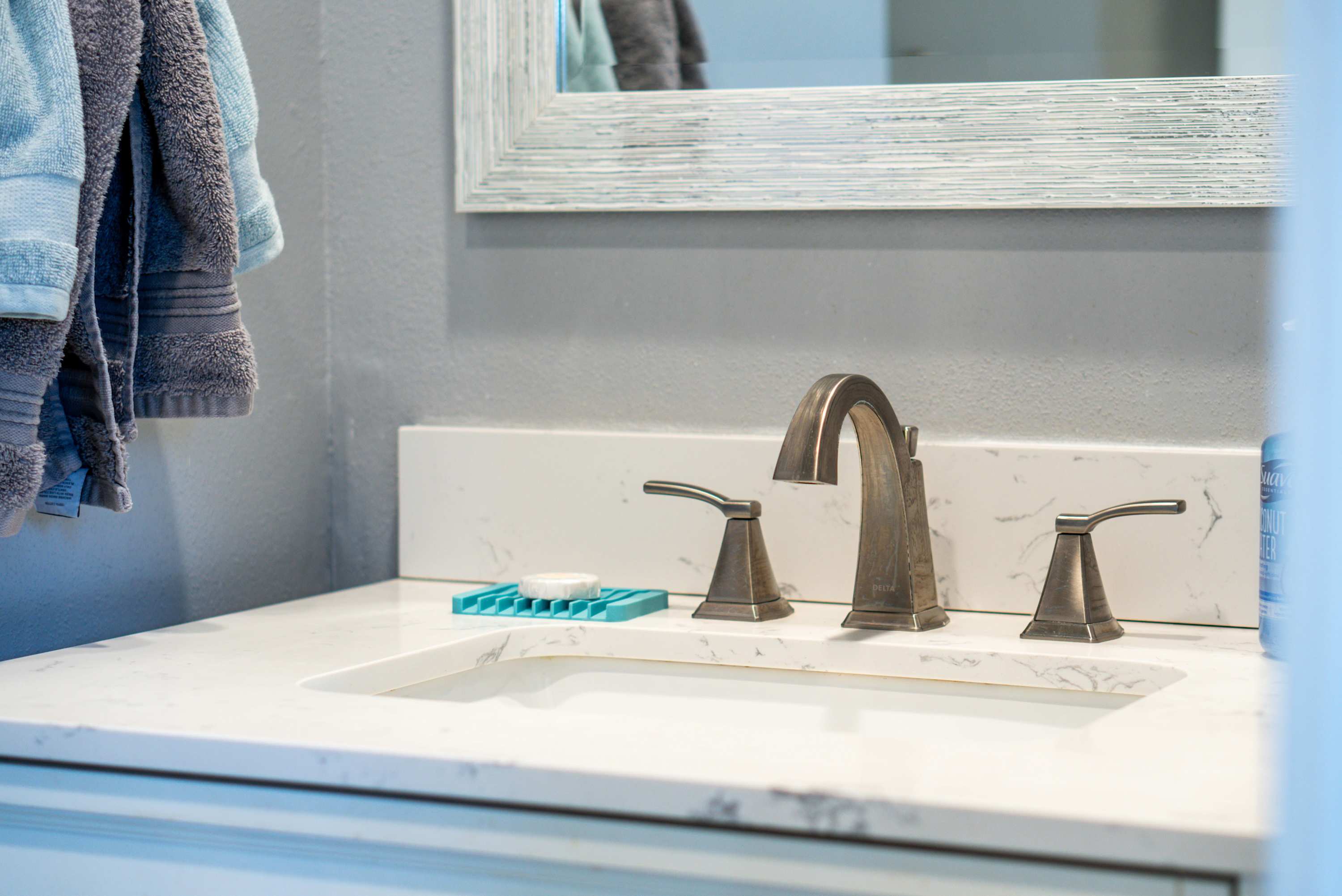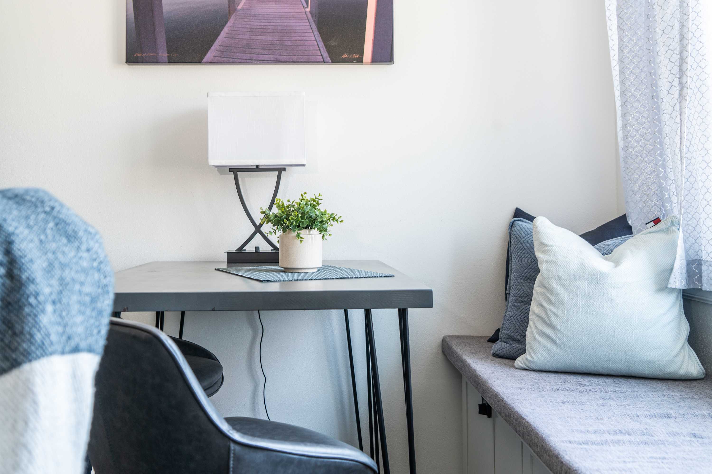 While quaint, this updated home includes all the necessities to make your vacation complete, plus a few added bonus features. You’ll be immediately taken in by the chic and modern furnishings accented with stylish décor in the main living area, illuminated by an abundance of natural light. Curl up on the plush leather sofa while reading a good book or streaming a new movie on the large mounted smart TV. The kitchen comes fully stocked with all the essentials along with a drip coffee maker to help get your days started off right. Dine on homecooked or takeaway meals at the high-top dining table with seating for 2 as you gaze out the picture windows at the gorgeous scenery.