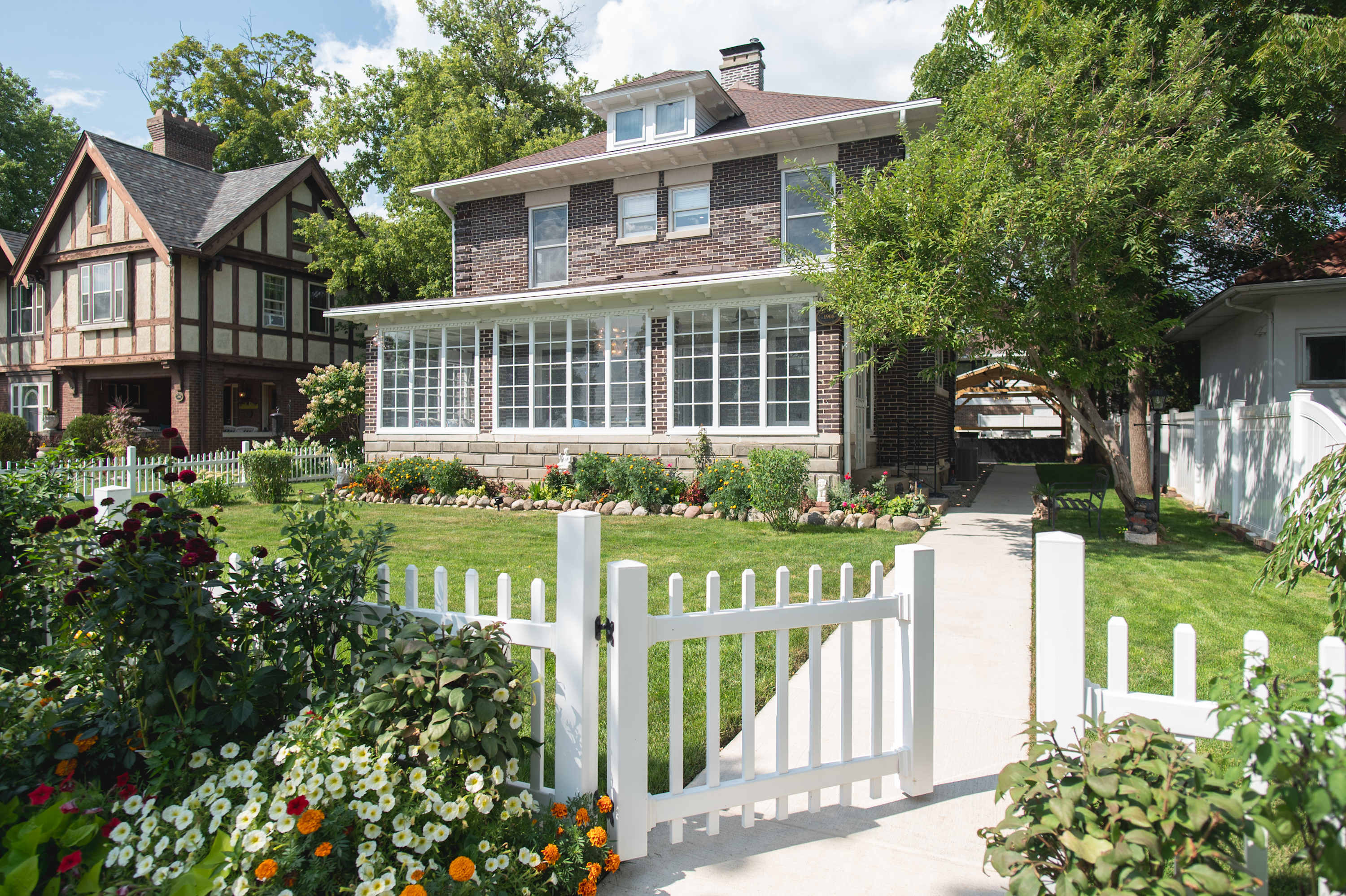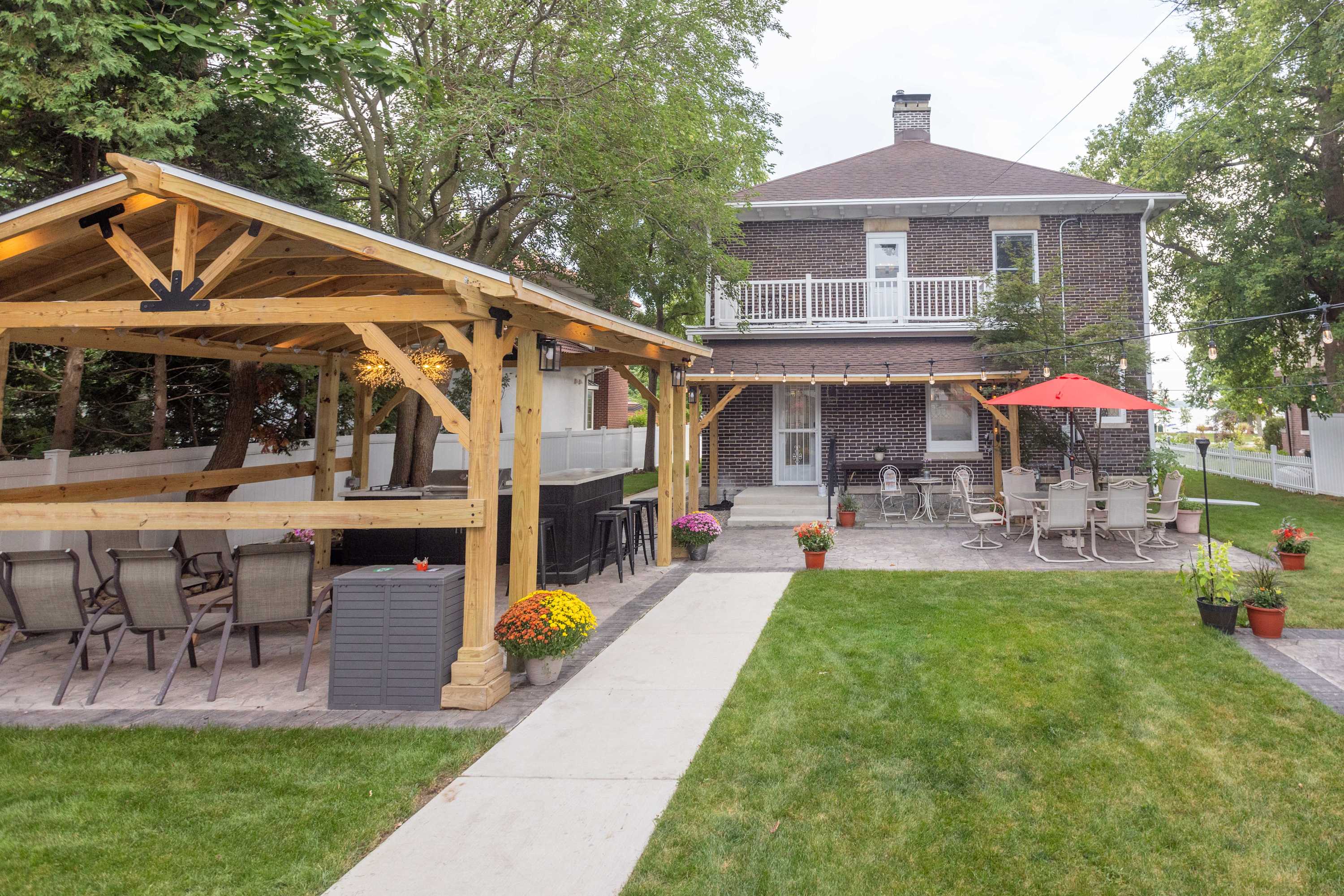 Located across the street from the northern shores and beaches of the lake and just one block from downtown, it’s the perfect setting for families, a group of friends, or even a corporate retreat. The whole home has been completely remodeled yet retains much of its historic charm, and you’ll love exploring all the unique spaces it has to offer inside and out. Upon arrival, you’ll notice a spacious, beautifully manicured yard with several areas for entertaining. Gather around the fireplace for an evening of cocktails and casual conversation under the stars or host an afternoon barbeque at the outdoor kitchen and dining area. The patio offers an al fresco dining set of table, chairs, and umbrella that can seat 6. When you’re not out exploring the eclectic city or catching some rays at the beach, this outdoor area is the perfect place to unwind and spend even more memorable moments together.