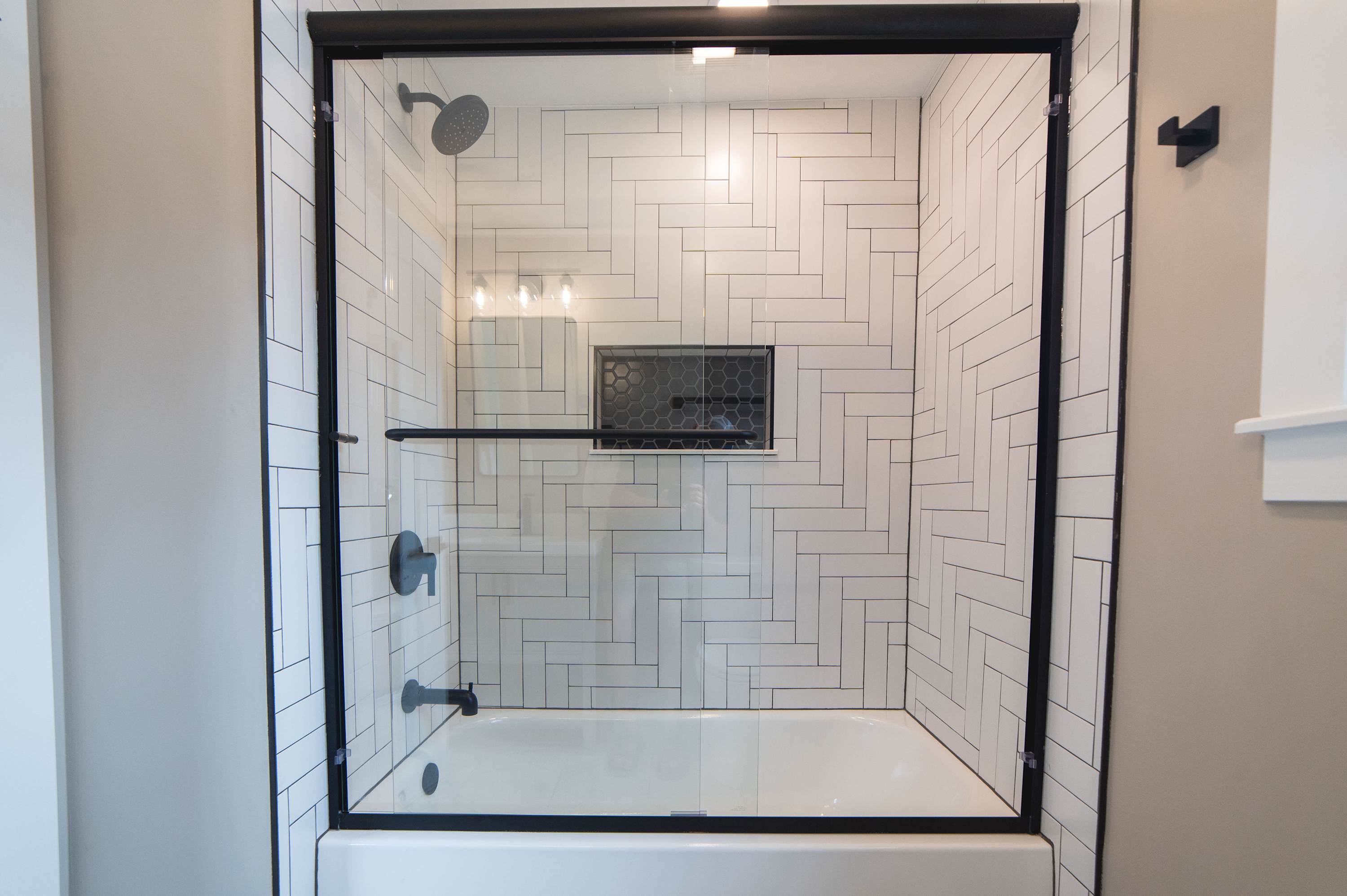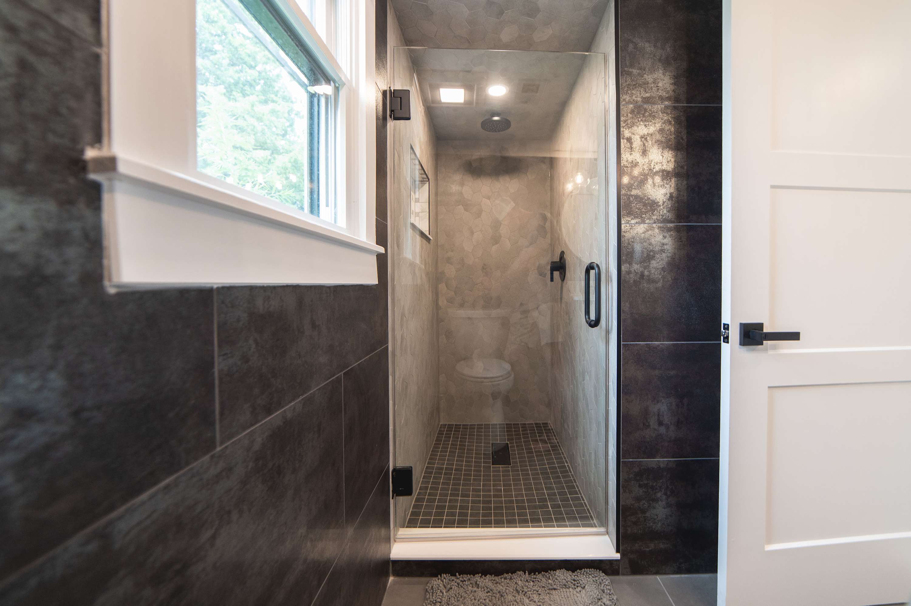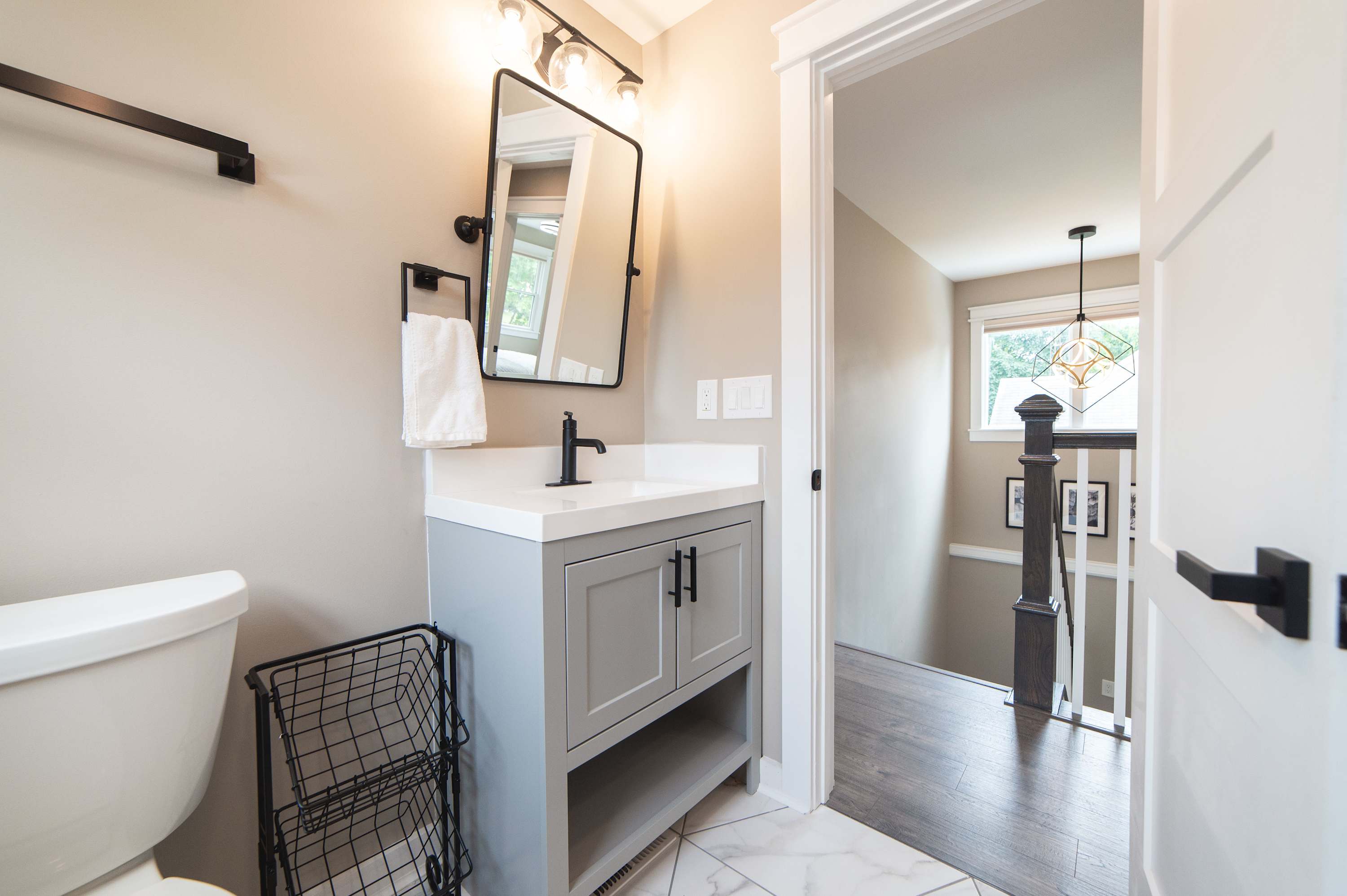 Our home comfortably sleeps 8 guests between 4 private bedrooms. It also includes 2 full bathrooms, the first on the main level with a single vanity and walk-in shower and the second on the upper level with a single vanity and shower/tub combo.
