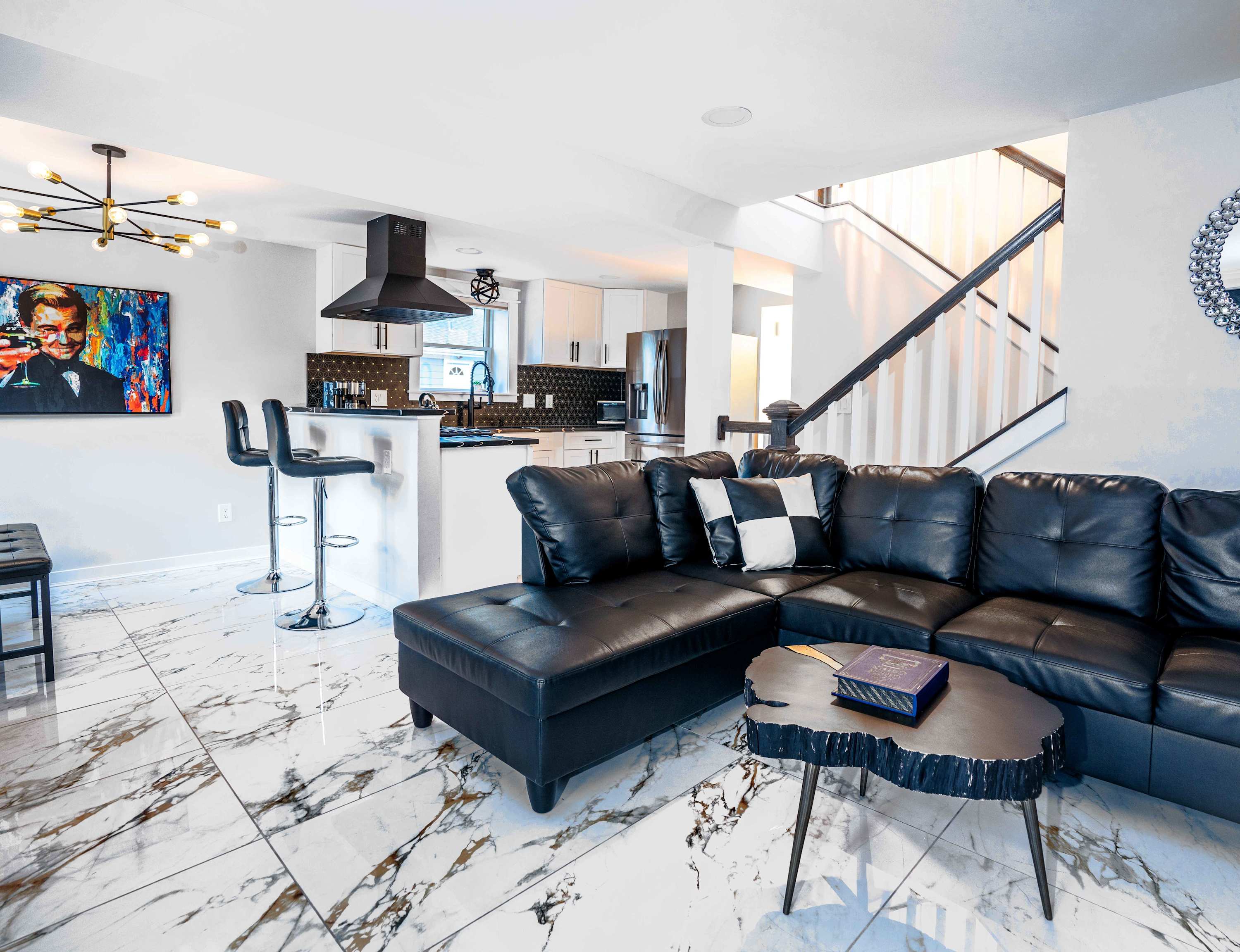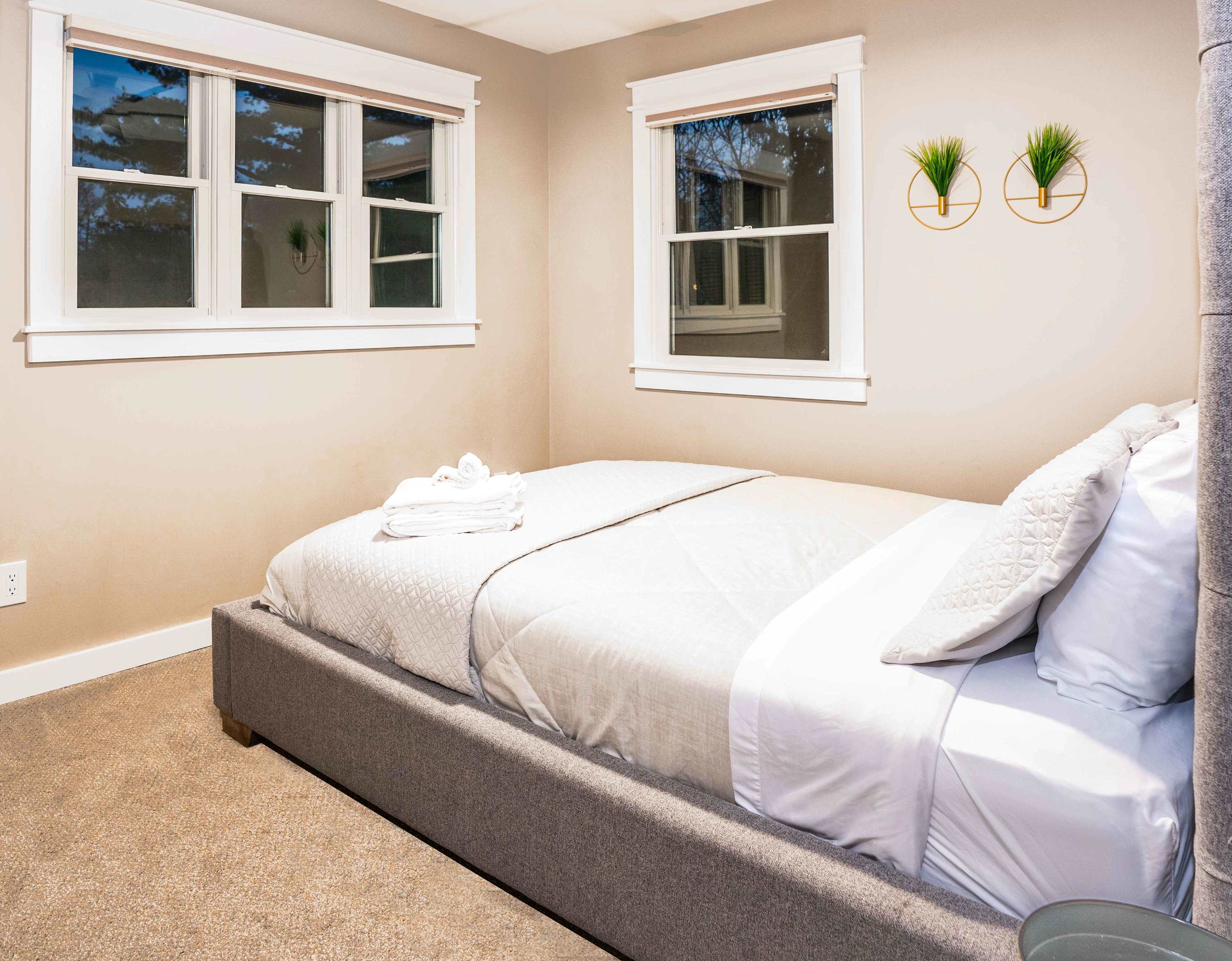 Our 4 bedrooms, each with a cozy queen-sized bed, are designed with modern art-deco charm, offering a peaceful retreat after a full day. And with two full bathrooms—one featuring a walk-in shower and the other with a tub—you’ll have all the comfort you need during your stay.