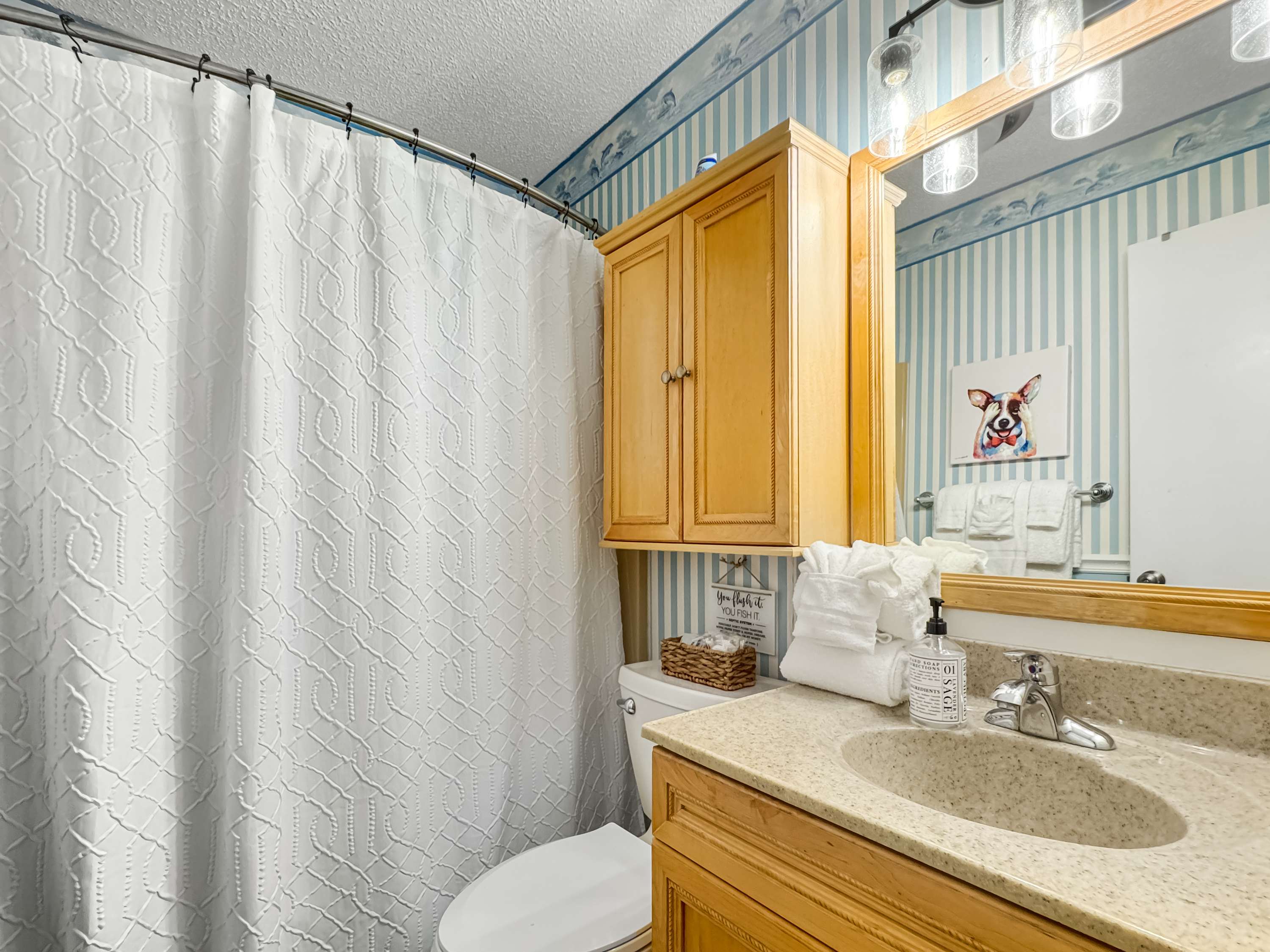 The home also includes 2 full guest bathrooms, each with a single vanity and shower/tub combo.