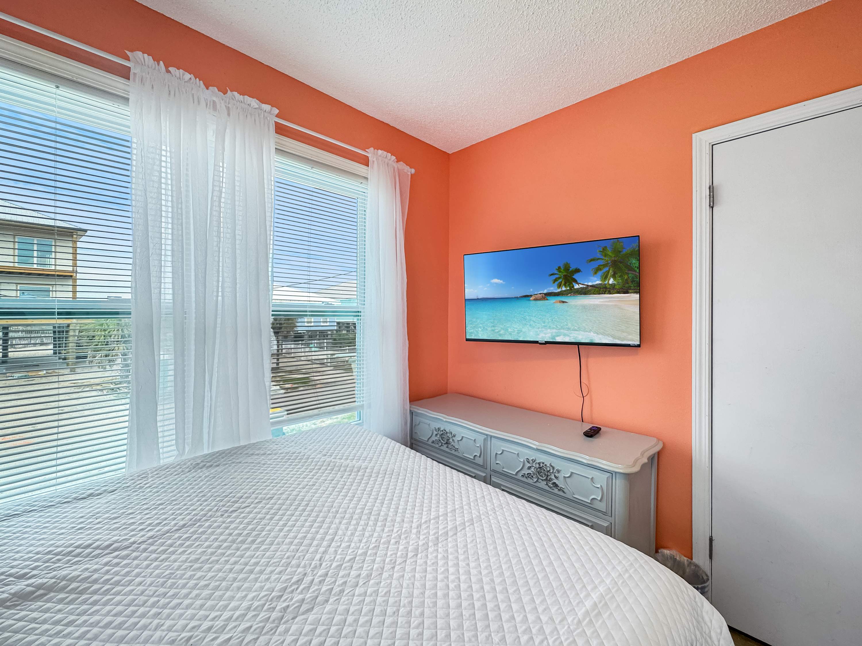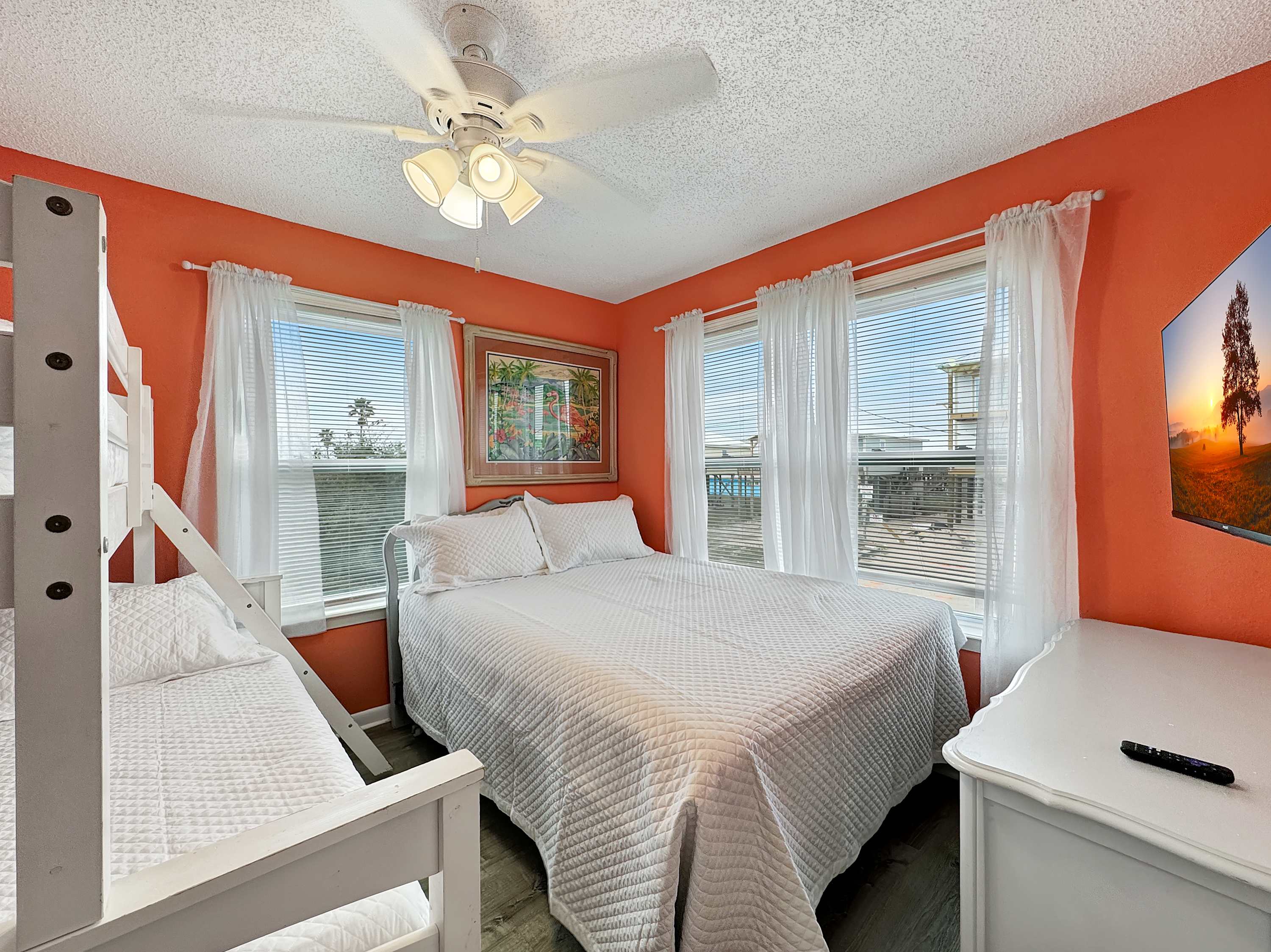 Bedroom #2 includes a queen size bed, a twin-over-full bunk bed, and a smart TV.