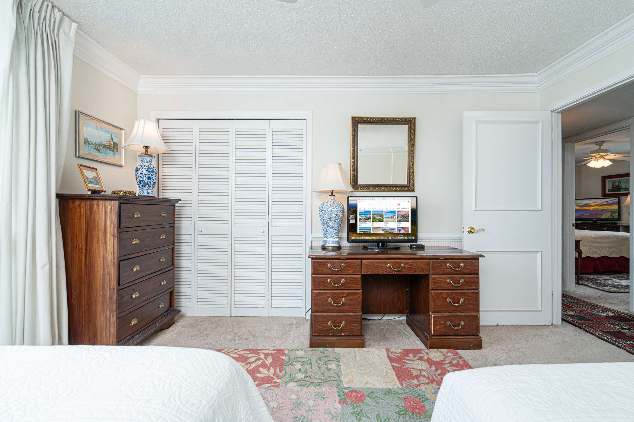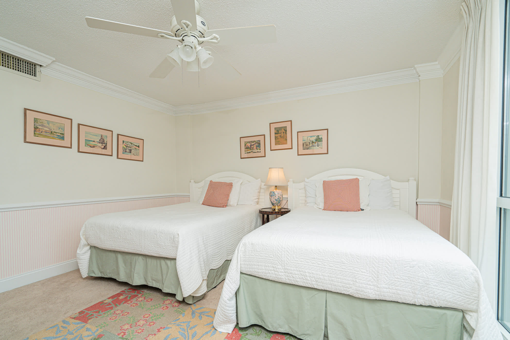 Second Bedroom: Gulf views, 2 Full size beds, Cable Television, ceiling fan, desk and chair