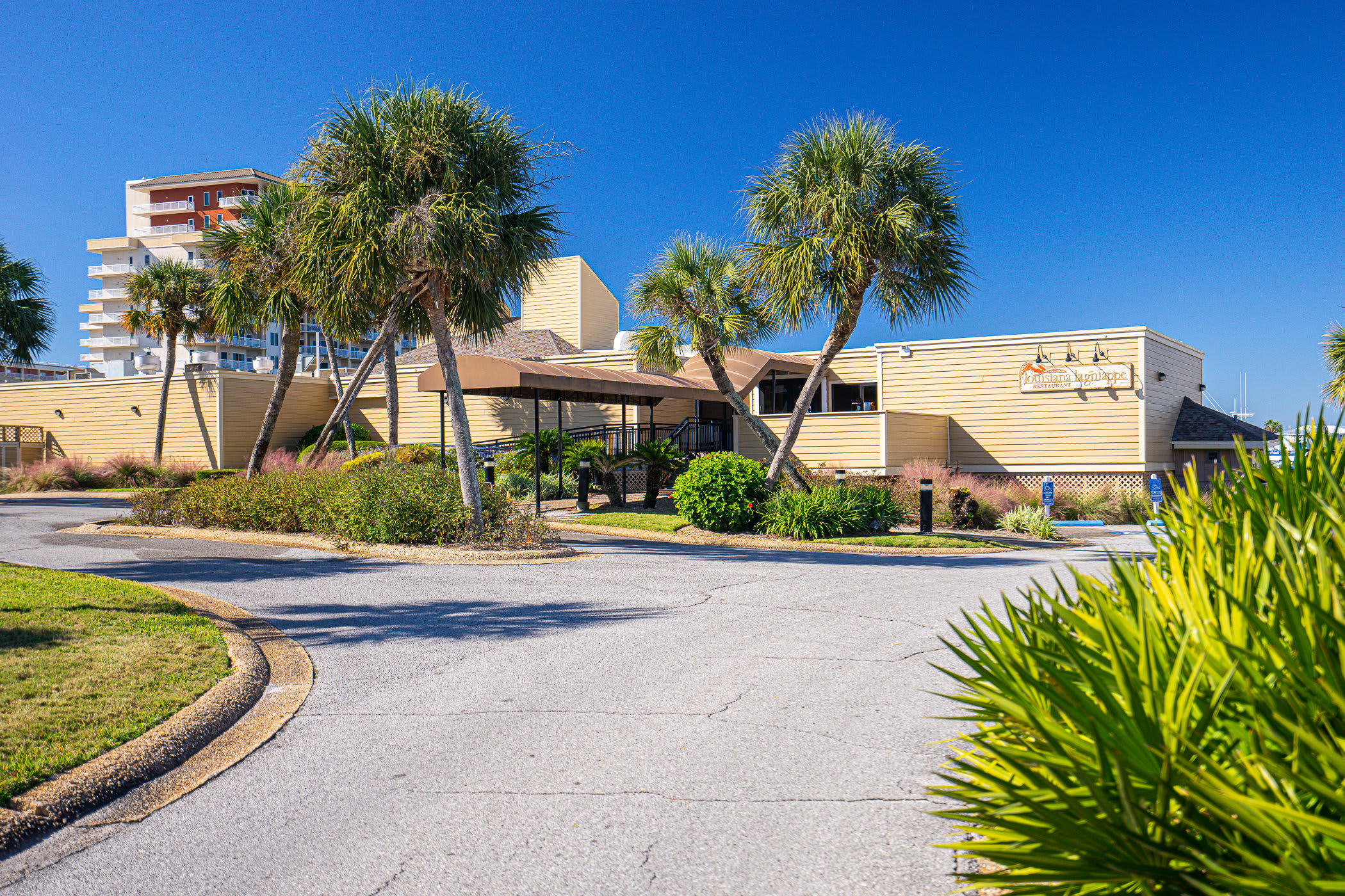 Enjoy quick bites at the beachfront bar and grill: The Sand Flea or indulge in a more upscale experience at Louisiana Lagniappe—both right within Sandpiper Cove.