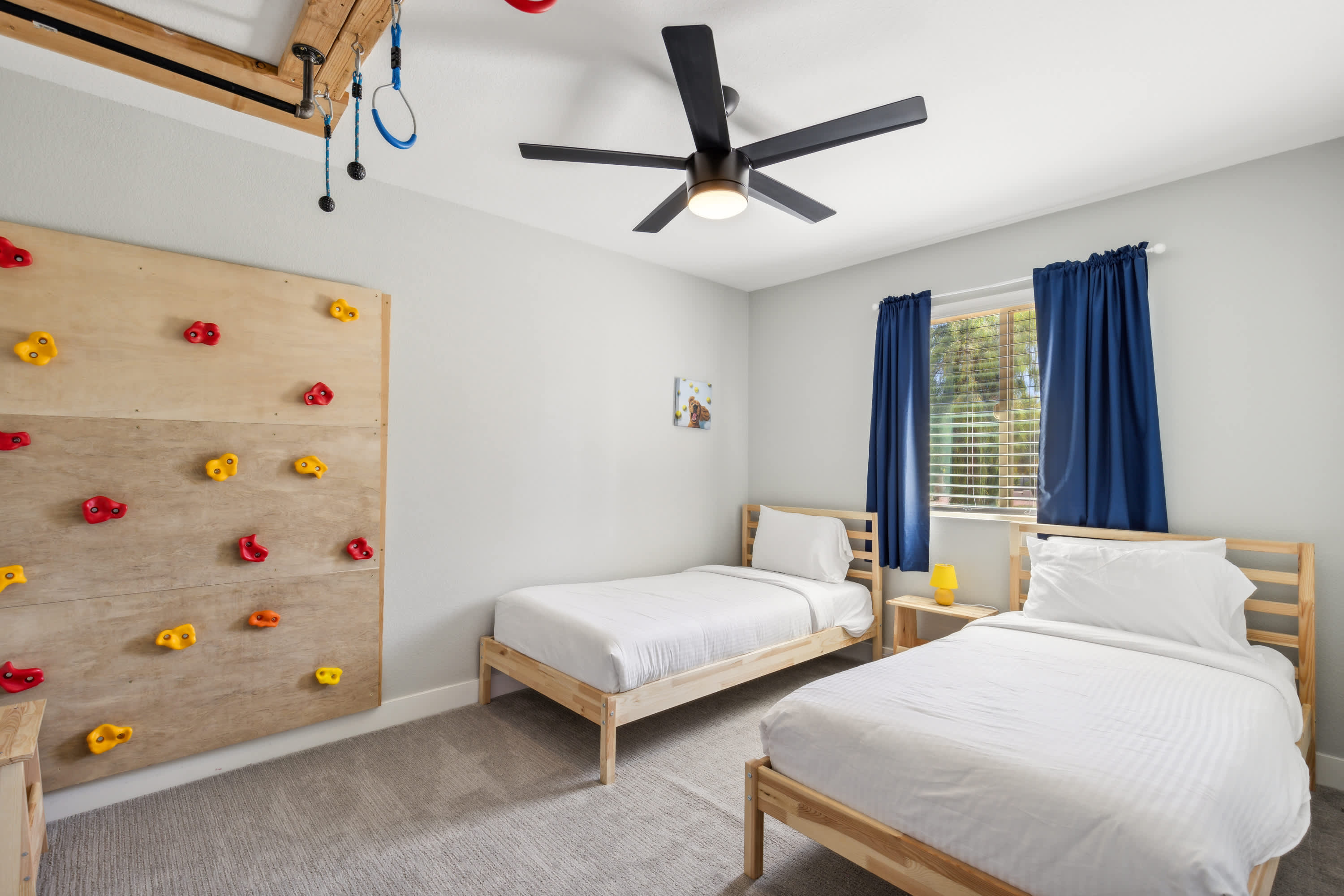 Bedroom #5 includes 2 twin size beds and a rock wall.