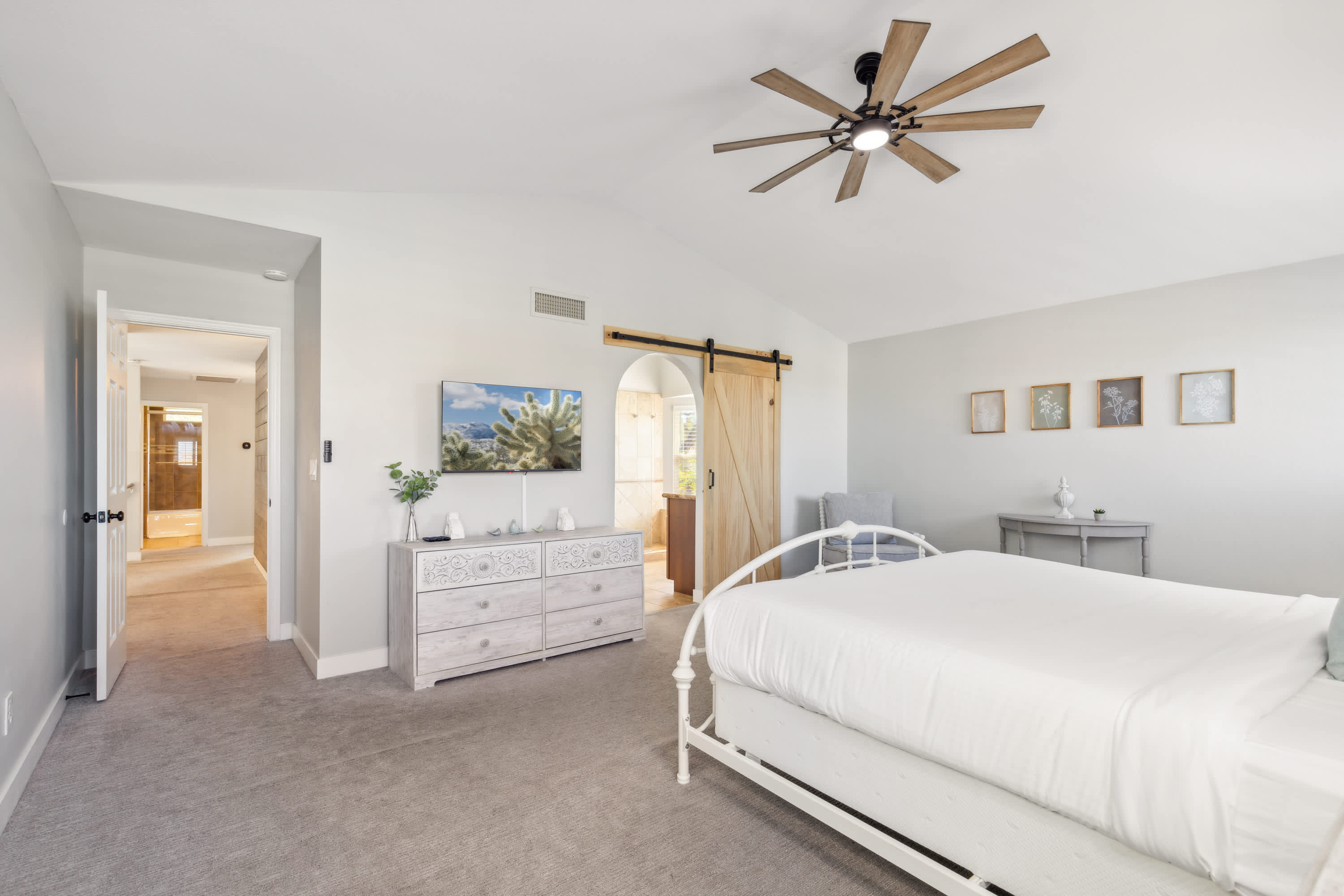 Bedroom #3 includes a queen size bed and smart TV.