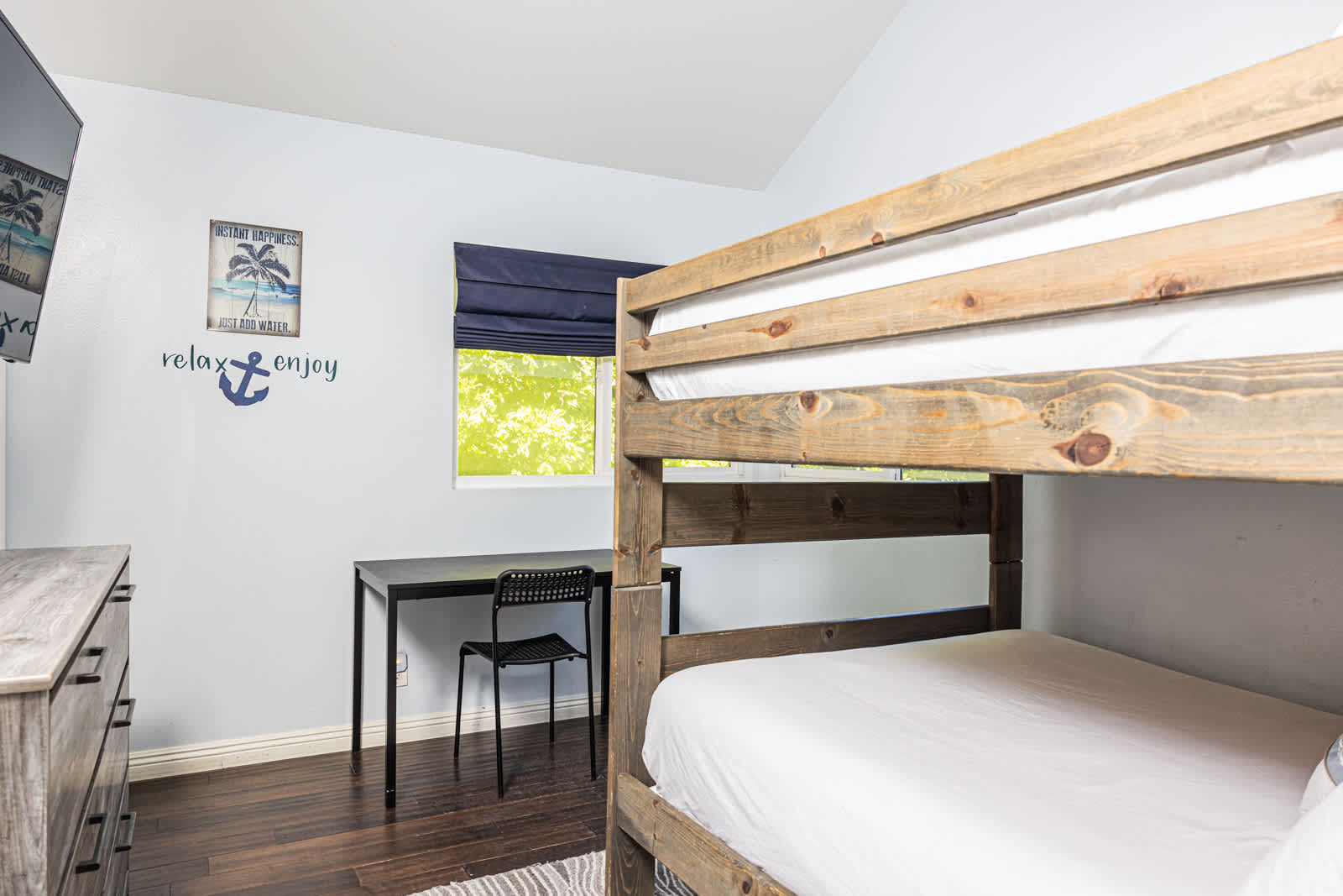 Bedroom #3 includes a full-over-full bunk bed and TV.