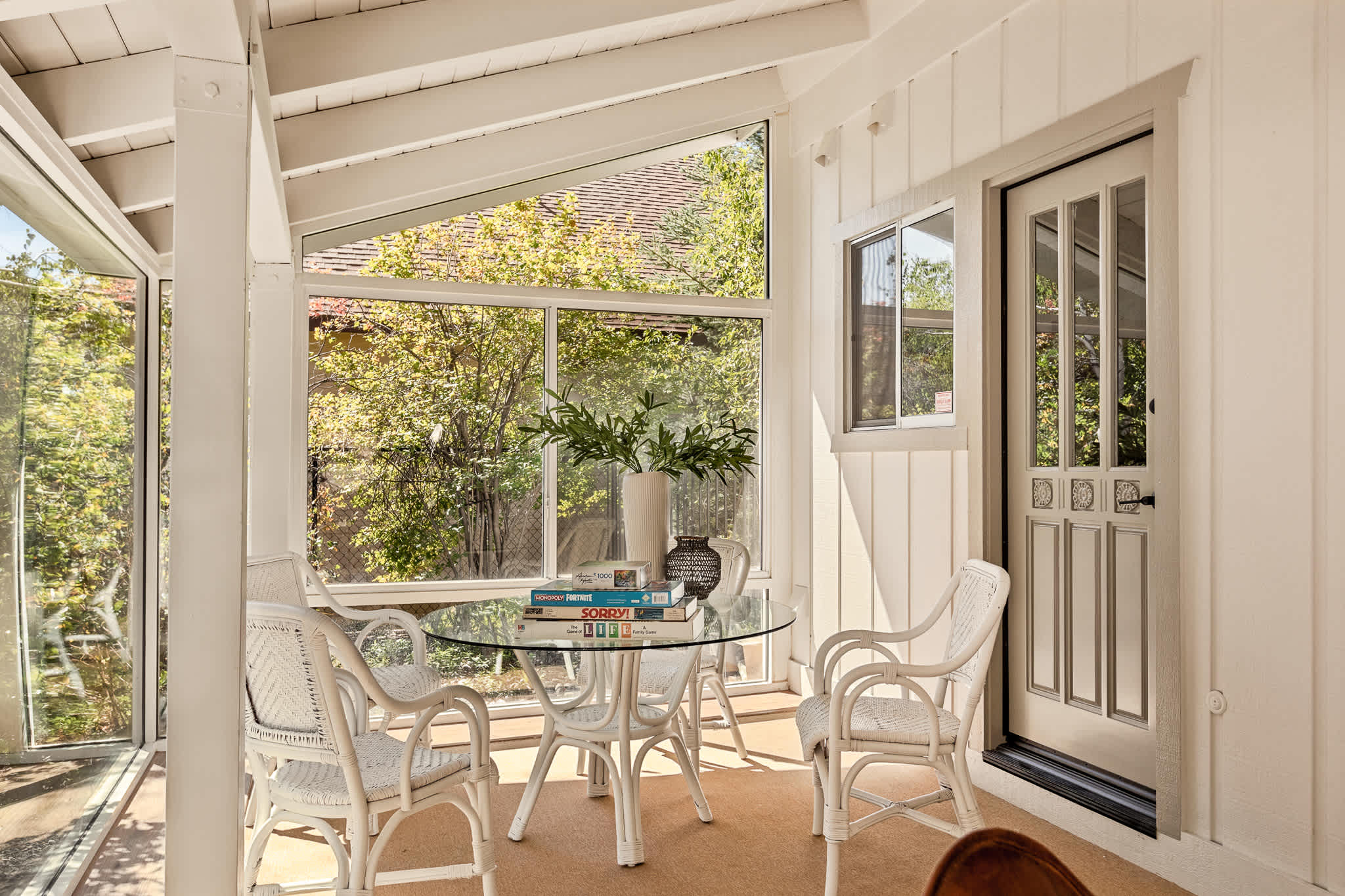 Finally, saving the best for last, there is a heavenly Sunroom -- all glass and facing the National Park -- complete with a mini-library, board games and blankets. This room is instant relaxation, surrounded by forest and wildlife, where you can enjoy the changing leaf colors, the pure white snow or the blooms of spring, all while sipping your morning coffee or evening wine. If you're lucky you may even see a deer, coyote or bear wander by as you doze off for a nap...