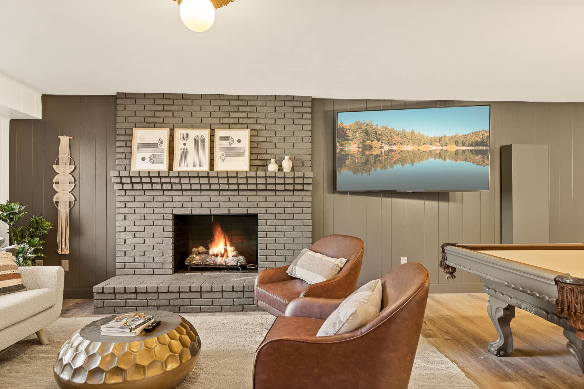 Situated directly in front of a National Park with miles of hiking trails, just minutes from the lake and a short drive from the ski slopes, this house truly has it all. The first floor offers an open-design featuring a stunning gourmet chef's kitchen with a massive marble island, Viking appliances and everything necessary to cook that big family meal. There is also a bright living room with fireplace, a massive smart tv and multiple seating areas -- including a dining table just off the kitchen. The first floor is also where you will find the 1st of the two primary suites, complete with a spa-like en-suite bathroom (soaking tub, dual sinks, gorgeous shower), a laundry room with all the bells and whistles and a luxurious guest bathroom. Up a flight of stairs on the second floor is our 2nd primary bedroom that has a gorgeous view of the lake, a massive walk-in closet and it's own en-suite luxury bathroom, a 3rd bedroom with views of the mountains and a luxury queen bed, a playroom (with XBOX), an adorable kids bedroom with 3 full beds, and another luxury bathroom. In the lower level, there is another full bathroom and a massive gameroom for adults, complete with Wet bar, pool table, massive smart TV and a fireplace -- the perfect place to unwind after a long day at the lake, on the slopes or post-hike. There is also AC throughout the house, a brand new security system, state-of-the-art WIFI (perfect for remote work), 5 Smart TVs (set up for easy streaming of your favorite shows) and endless details that will make this feel like your own home.