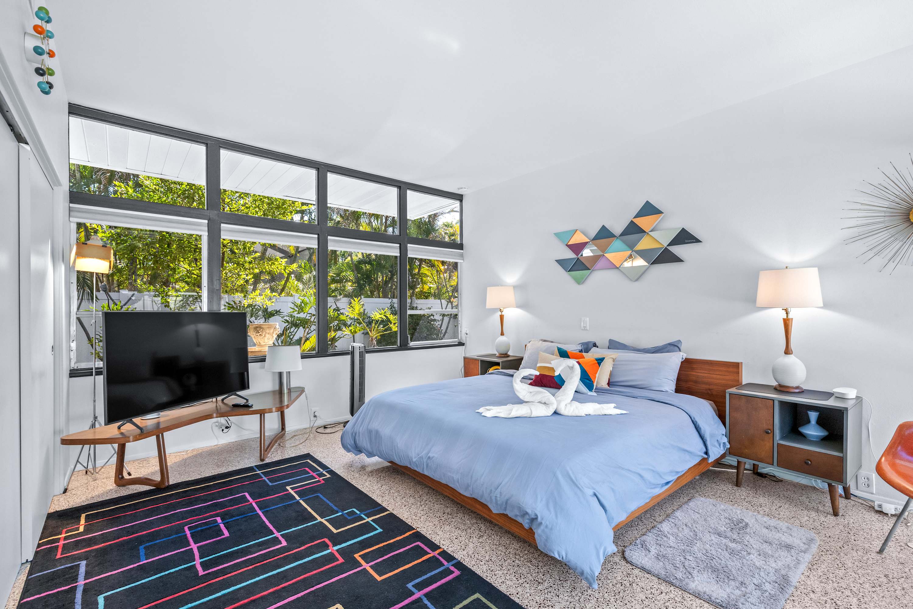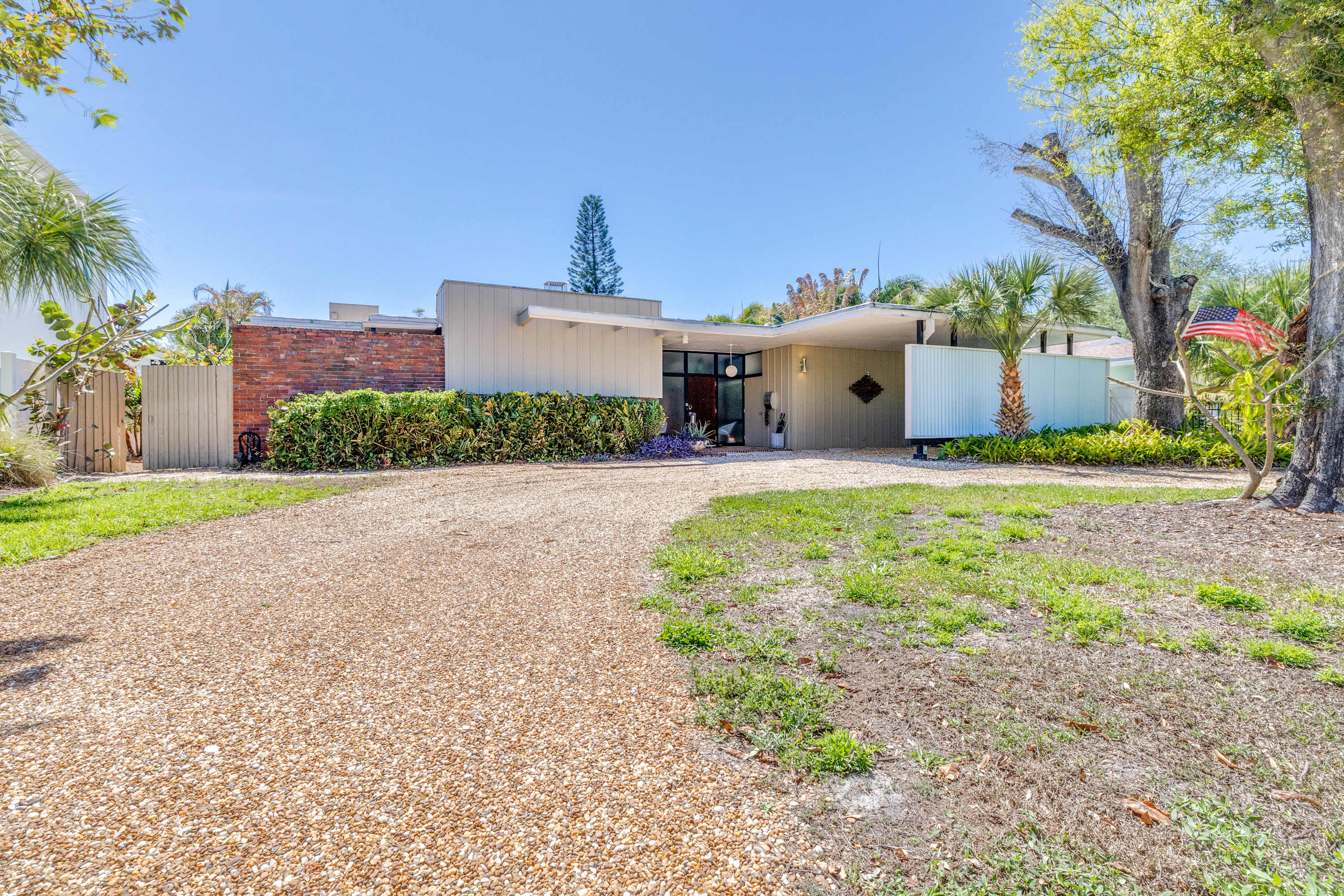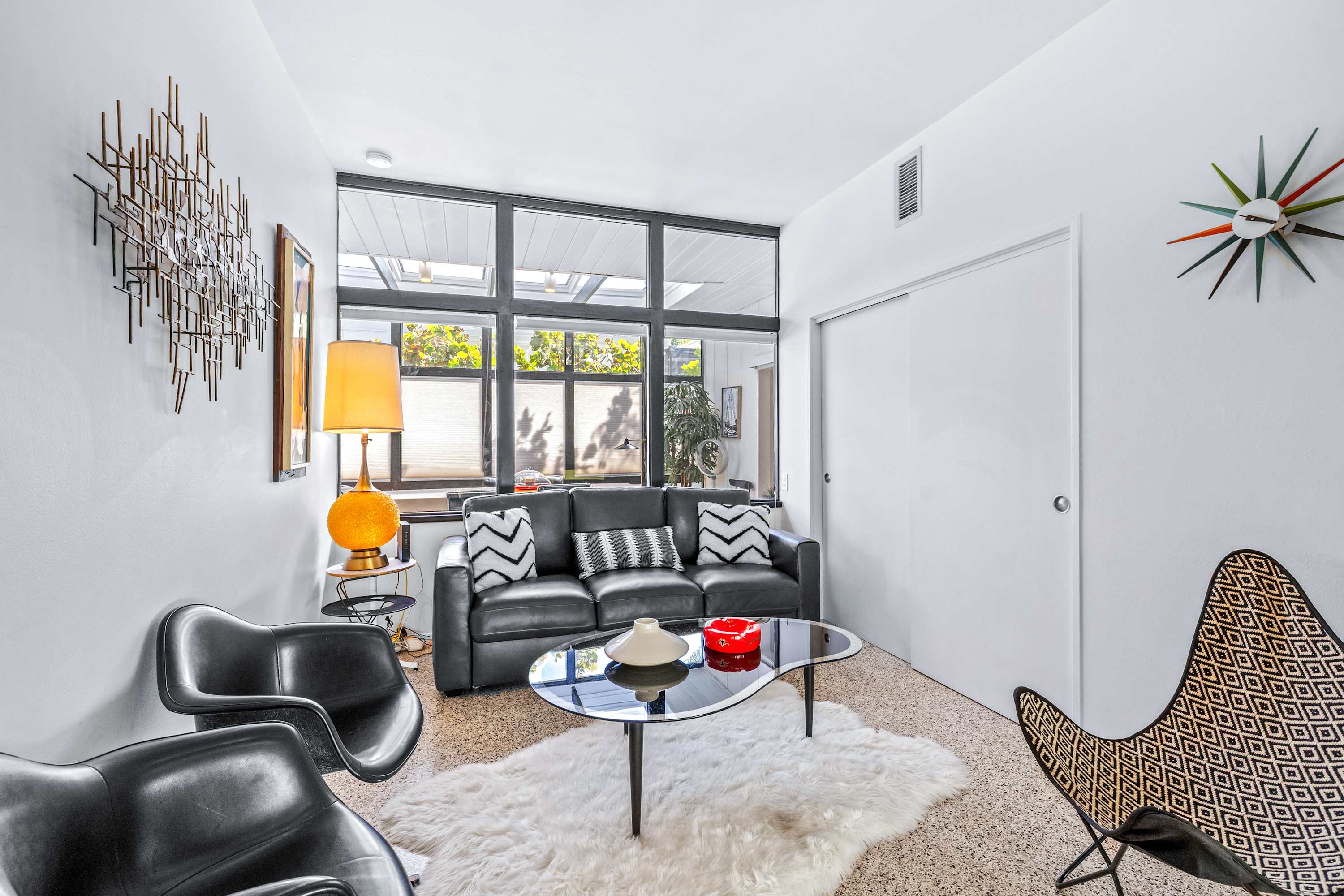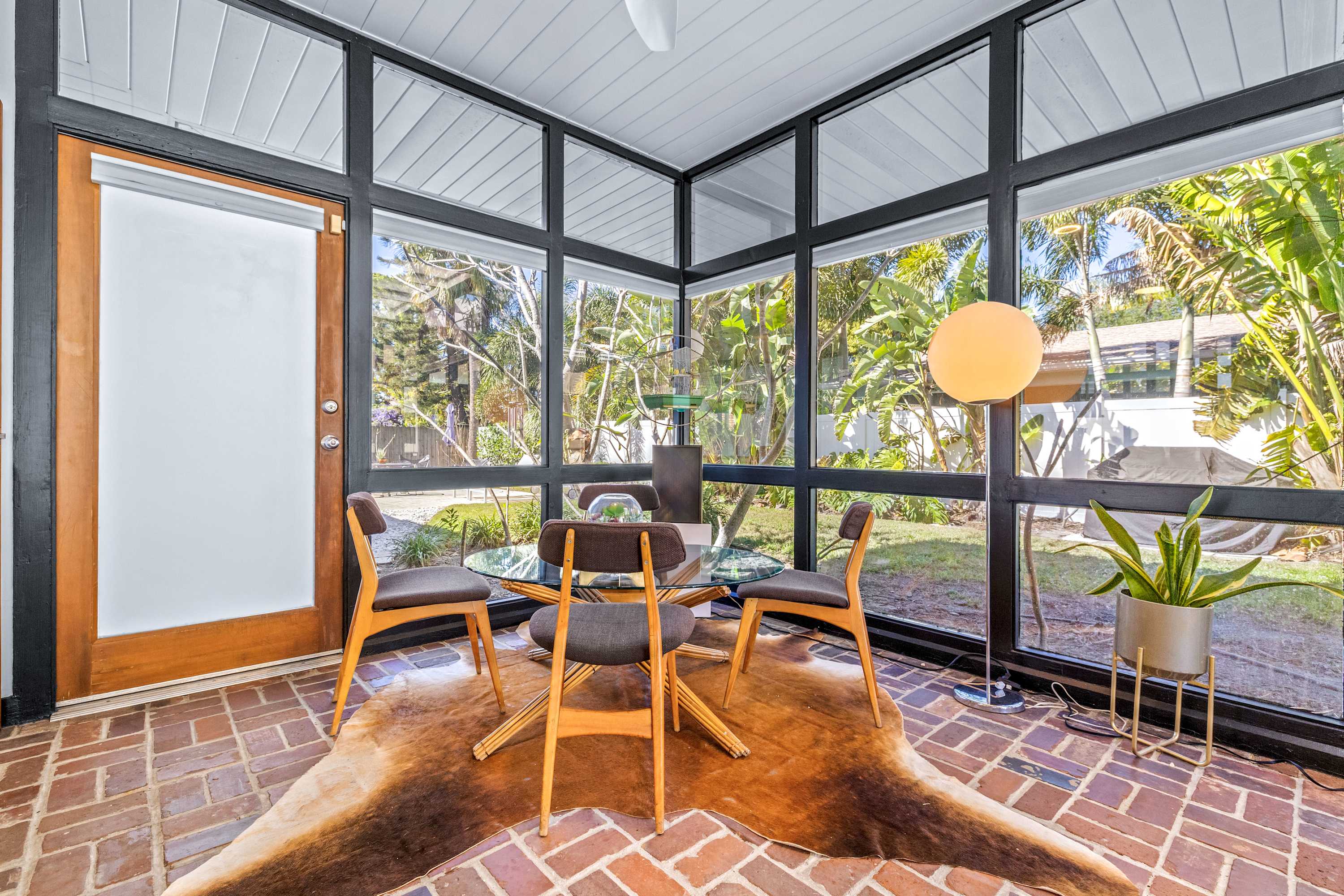 Boasting an authentic mid-century modern design, the home is sure to captivate with its one-of-a-kind features. Enjoy tranquil views from the floor to ceiling windows throughout the home, which also illuminate the space with beautiful natural light. The interior has been thoughtfully designed with unique lighting fixtures, vintage furnishings, and vibrant art that provides warmth, visual interest, and character. Stunning textiles add a touch of luxury and comfort to each room. Outside, the fenced-in yard offers a private space to entertain family and friends with a barbeque grill and furnished patio. All this is just 10-15 minutes from Tampa’s most popular attractions, and 40-45 minutes from St. Petersburg beaches and destinations.