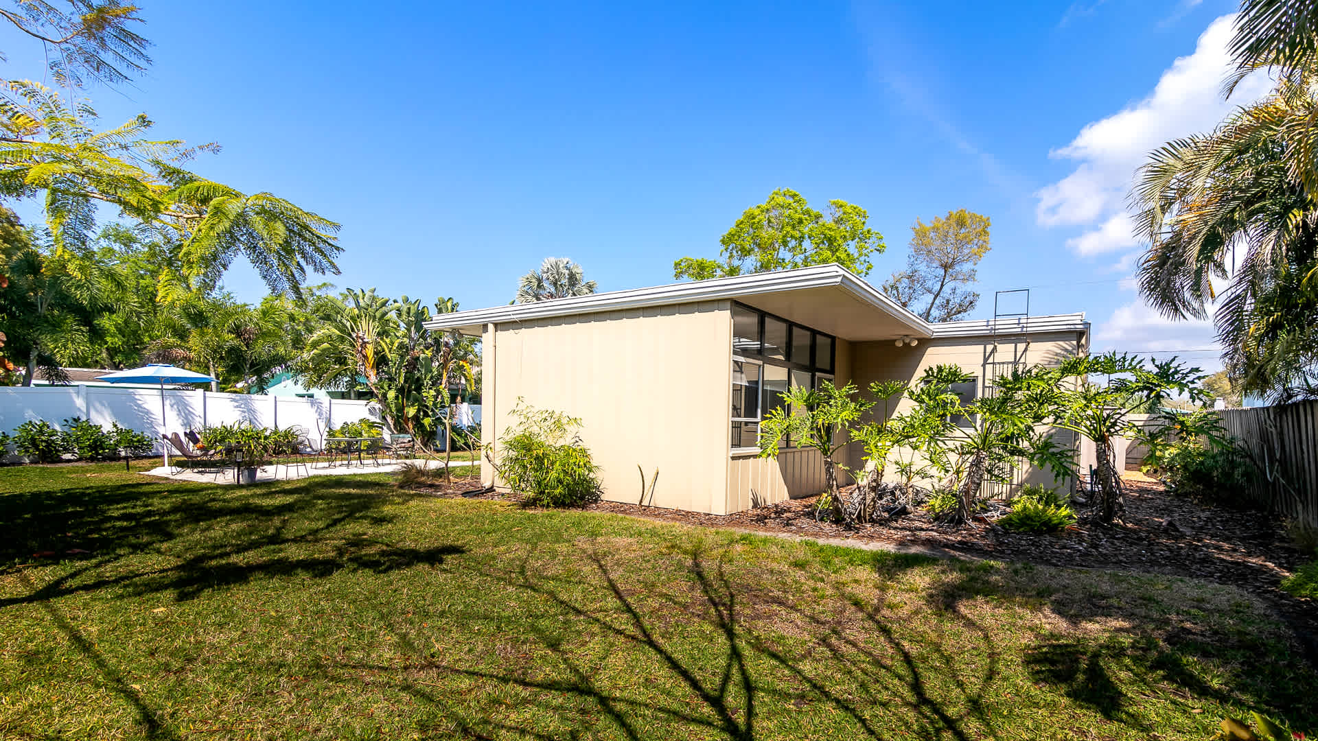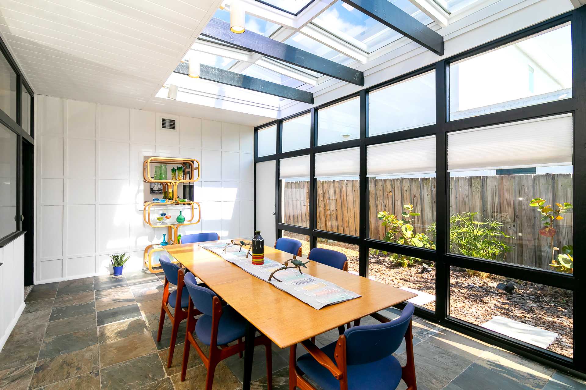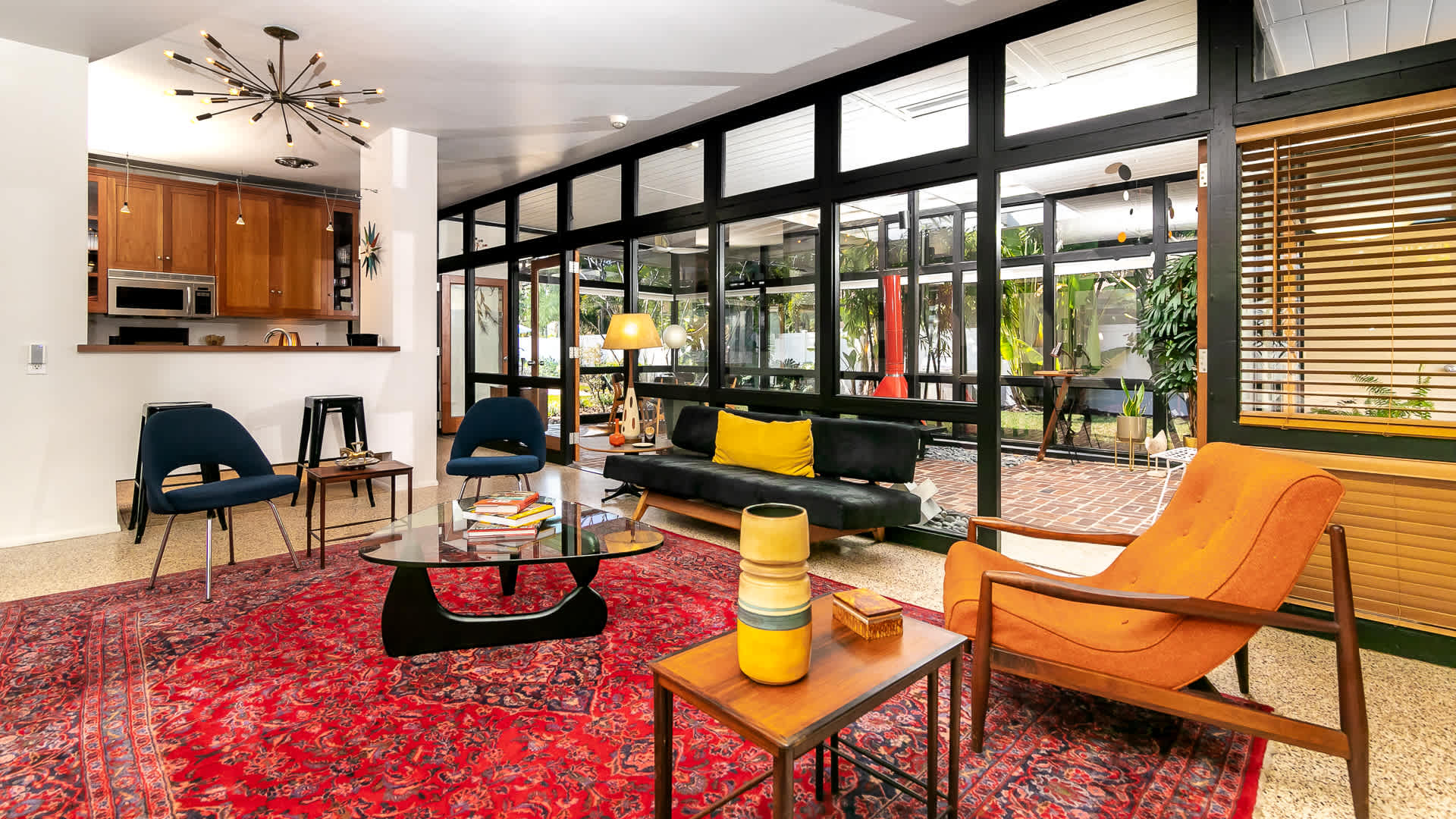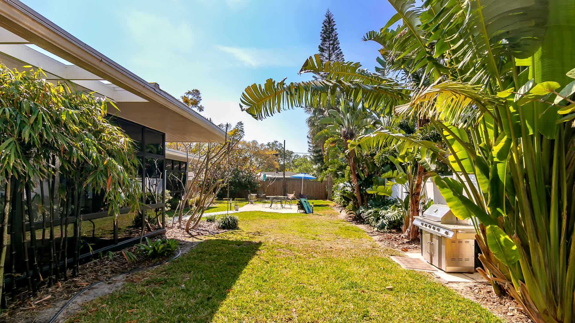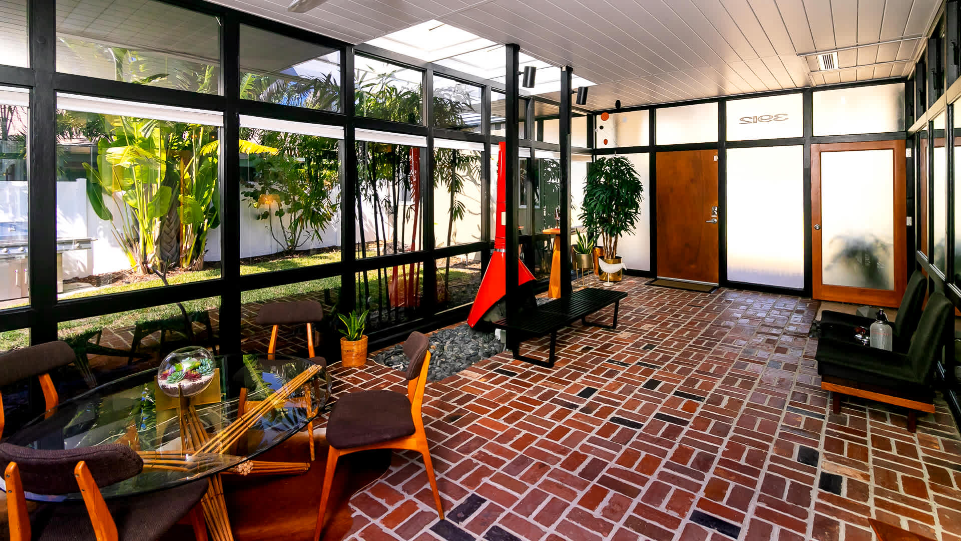 Boasting an authentic mid-century modern design, the home is sure to captivate with its one-of-a-kind features. Enjoy tranquil views from the floor to ceiling windows throughout the home, which also illuminate the space with beautiful natural light. The interior has been thoughtfully designed with unique lighting fixtures, vintage furnishings, and vibrant art that provides warmth, visual interest, and character. Stunning textiles add a touch of luxury and comfort to each room. Outside, the fenced-in yard offers a private space to entertain family and friends with a barbeque grill and furnished patio. All this is just 10-15 minutes from Tampa’s most popular attractions, and 40-45 minutes from St. Petersburg beaches and destinations.