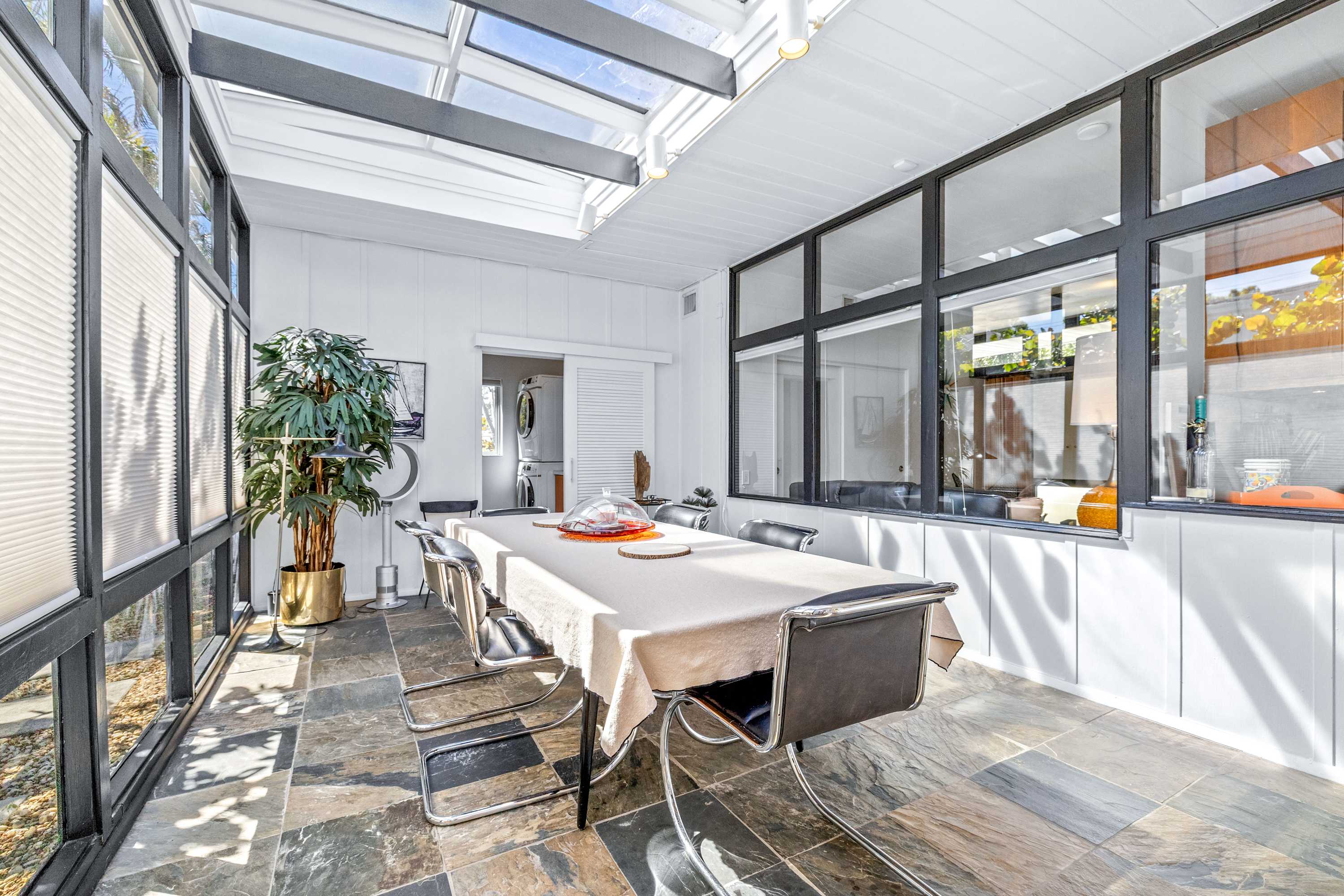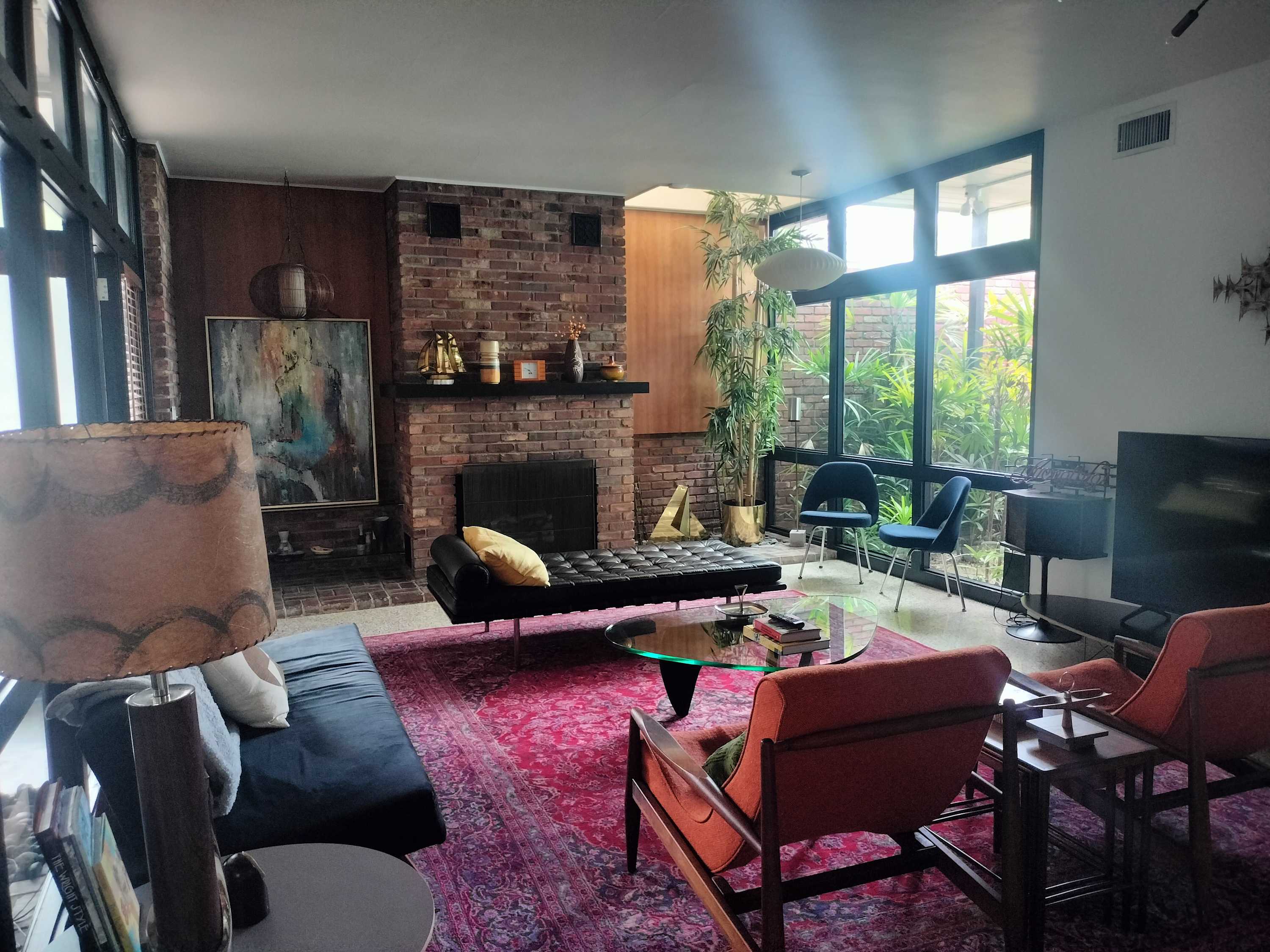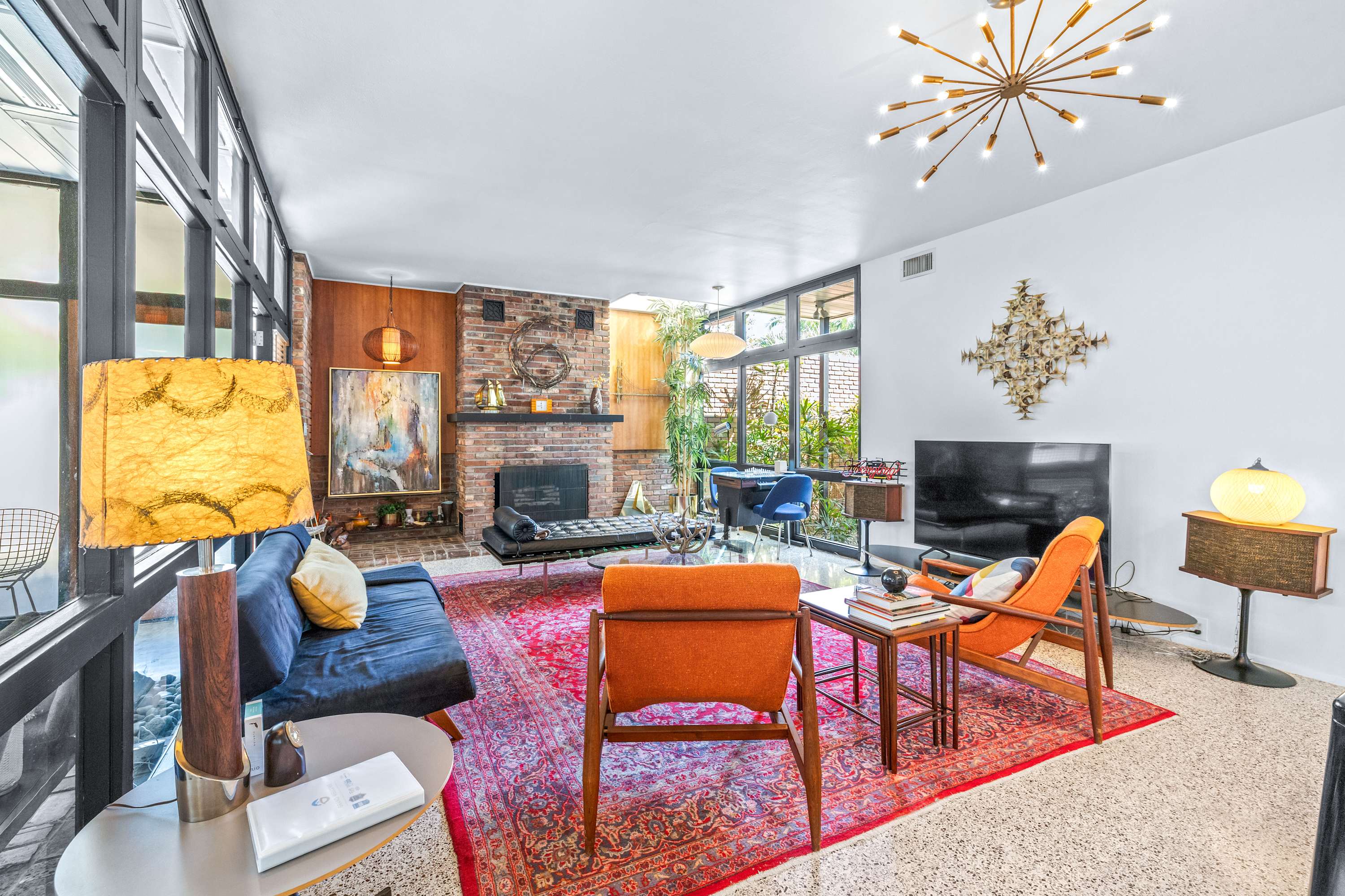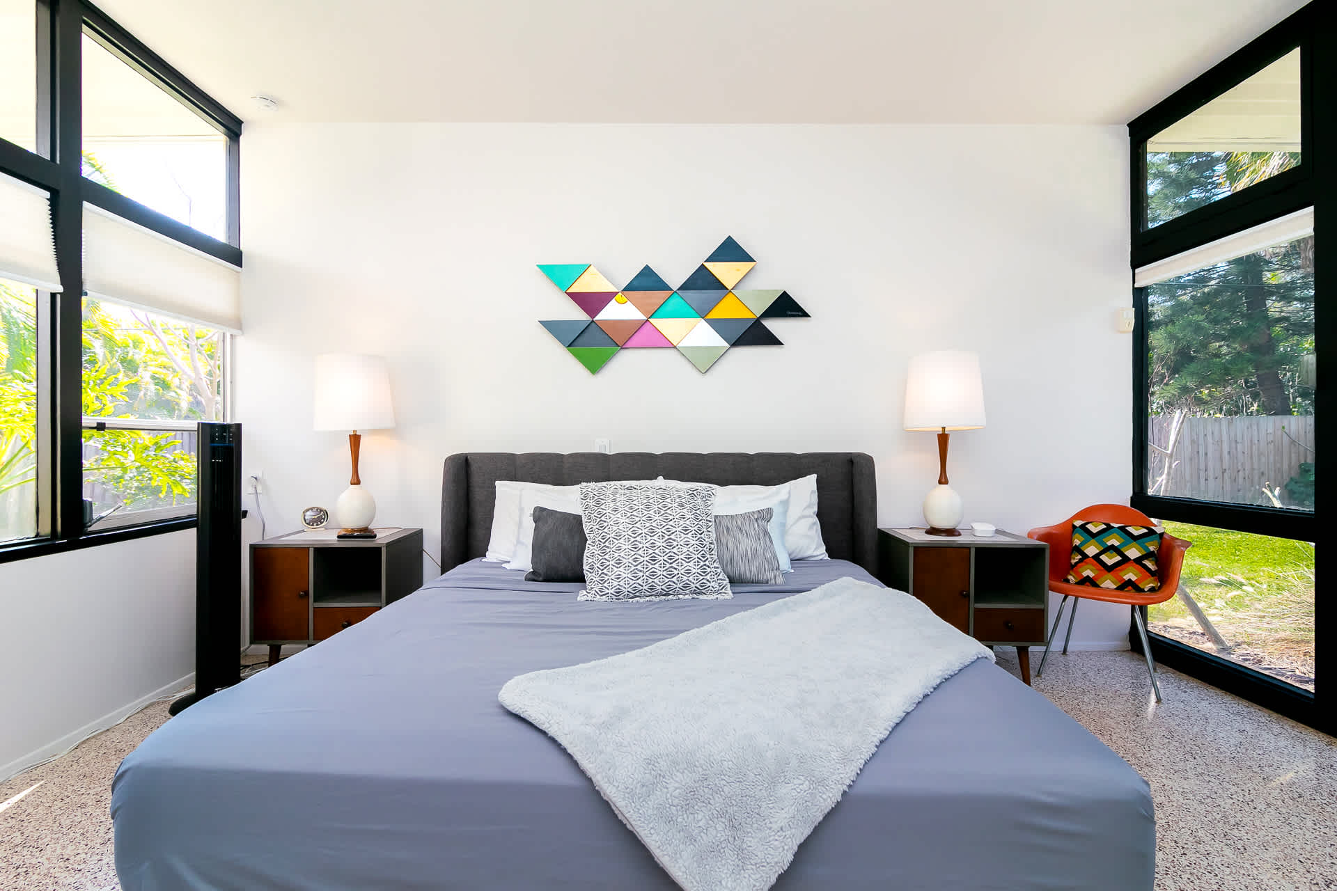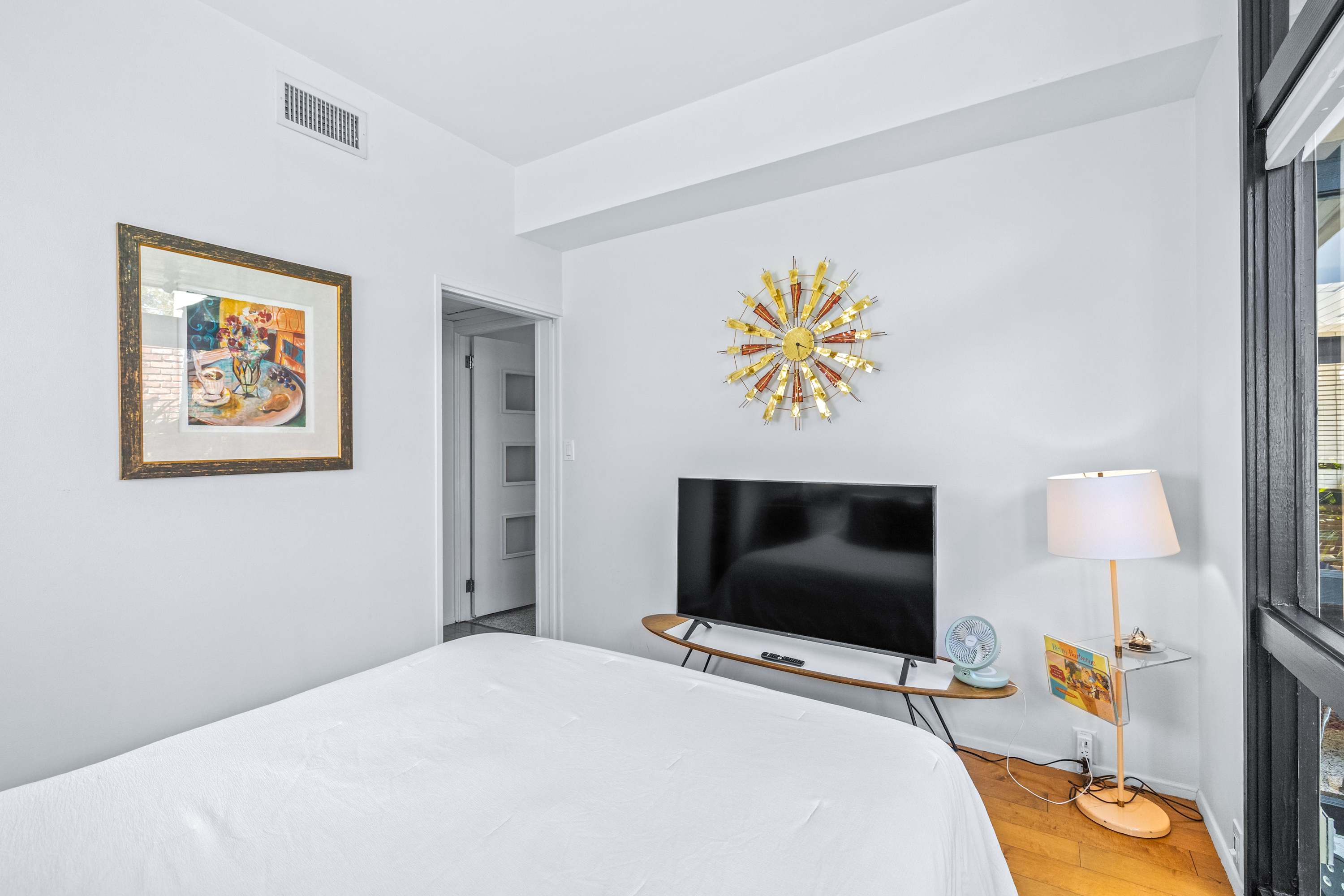 Boasting an authentic mid-century modern design, the home is sure to captivate with its one-of-a-kind features. Enjoy tranquil views from the floor to ceiling windows throughout the home, which also illuminate the space with beautiful natural light. The interior has been thoughtfully designed with unique lighting fixtures, vintage furnishings, and vibrant art that provides warmth, visual interest, and character. Stunning textiles add a touch of luxury and comfort to each room. Outside, the fenced-in yard offers a private space to entertain family and friends with a barbeque grill and furnished patio. All this is just 10-15 minutes from Tampa’s most popular attractions, and 40-45 minutes from St. Petersburg beaches and destinations.