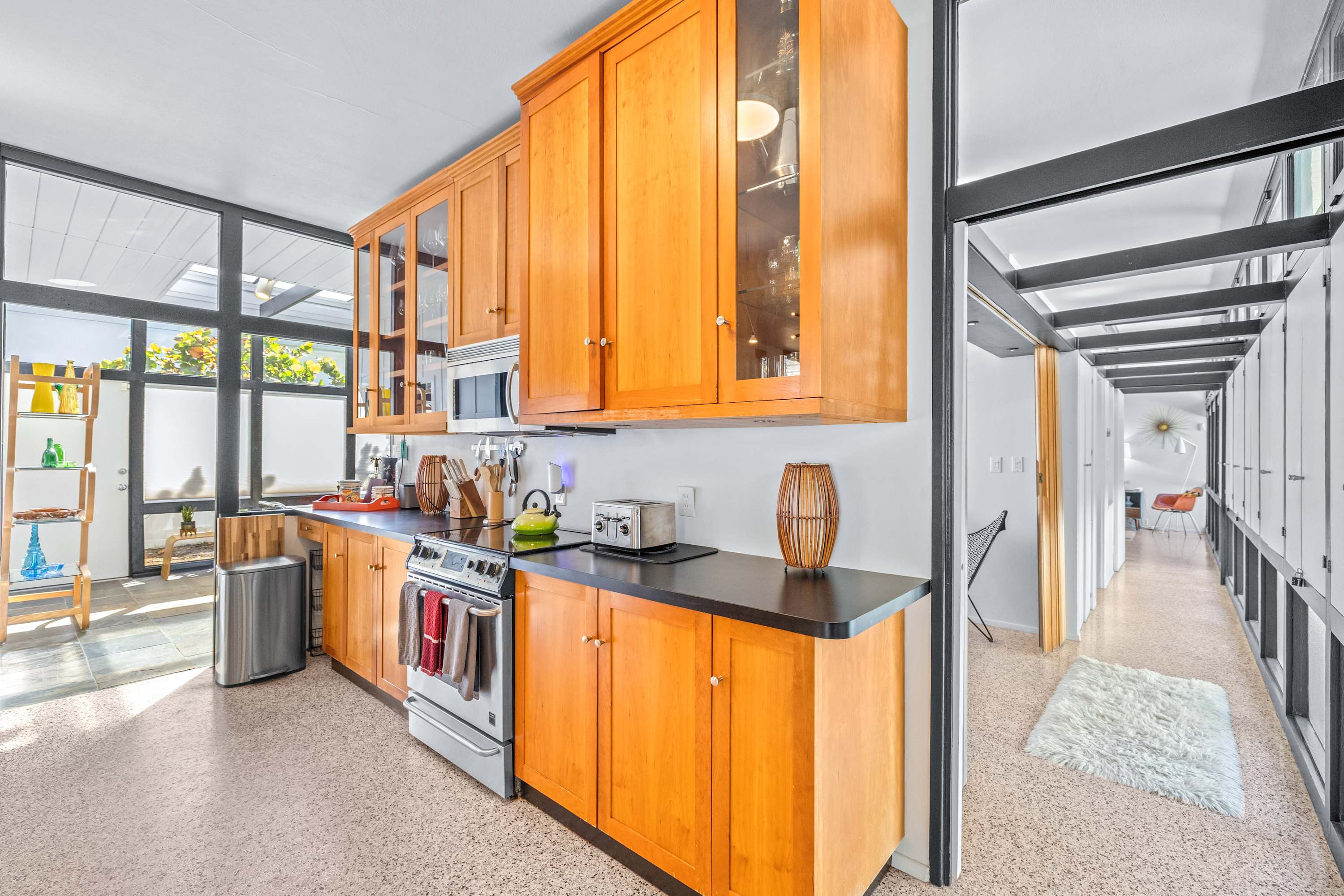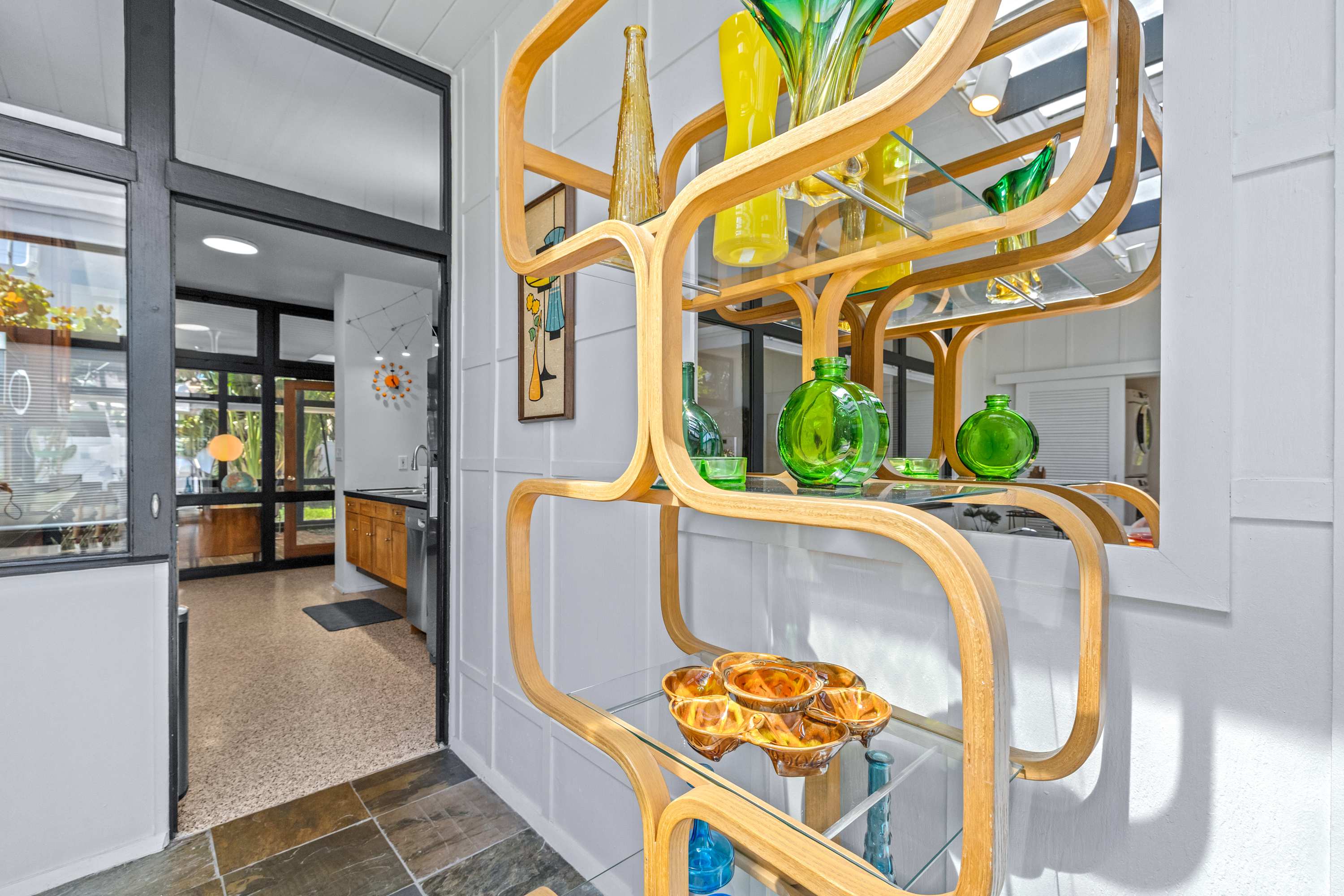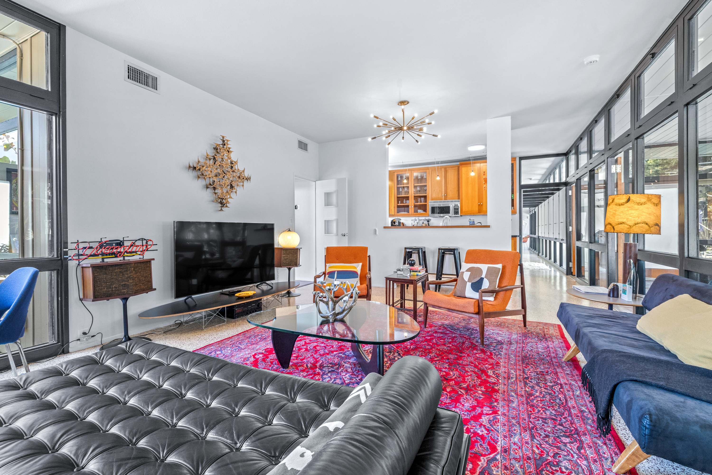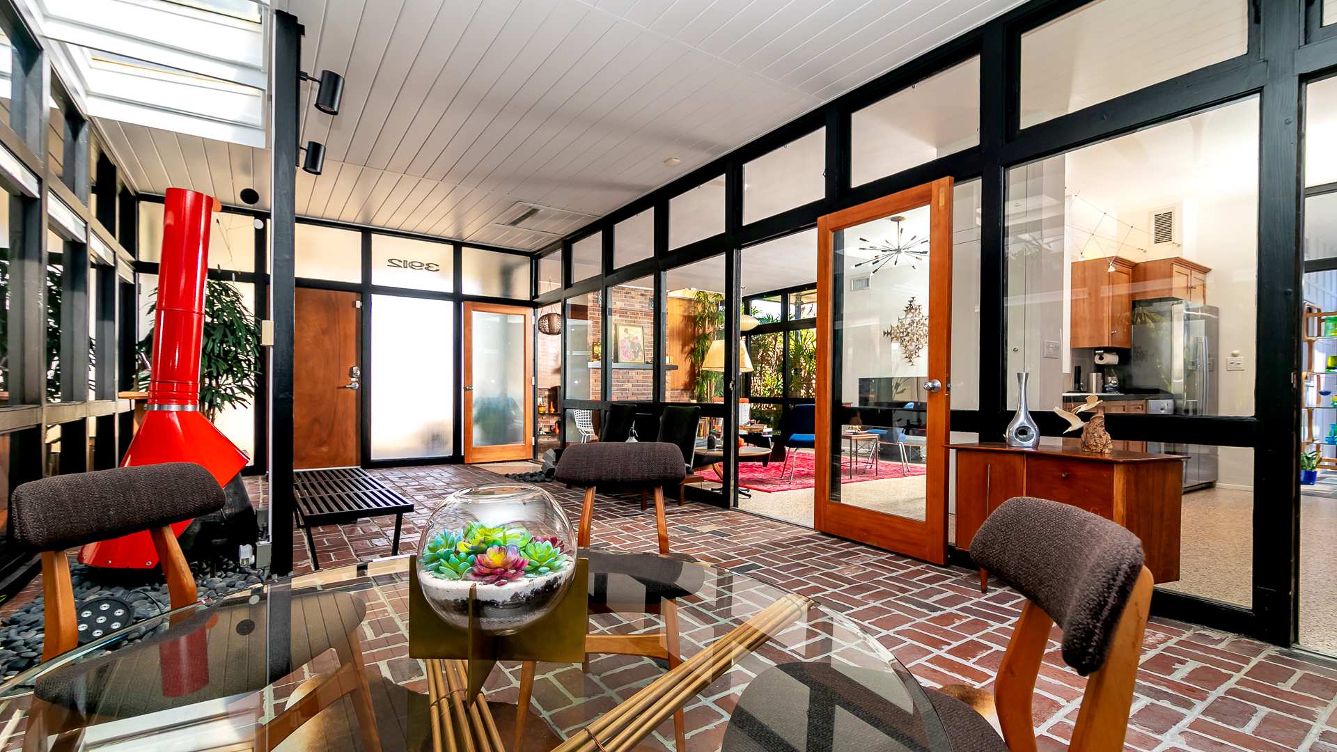 Boasting an authentic mid-century modern design, the home is sure to captivate with its one-of-a-kind features. Enjoy tranquil views from the floor to ceiling windows throughout the home, which also illuminate the space with beautiful natural light. The interior has been thoughtfully designed with unique lighting fixtures, vintage furnishings, and vibrant art that provides warmth, visual interest, and character. Stunning textiles add a touch of luxury and comfort to each room. Outside, the fenced-in yard offers a private space to entertain family and friends with a barbeque grill and furnished patio. All this is just 10-15 minutes from Tampa’s most popular attractions, and 40-45 minutes from St. Petersburg beaches and destinations.