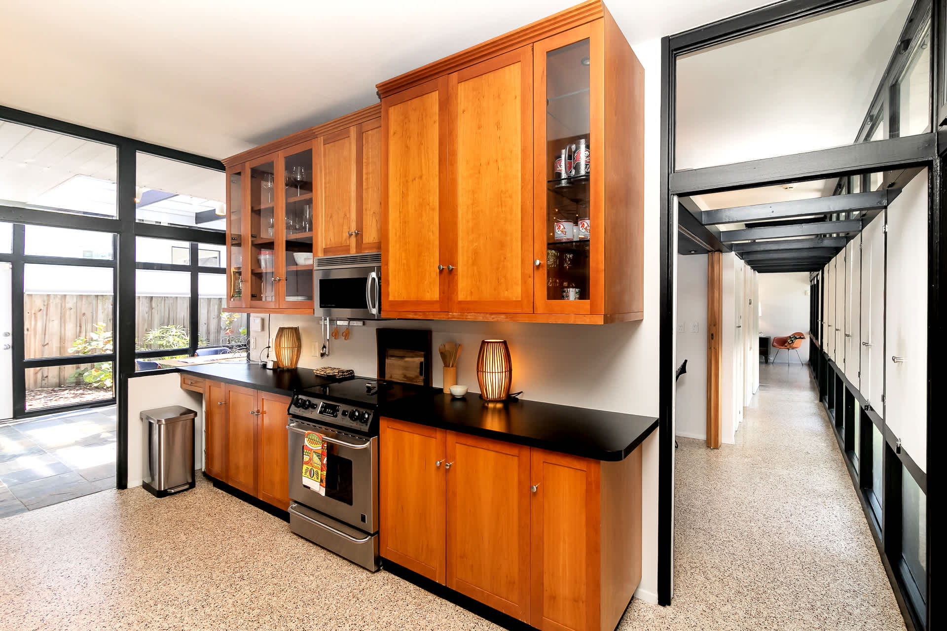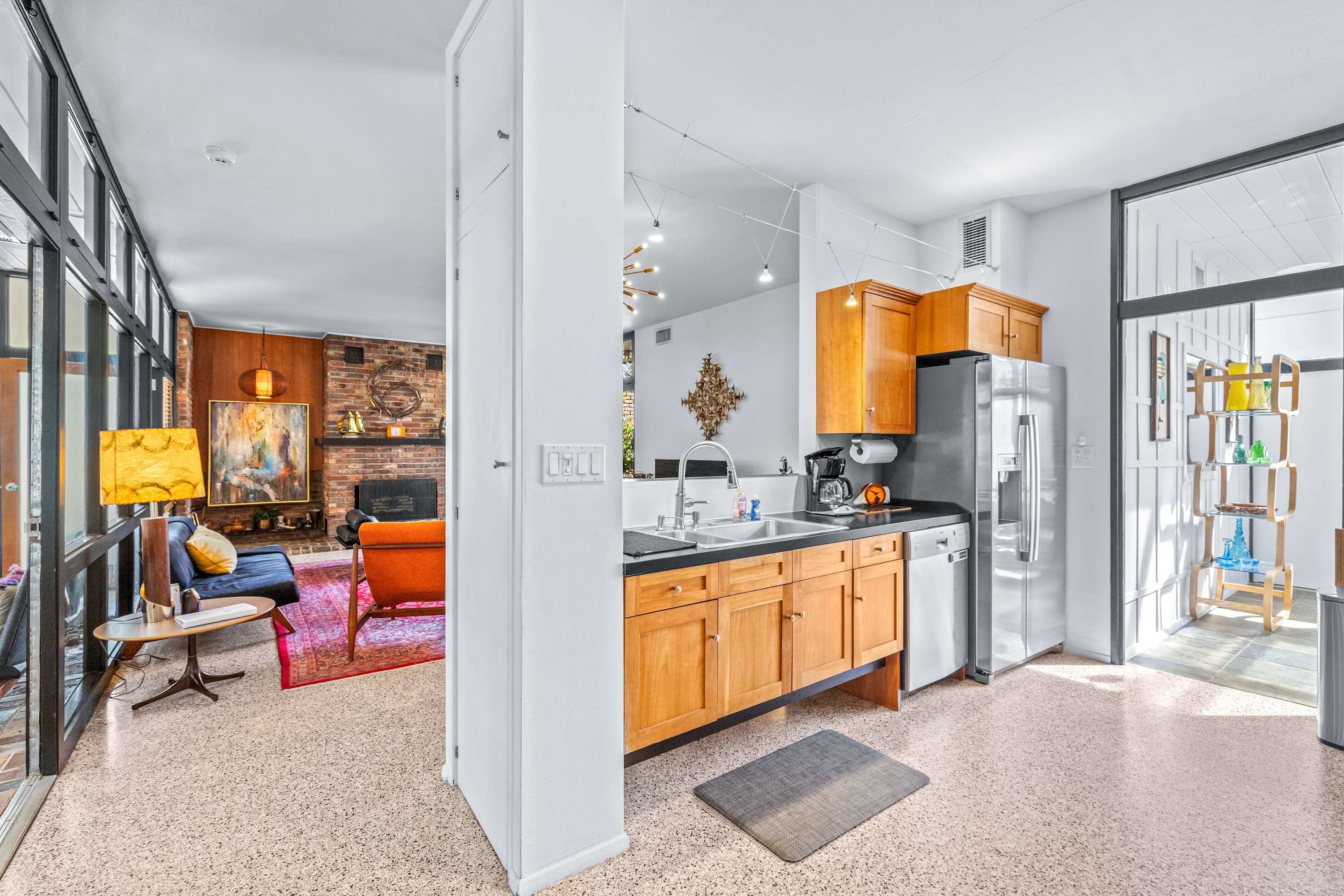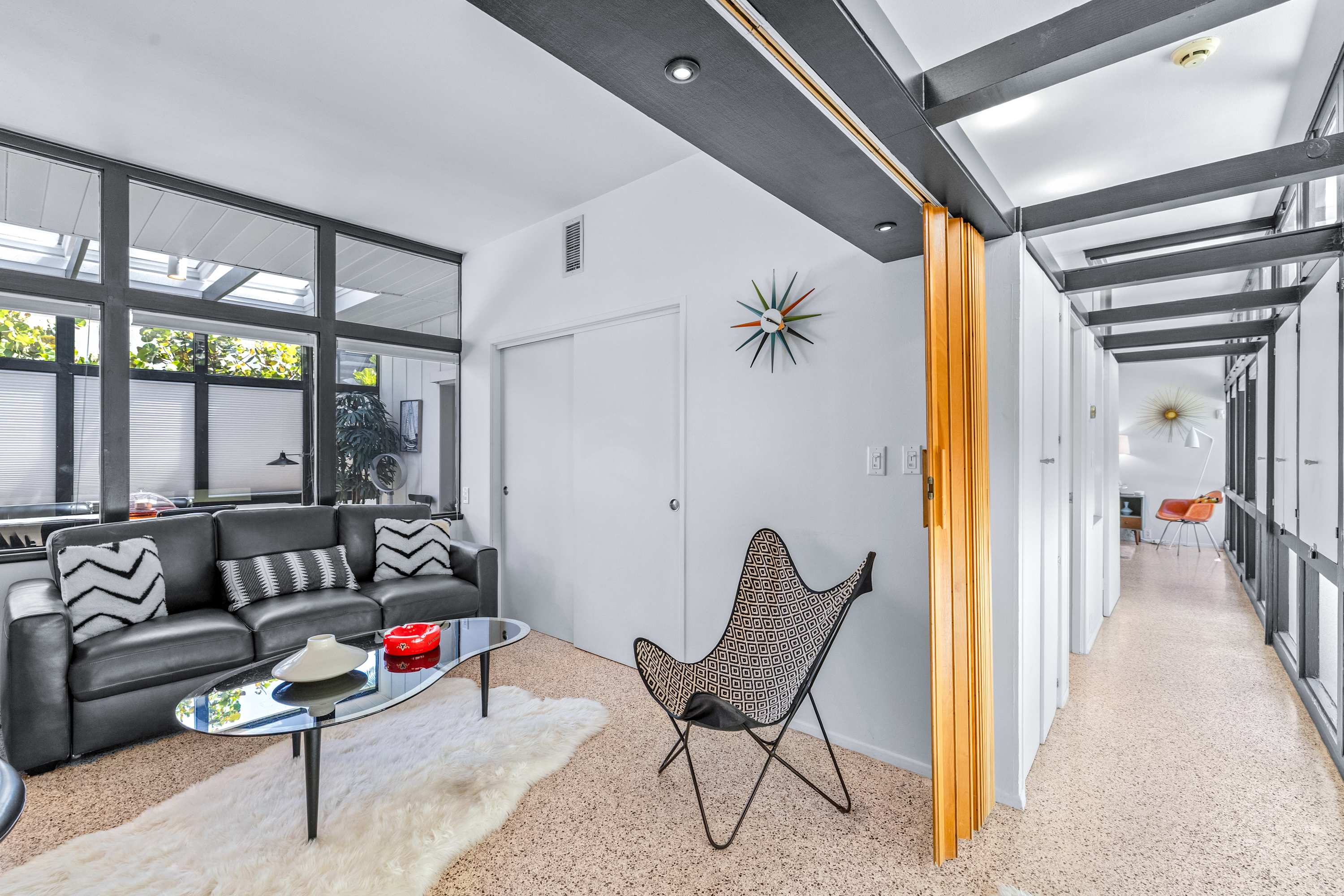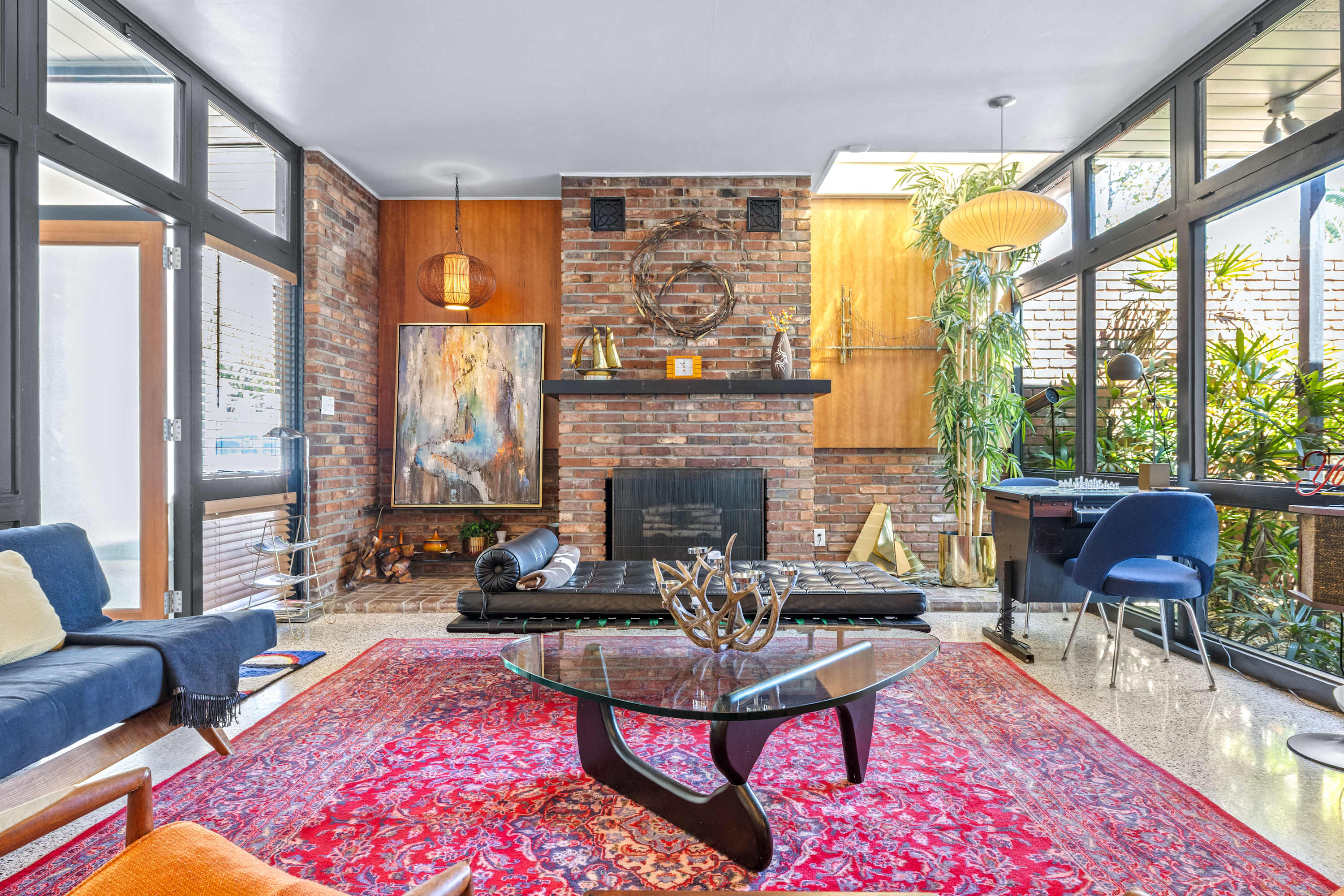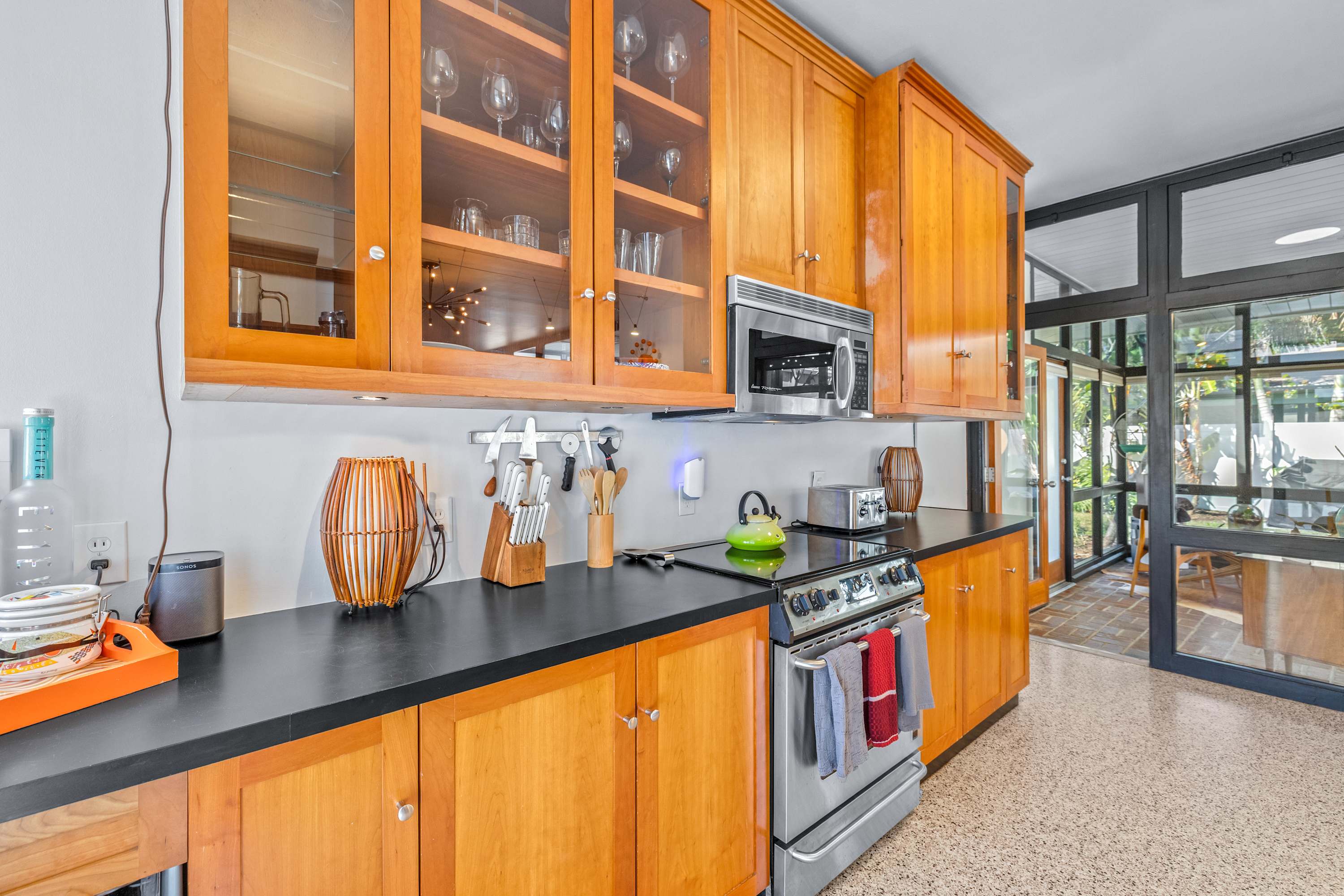 Boasting an authentic mid-century modern design, the home is sure to captivate with its one-of-a-kind features. Enjoy tranquil views from the floor to ceiling windows throughout the home, which also illuminate the space with beautiful natural light. The interior has been thoughtfully designed with unique lighting fixtures, vintage furnishings, and vibrant art that provides warmth, visual interest, and character. Stunning textiles add a touch of luxury and comfort to each room. Outside, the fenced-in yard offers a private space to entertain family and friends with a barbeque grill and furnished patio. All this is just 10-15 minutes from Tampa’s most popular attractions, and 40-45 minutes from St. Petersburg beaches and destinations.
