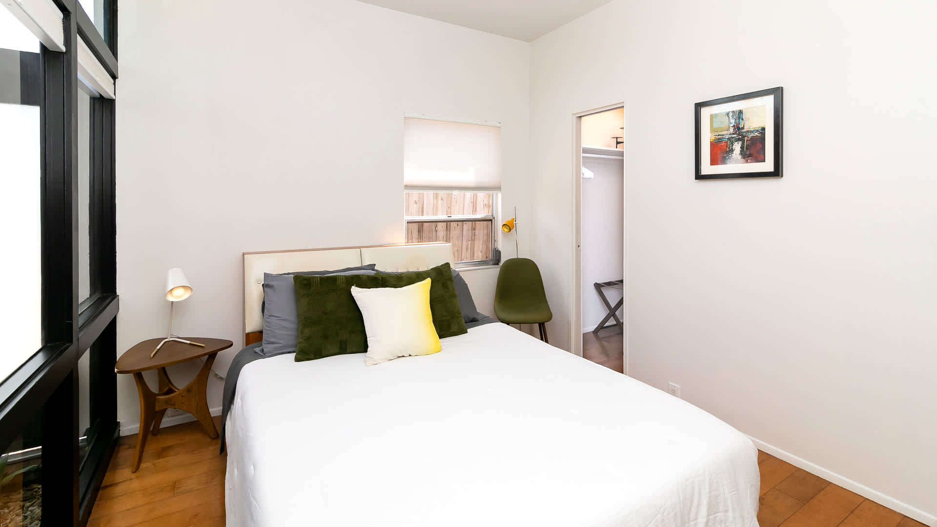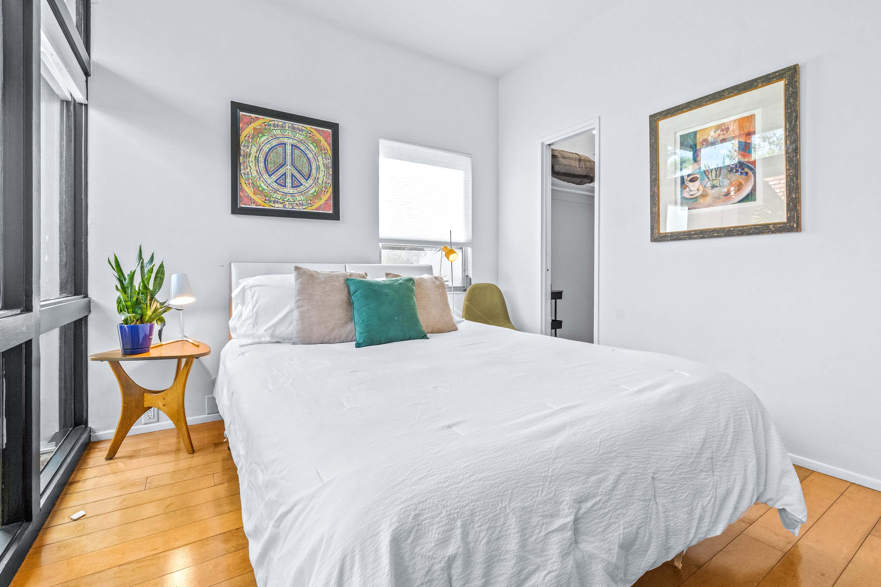 Bedroom #2 has a queen size bed and smart tv.