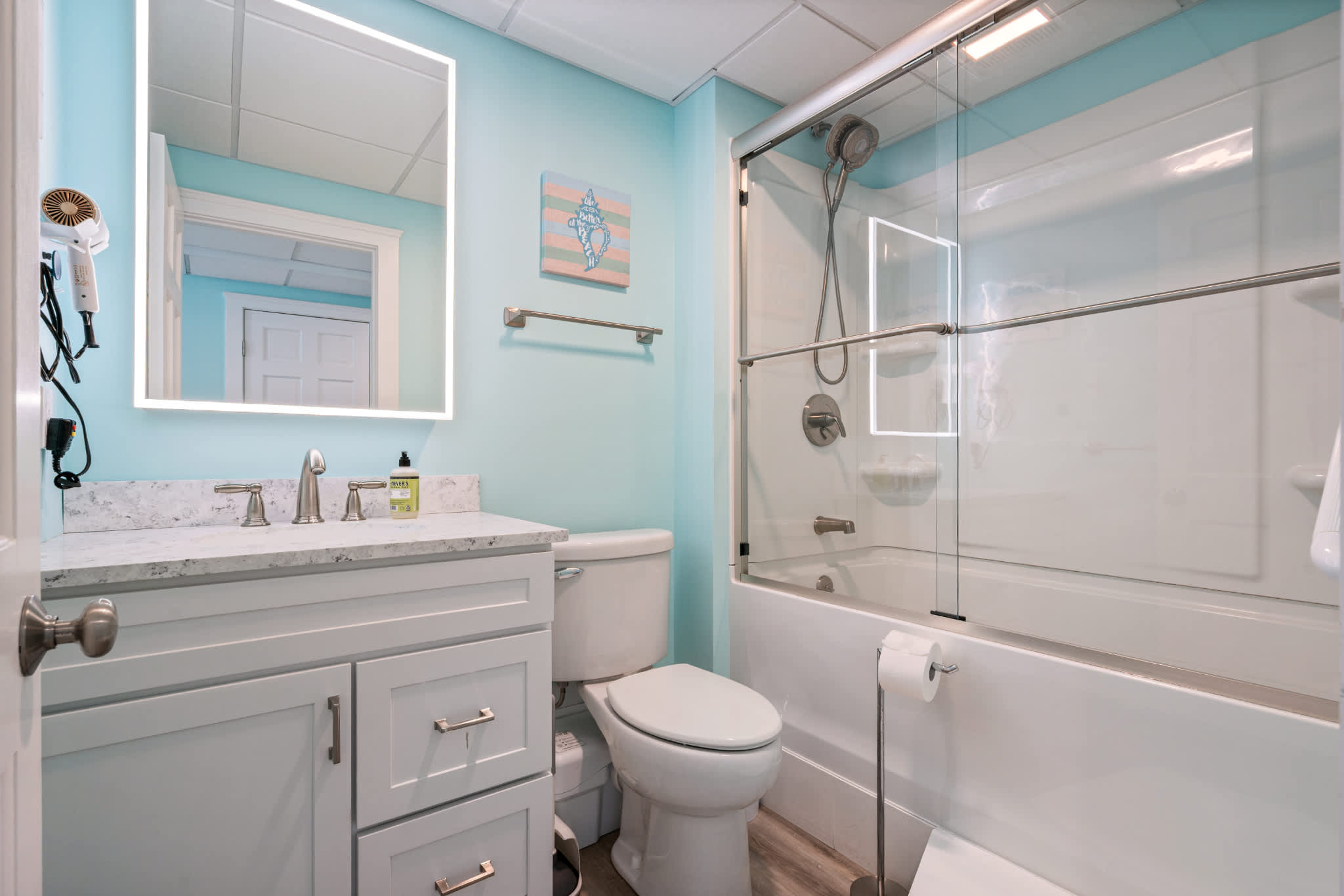 β’ The home also includes an additional full guest bathroom with a single vanity and shower/tub combo.