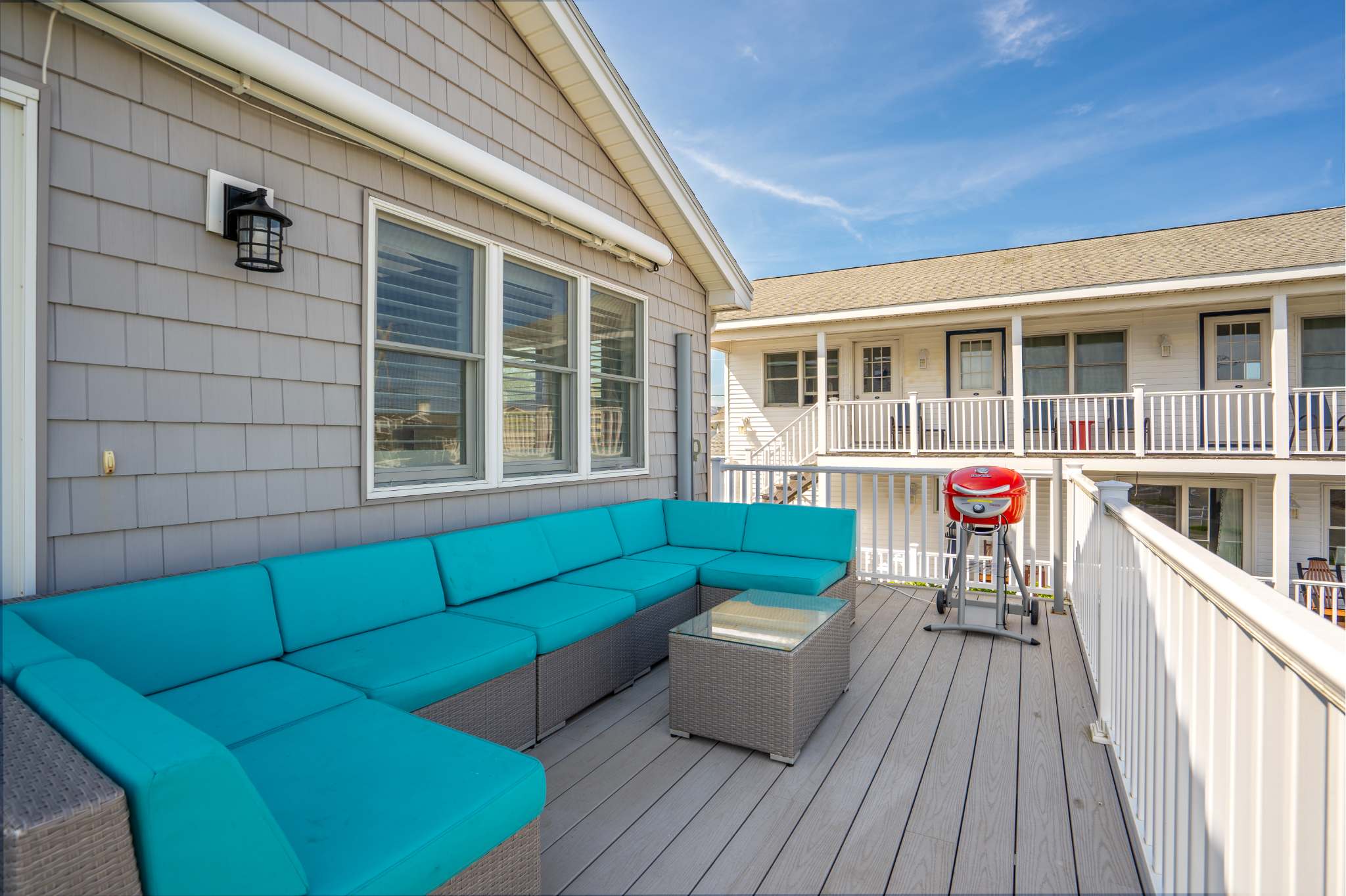 βοΈ Spacious deck with partial ocean views, grill & comfortable sofas