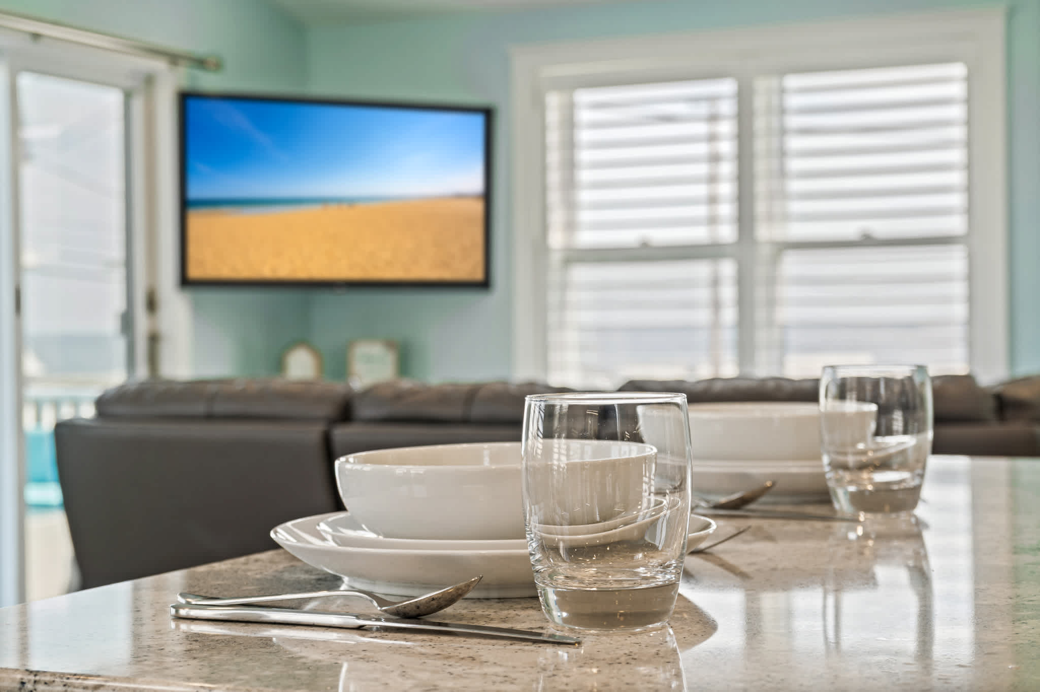 β’ Glossy stone countertops