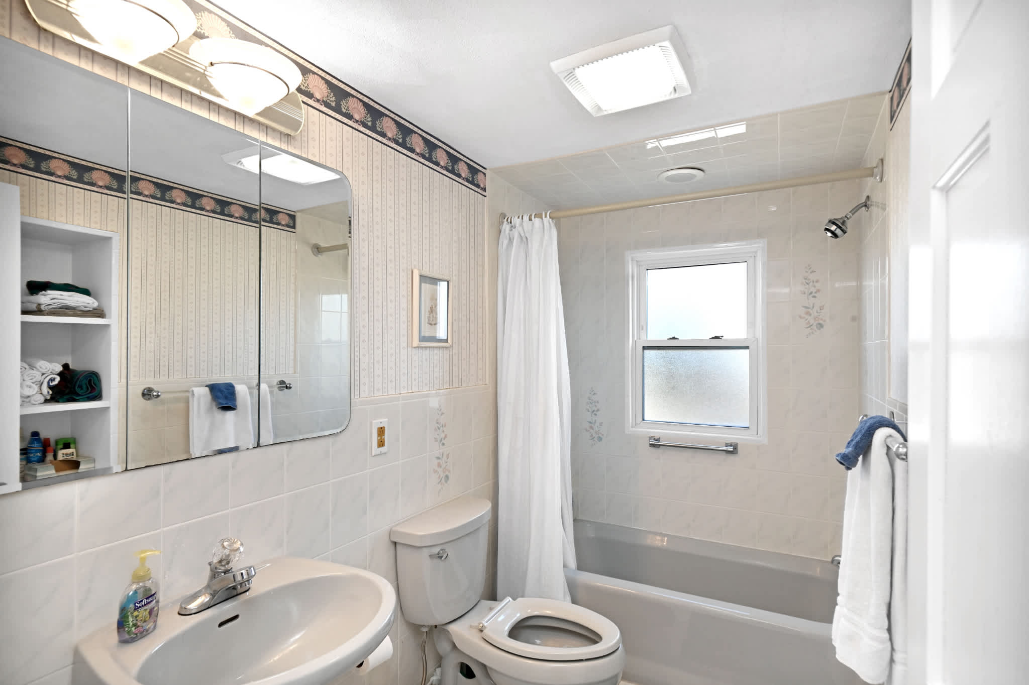 The home also includes an additional full guest bathroom with a single vanity and shower/tub combo.