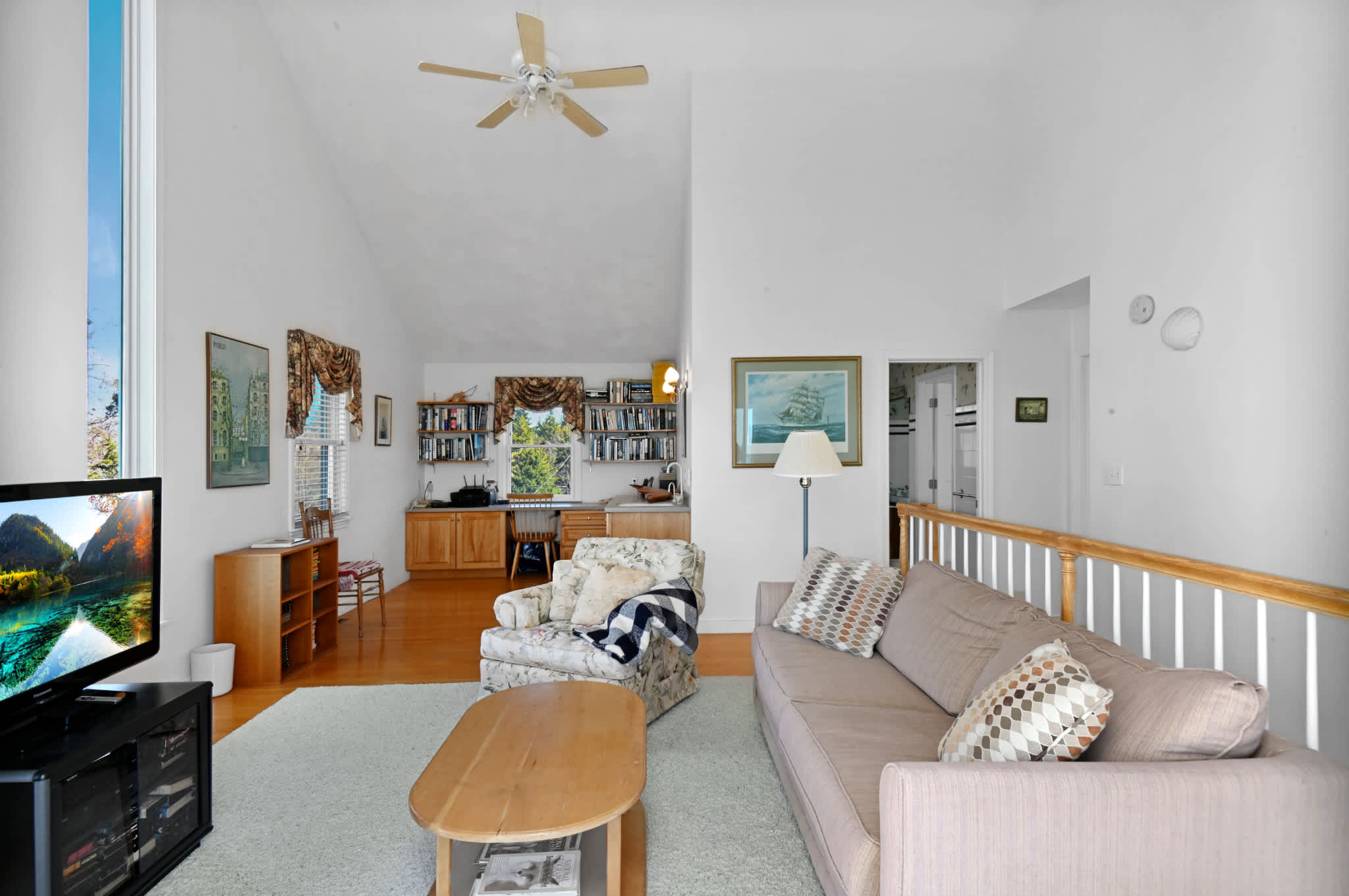 At the end of long days spent exploring this vast area, the home’s interior is a welcome retreat for relaxing downtime connecting with one another and catching up on the adventures of the day. With three separate sitting areas, spreading out comes naturally whether you’re in the loft catching up on a good book with the ocean breeze swirling around you from the balcony, the main floor living room surfing the channels or enjoying a quiet movie night, or the sunny den surrounded in abundant natural light. The spacious kitchen offers full-sized appliances and ample counterspace and cabinetry for meal preparation and storage. Enjoy your morning coffee in the breakfast nook with table and chairs for 4 or gather for formal meals in the dining room with additional seating for 4. No matter where you roam in this charming home, glittering ocean views will never be far from sight.